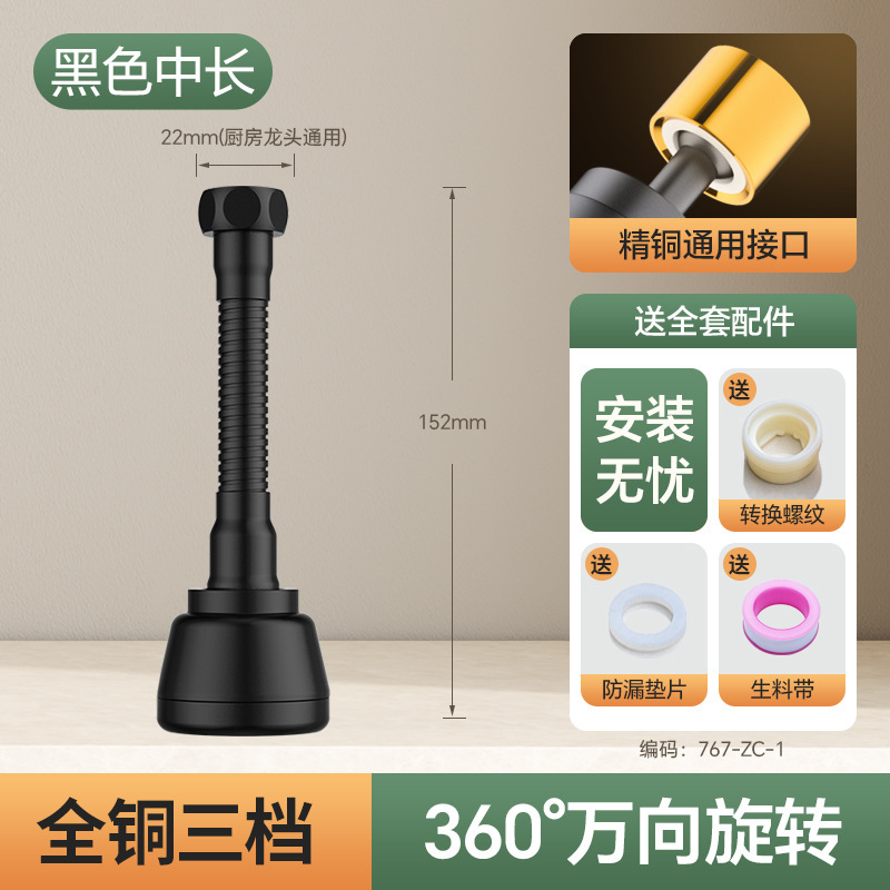 • 검정색 전체 구리(중간 길이) 3단 물 튀김 방지 수도꼭지