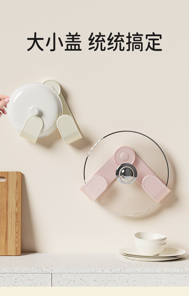 크림 빨판 회전 냄비 뚜껑 랙 주방 펀치없는 저장 랙 가구 벽 매달려 조정 가능한 냄비 뚜껑 보관 랙