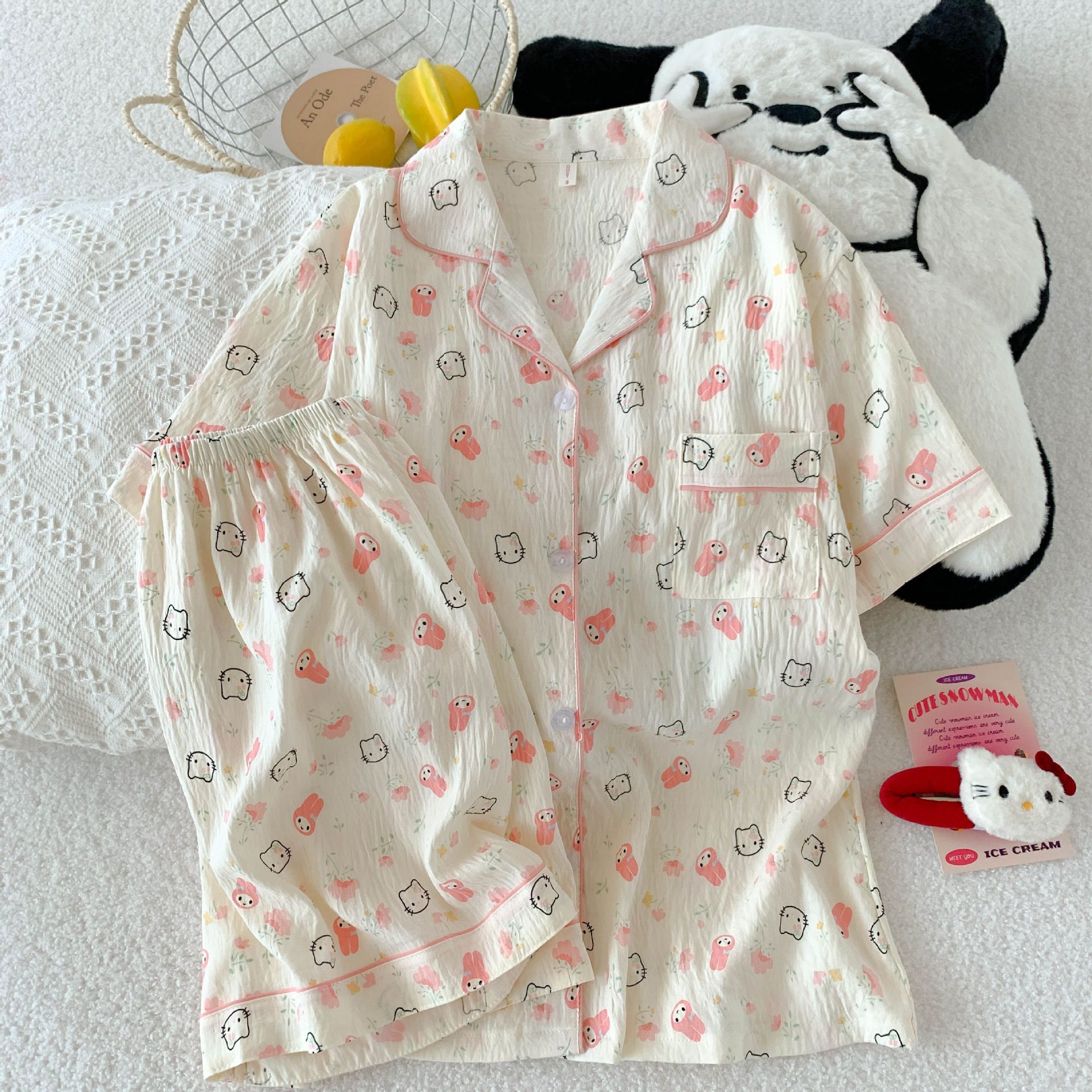 • 5501 멜로디 & 헬로키티 - 구름 면 반팔 반바지 세트