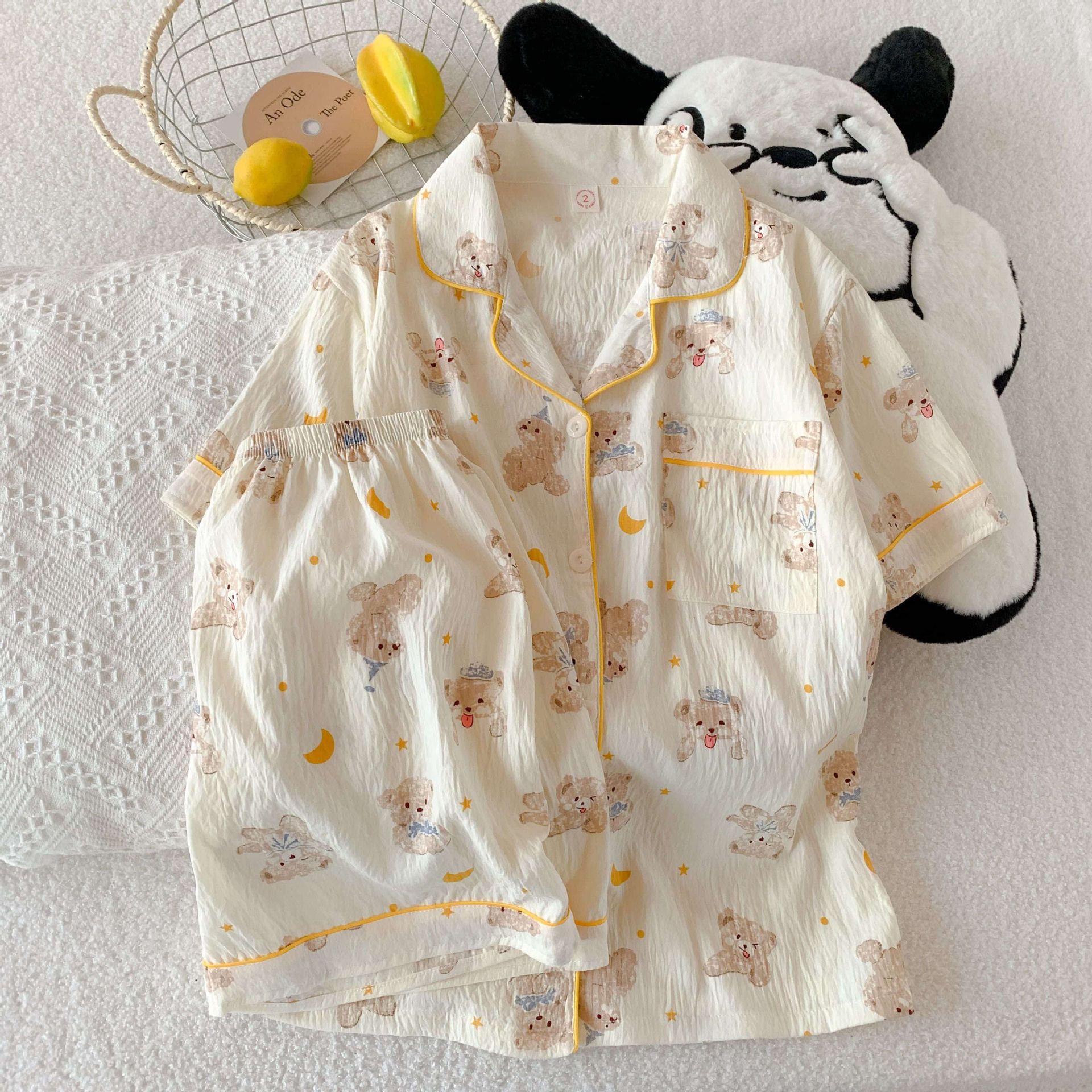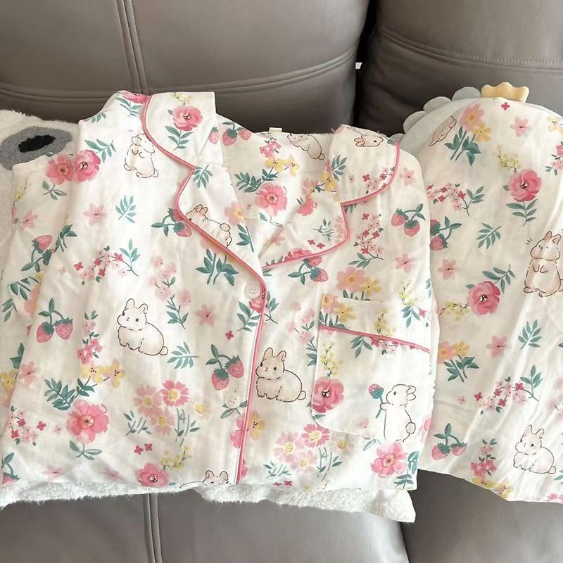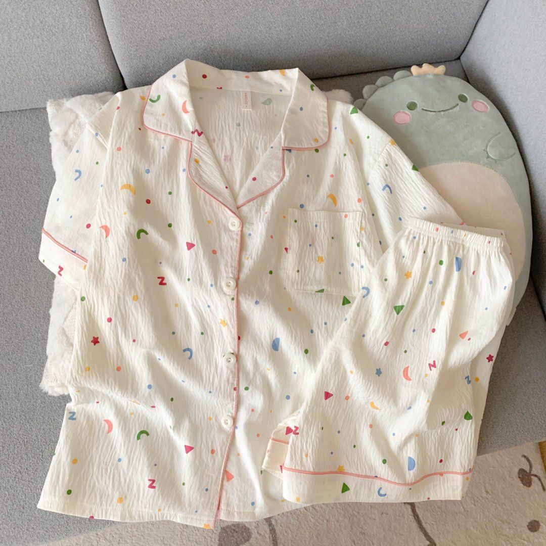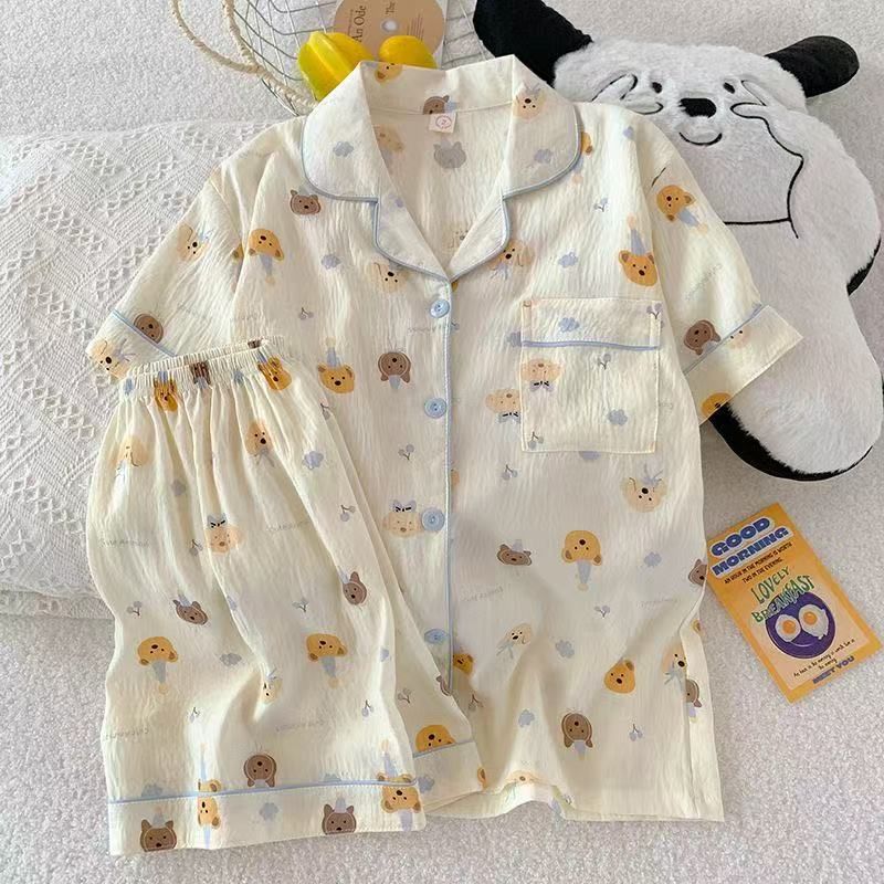 2026년 신상 여성용 클라우드 코튼 잠옷, 여름 반팔, 귀여운 만화 캐릭터, 루즈핏, 소녀들을 위한 홈웨어 세트, 외출복으로도 착용 가능스토어 가기