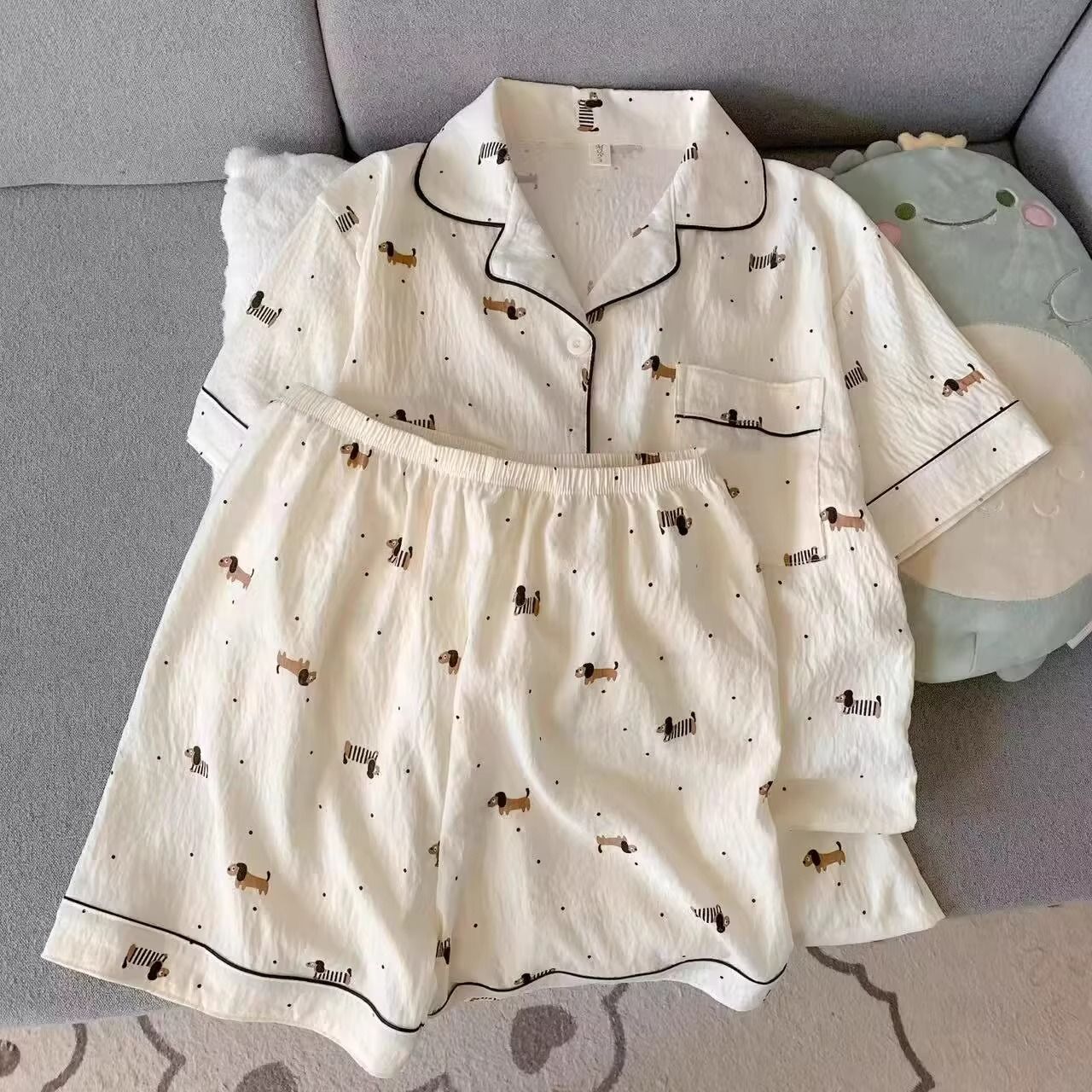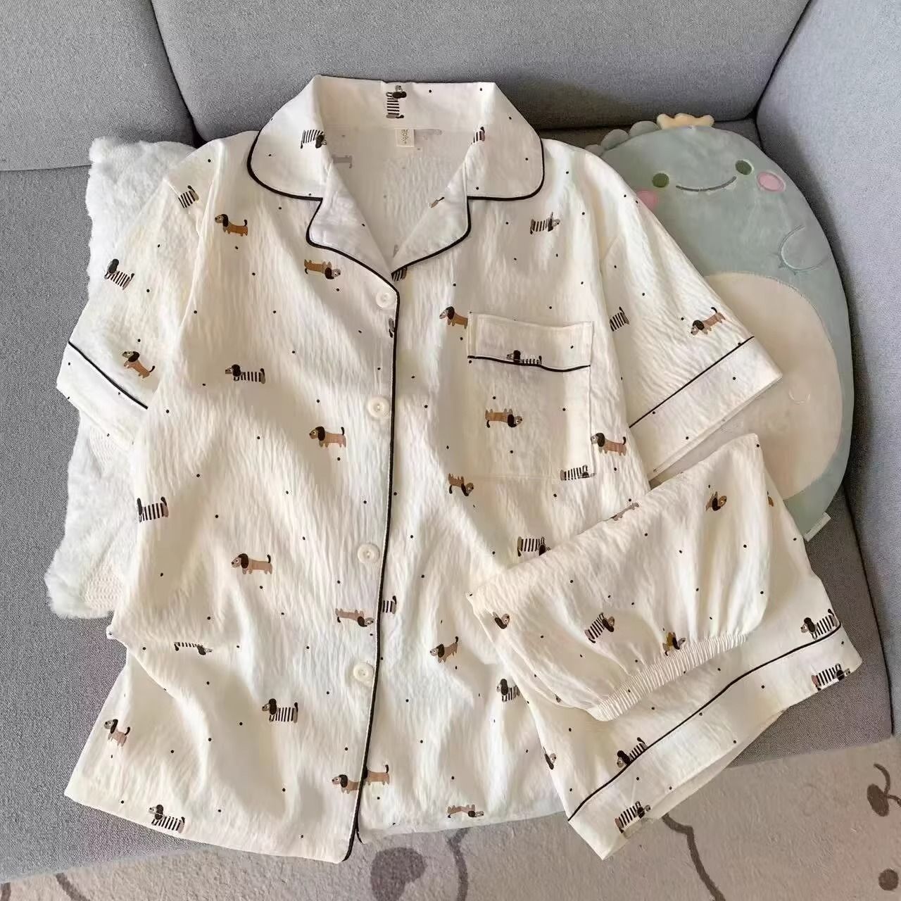• 5525 폴카 도트 닥스훈트--Yunduo 면 반팔 반바지