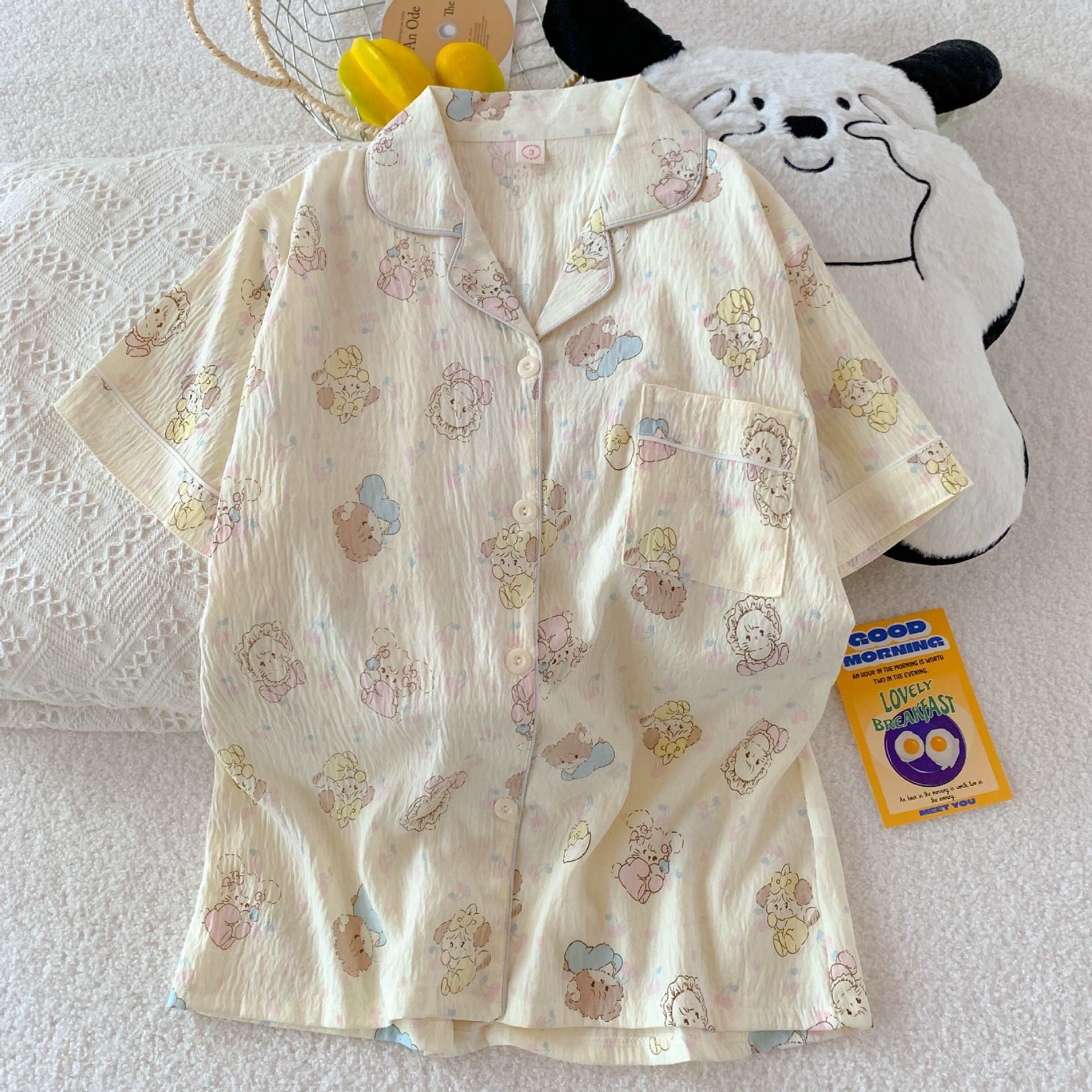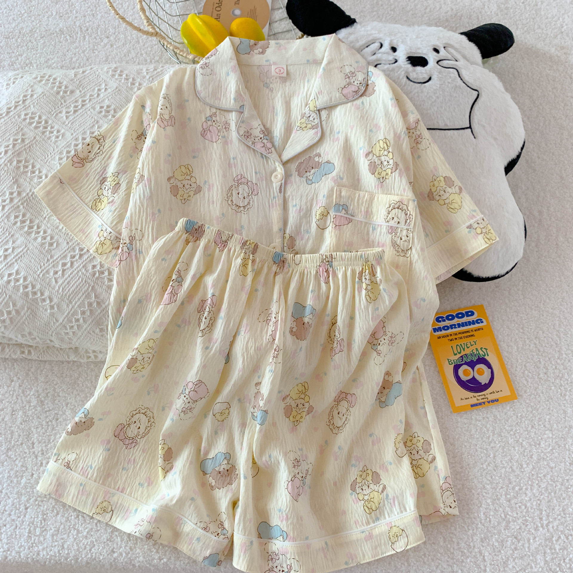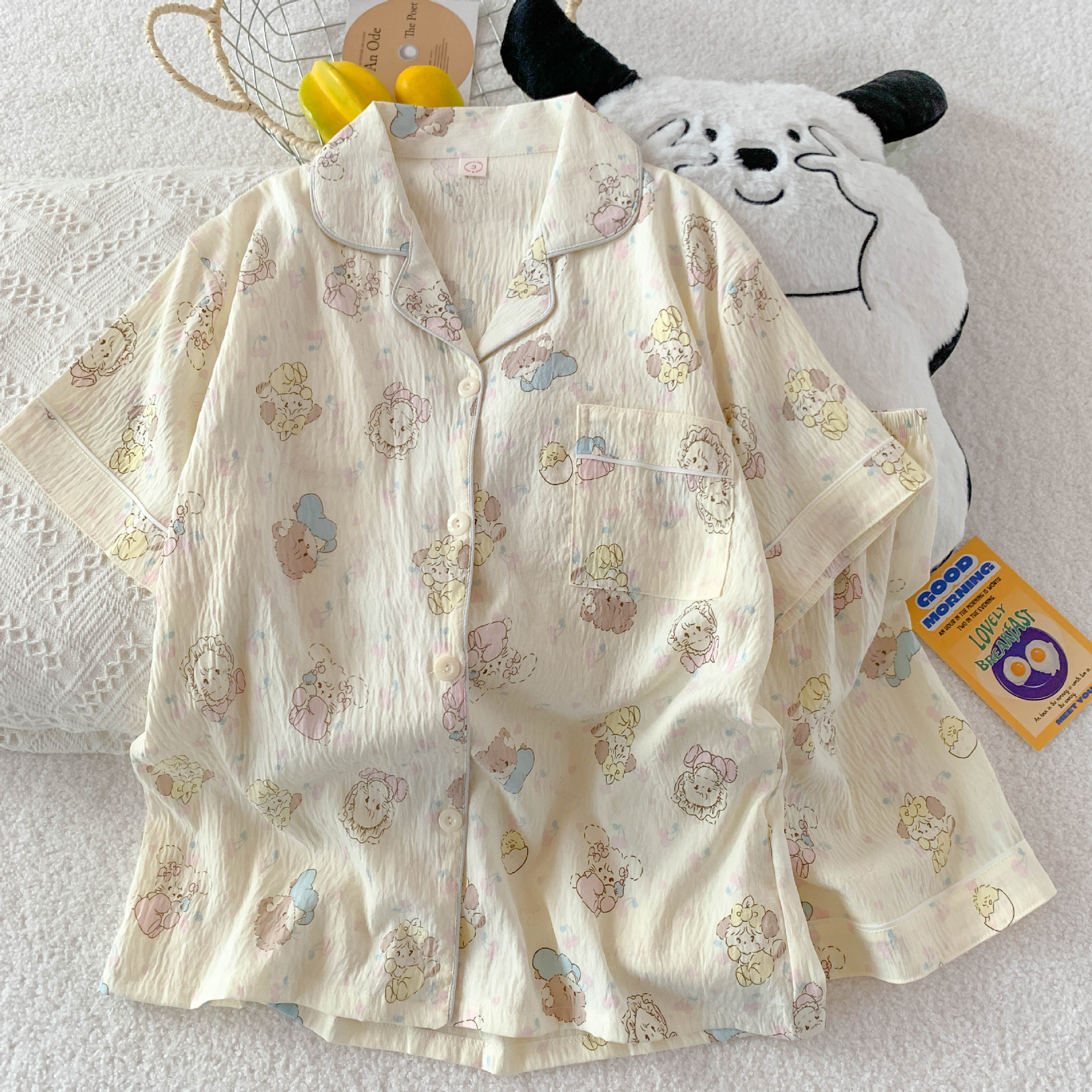 2026년 신상 여성용 클라우드 코튼 잠옷, 여름 반팔, 귀여운 만화 캐릭터, 루즈핏, 소녀들을 위한 홈웨어 세트, 외출복으로도 착용 가능