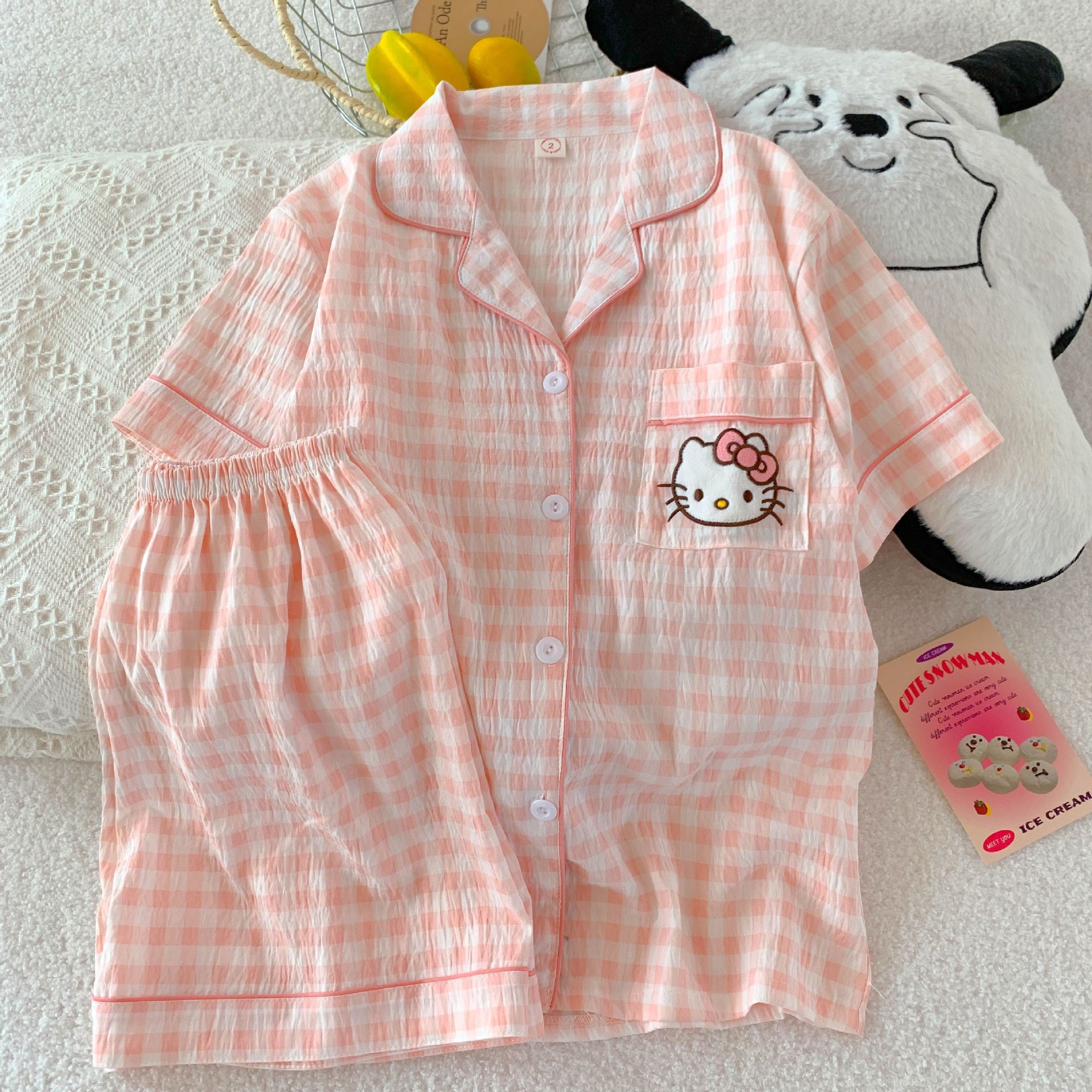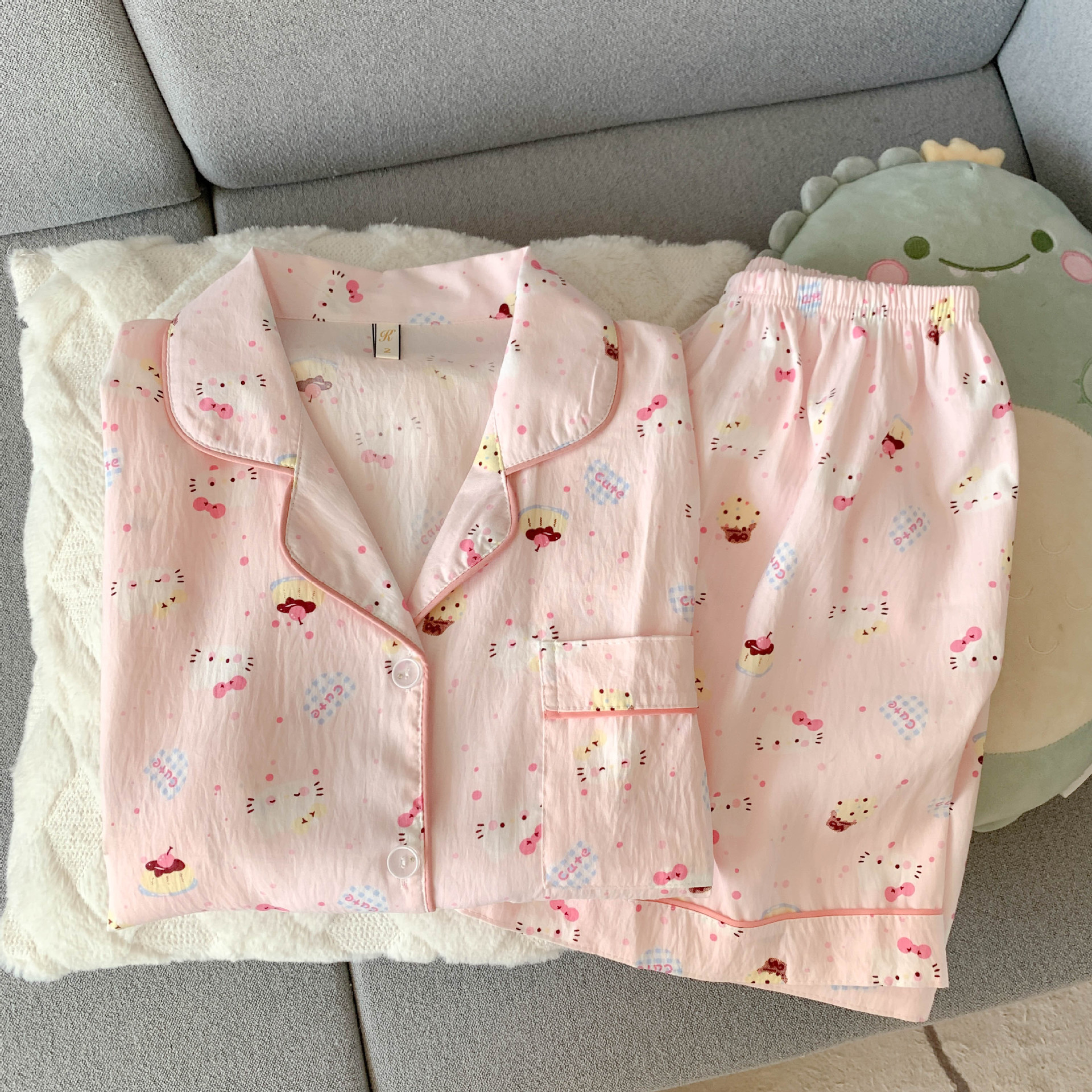 • 5515 핑크 케이크 KT 고양이 - 구름 면 반팔 반바지 세트