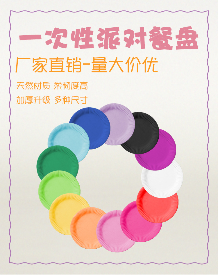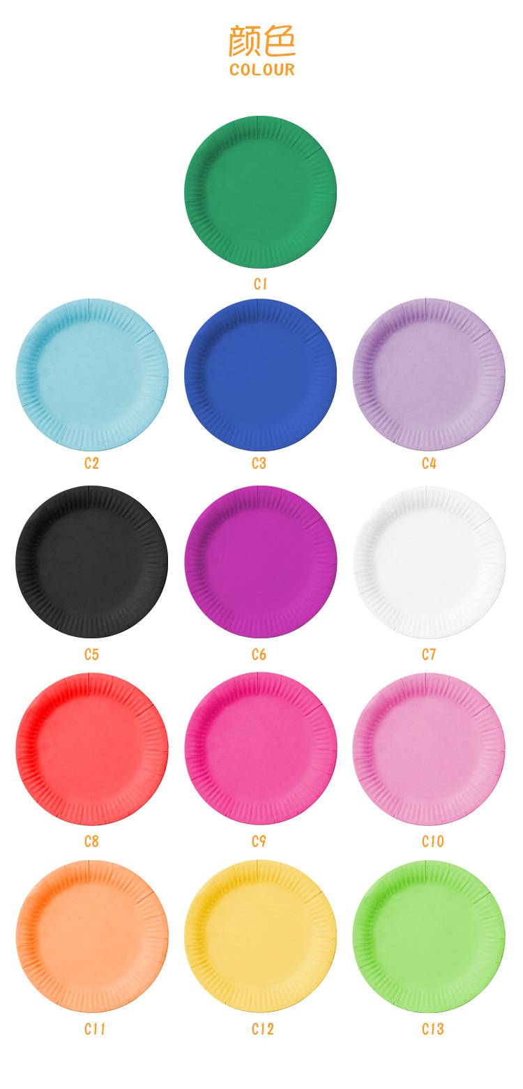 국경 단색 일회용 두꺼운 케이크 식기 종이 접시 생일 파티 라운드 종이 접시를 디자인 할 수 있습니다스토어 가기