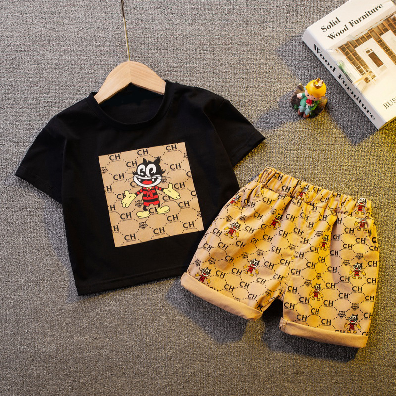 대외 무역 아동복 여름 0-4 세 어린이 여름 작은면 티셔츠 반바지 짧은 소매 소년 소녀 여름 투피스 세트