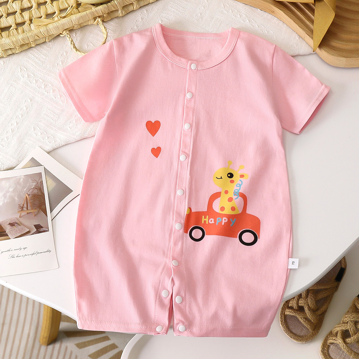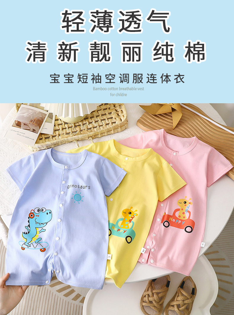 신생아 아기 옷, 아기 여름 얇은 만화 점프 슈트, 반팔 크롤링 옷, 아동 의류, 대외 무역 도매스토어 가기