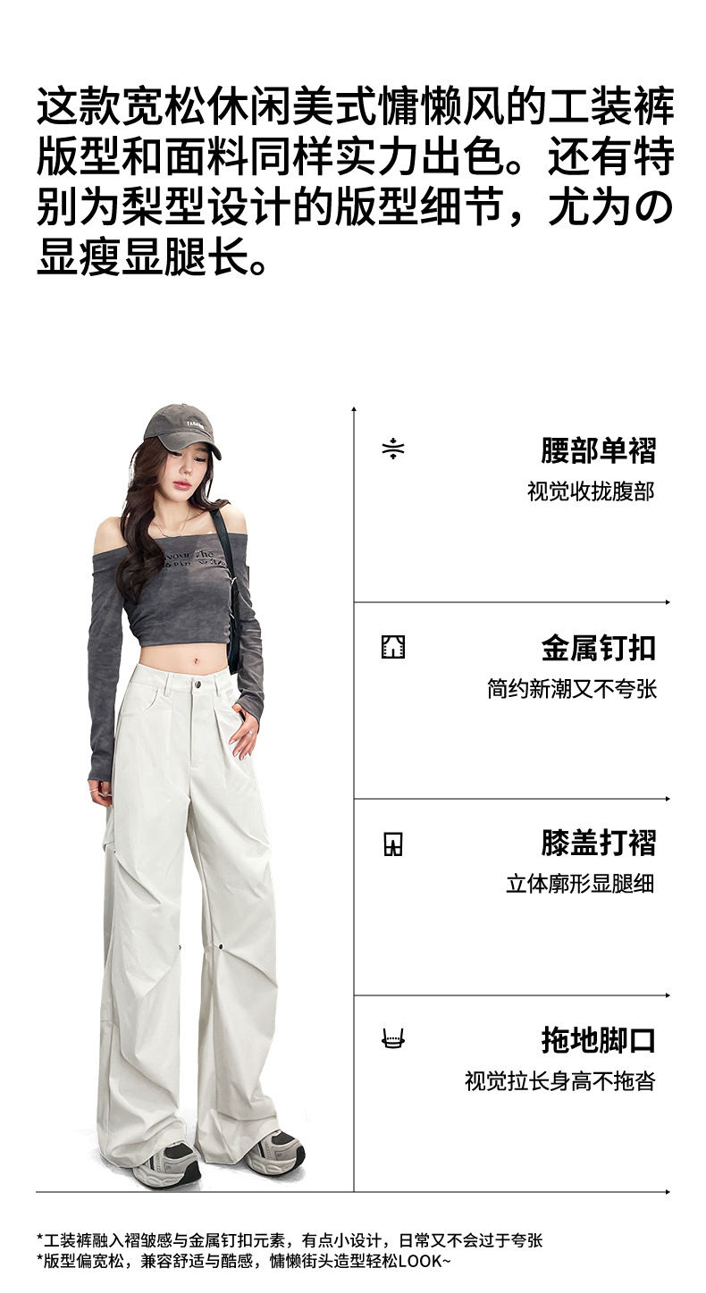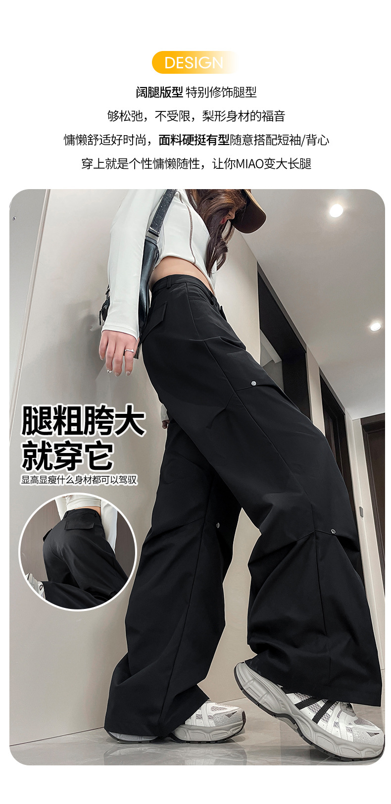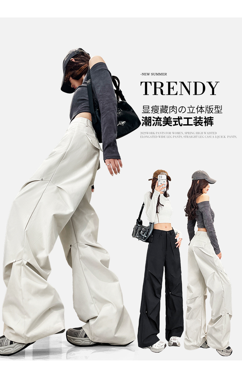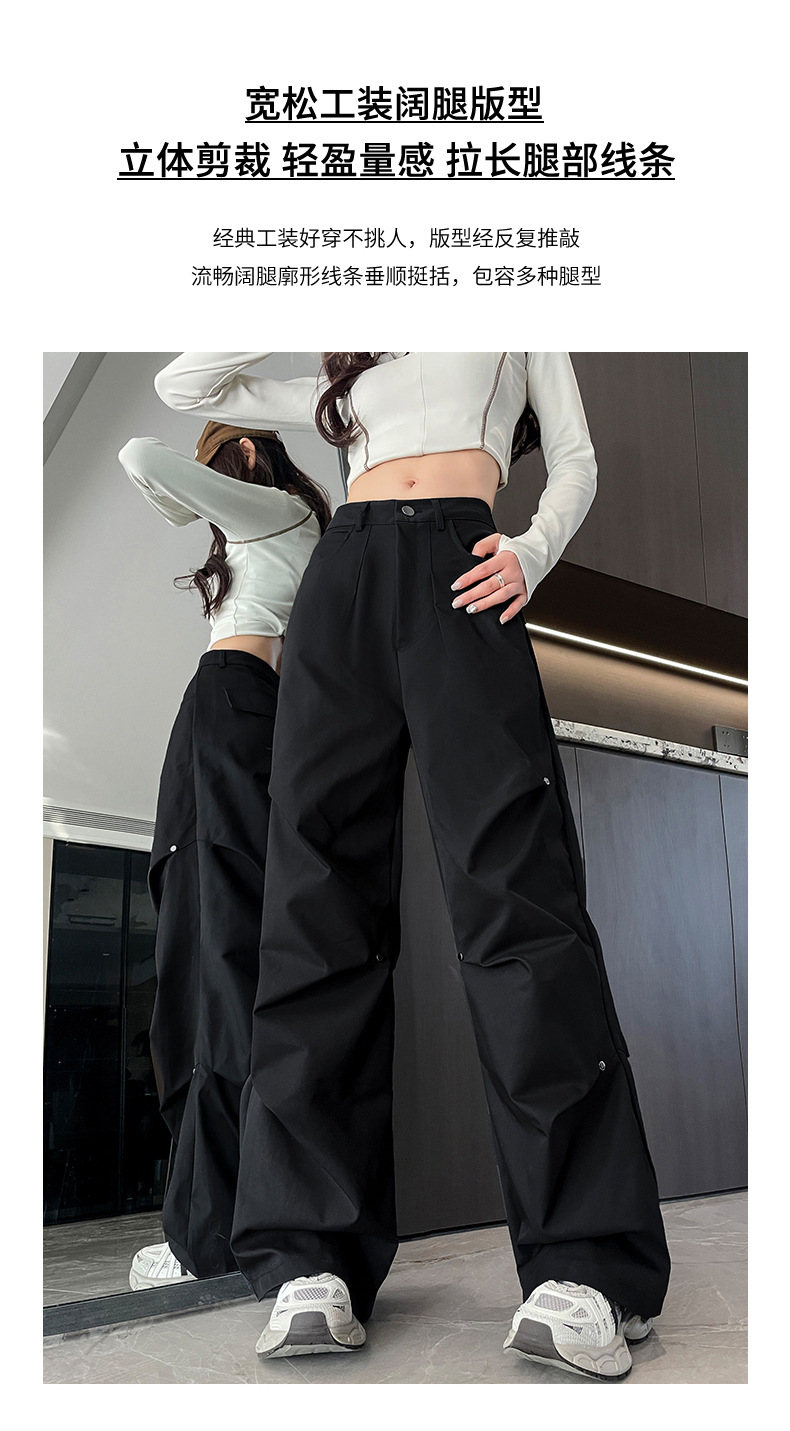 아메리칸 스타일 오버홀 여성의 2025 년 봄과 여름 새로운 디자인 센스 리벳 느슨한 직선 다리 캐주얼 등산 바지 바지스토어 가기