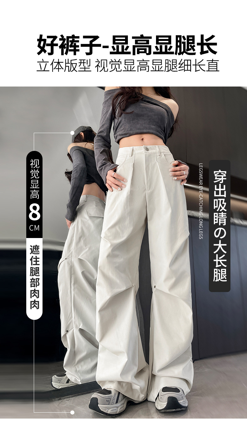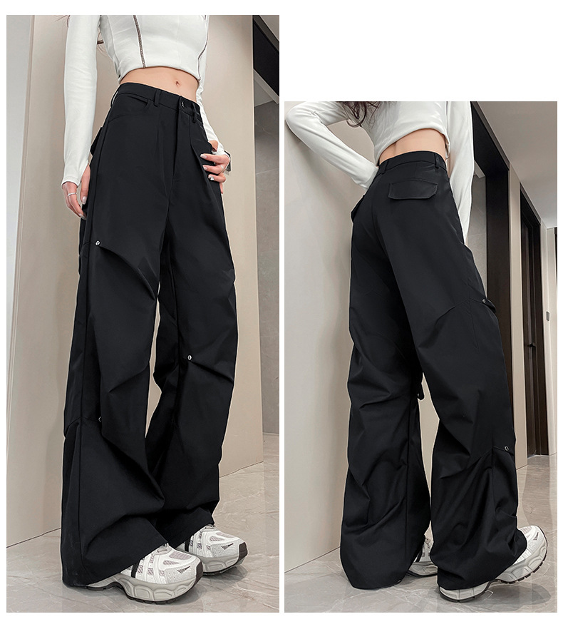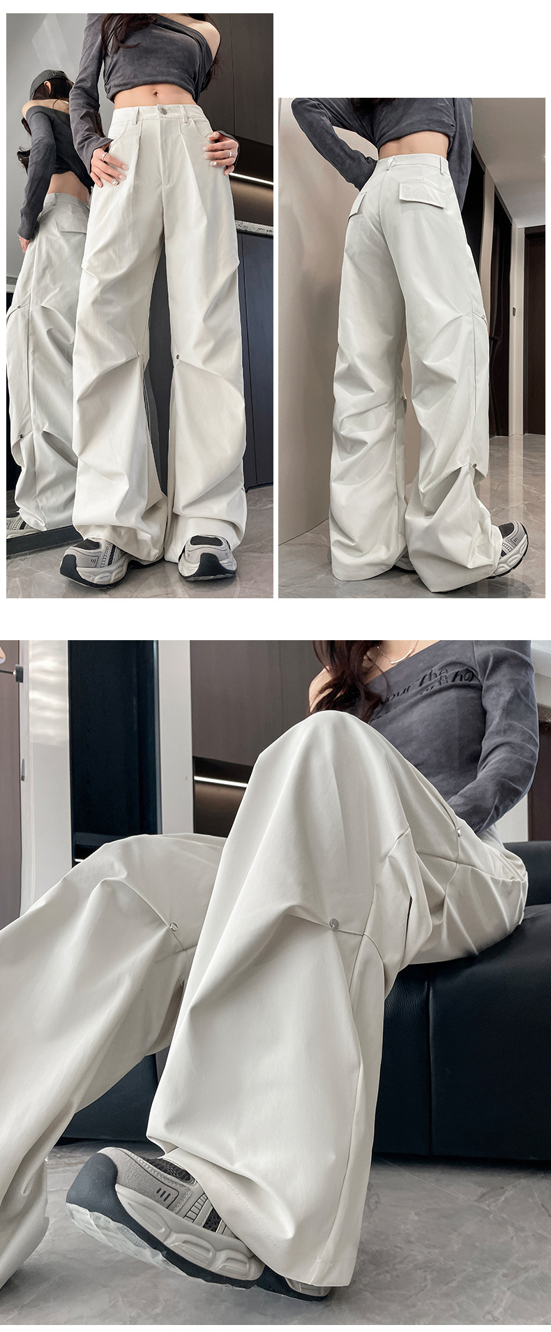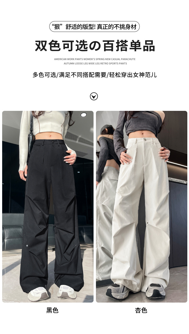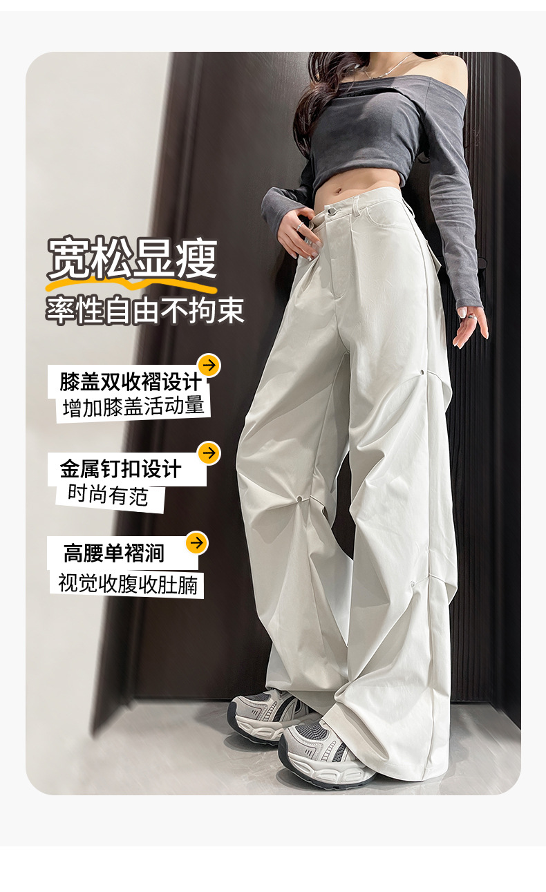 아메리칸 스타일 오버홀 여성의 2025 년 봄과 여름 새로운 디자인 센스 리벳 느슨한 직선 다리 캐주얼 등산 바지 바지스토어 가기