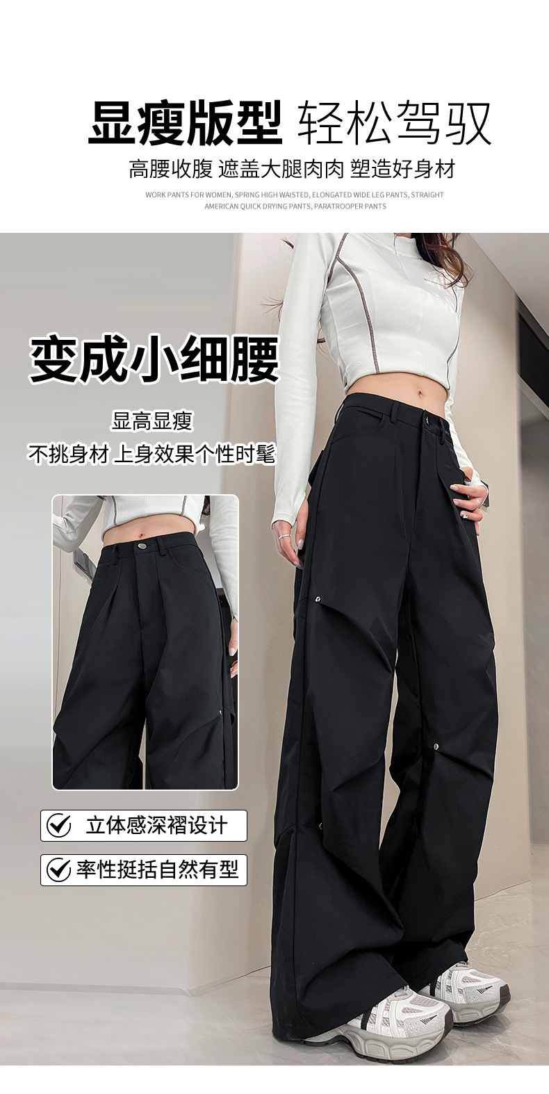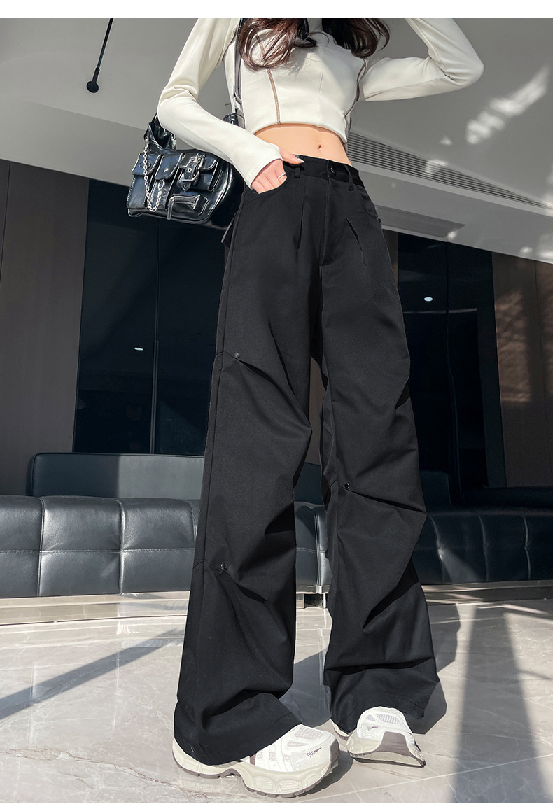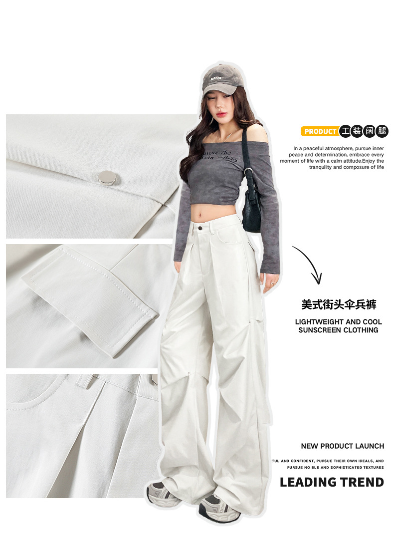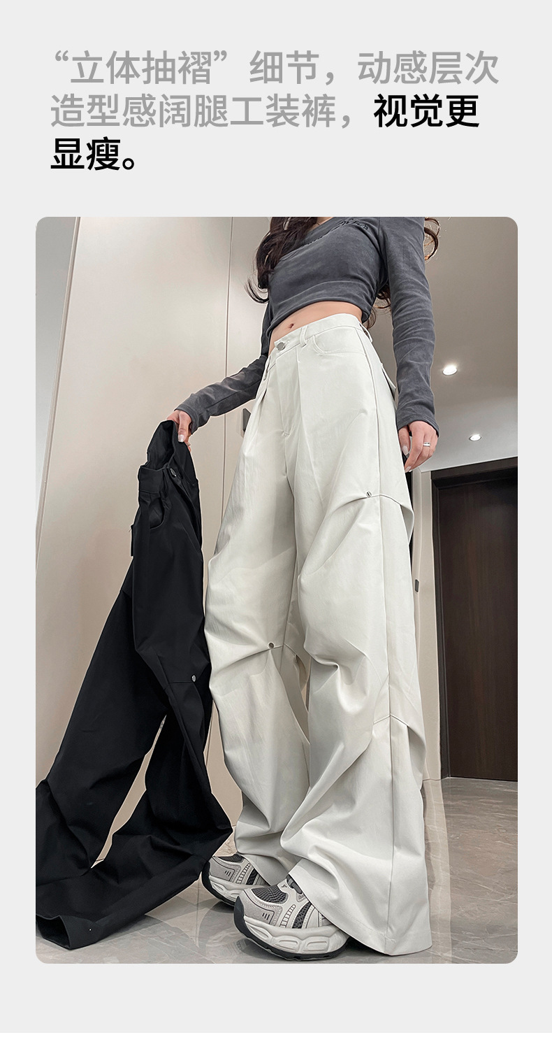 아메리칸 스타일 오버홀 여성의 2025 년 봄과 여름 새로운 디자인 센스 리벳 느슨한 직선 다리 캐주얼 등산 바지 바지스토어 가기