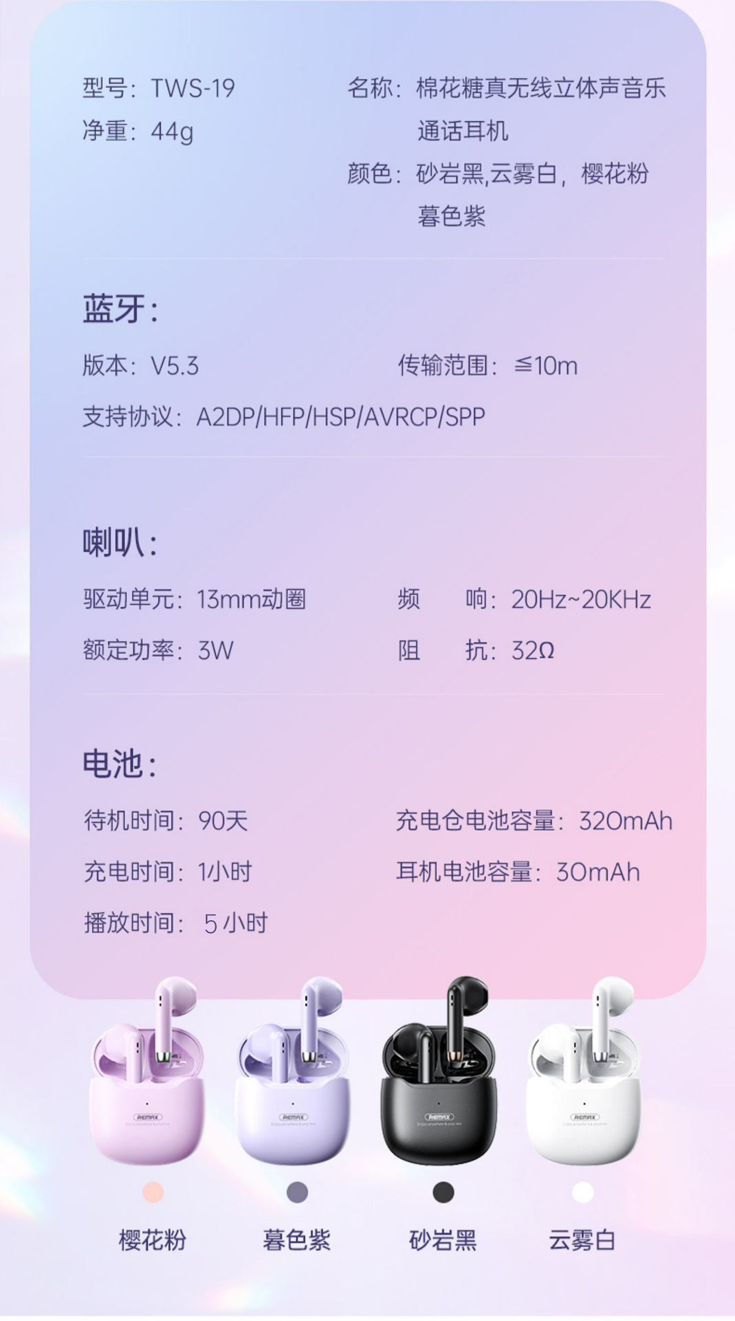 REMAX 폭발 솜사탕 tws 미니 블루투스 헤드셋 스테레오 음악 무선 헤드셋 도매 선물 상자