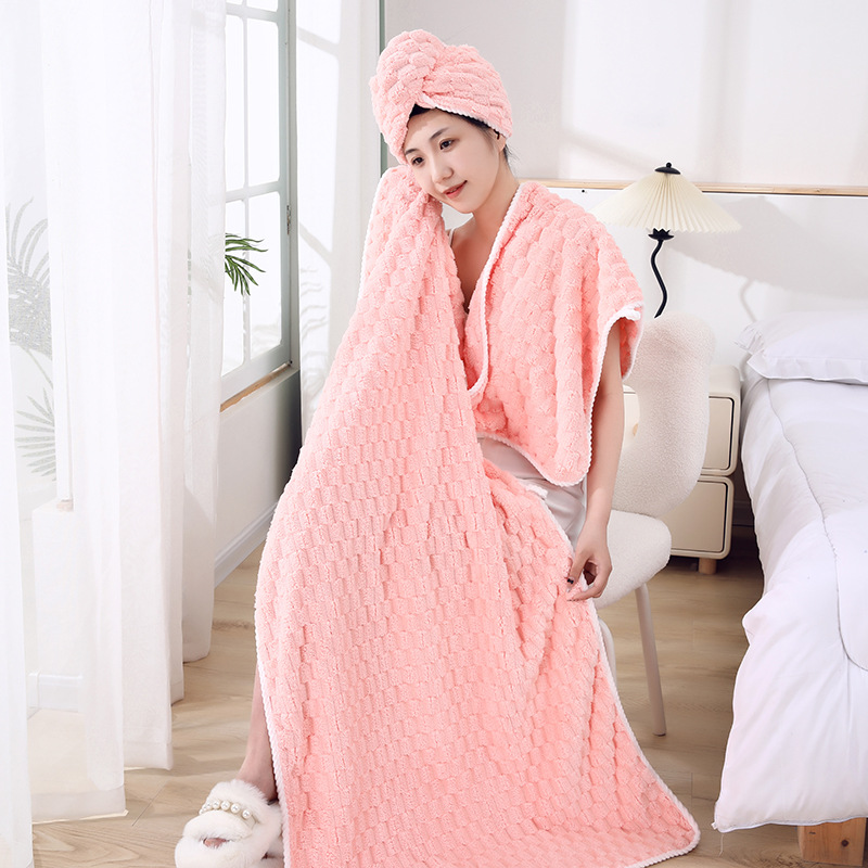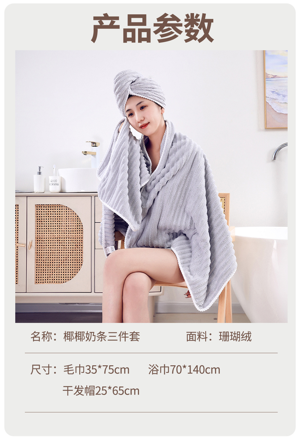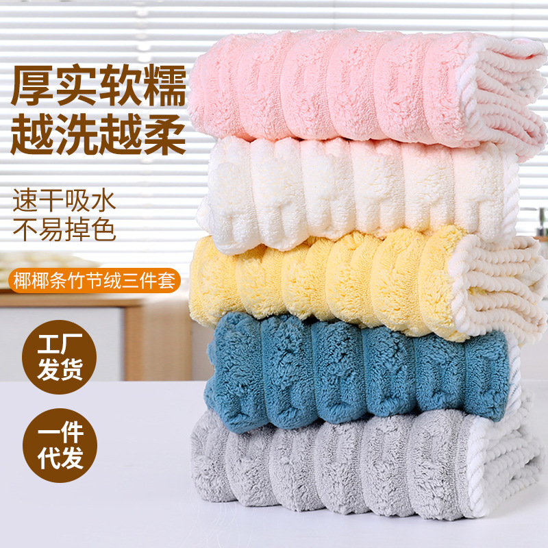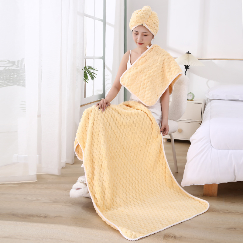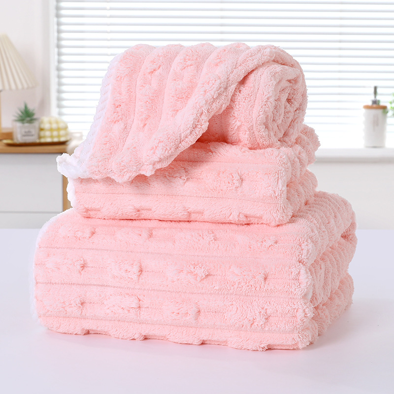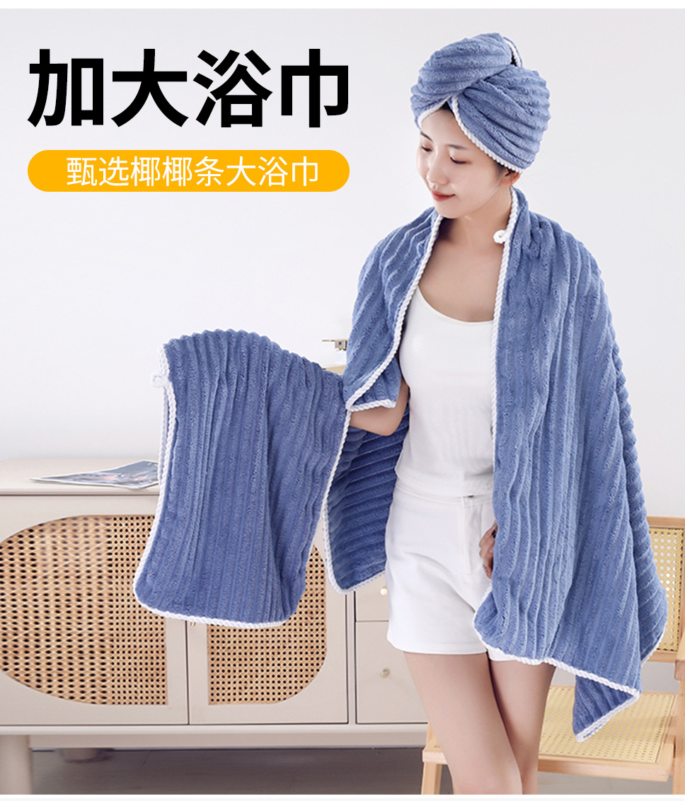 별도의 포장 캔디 스트립 수건 목욕 수건 코랄 벨벳 비치 타월보다 빠른 건조 흡수성 드라이 헤어 캡 3 피스 세트스토어 가기