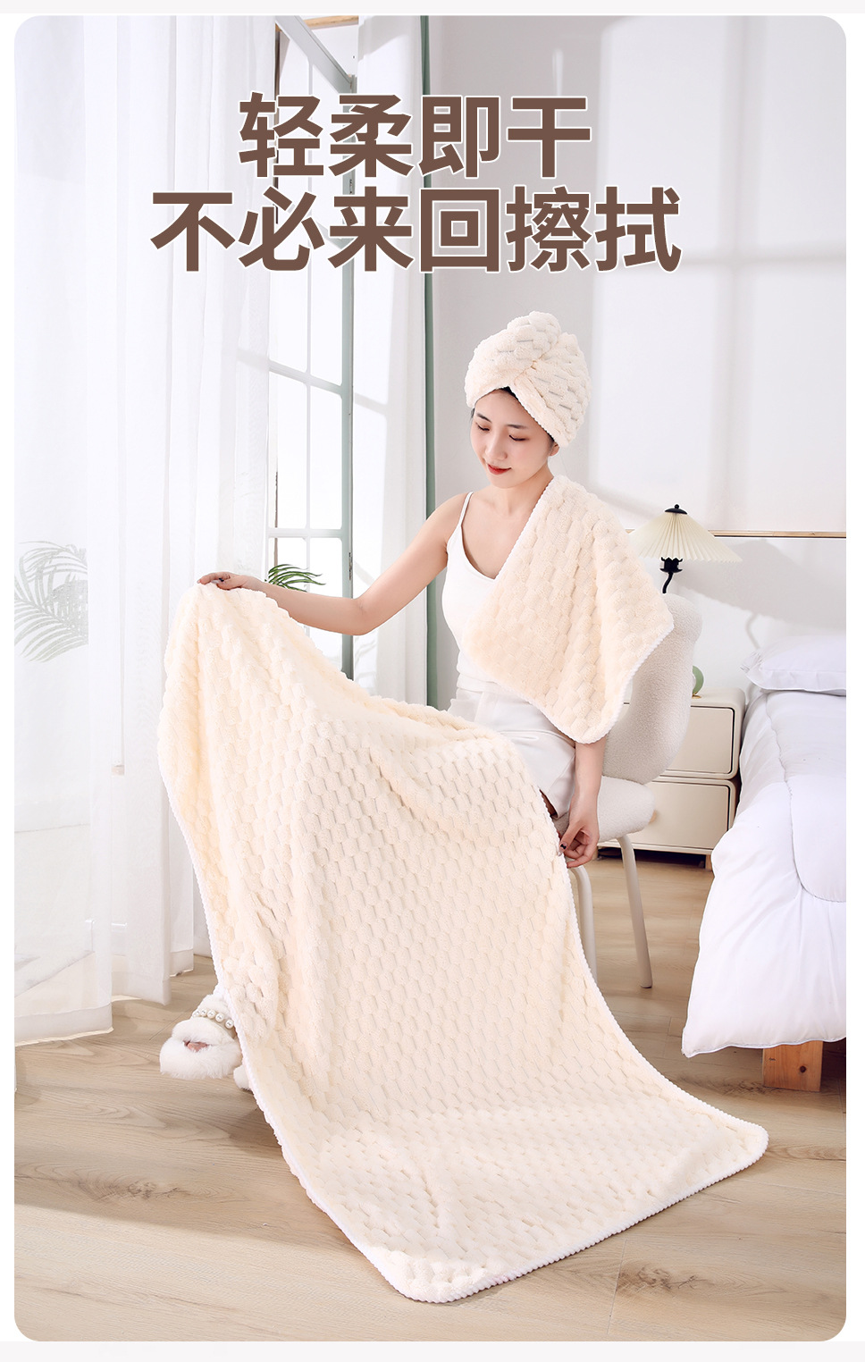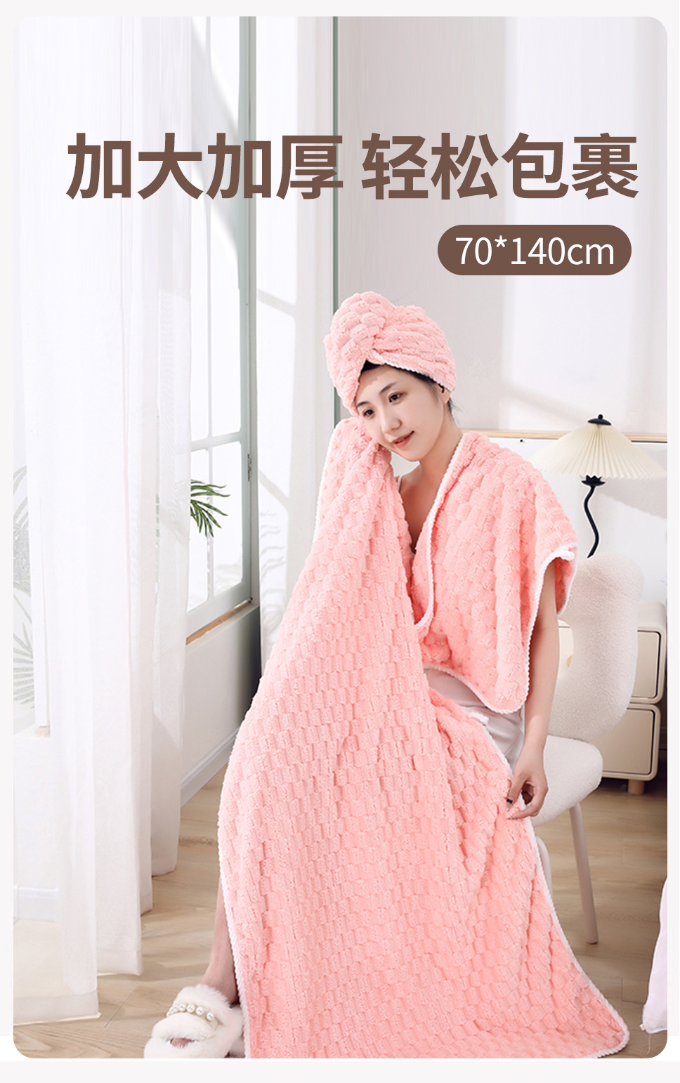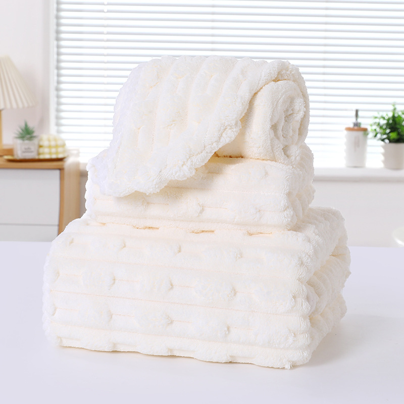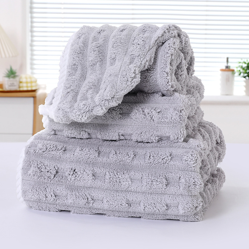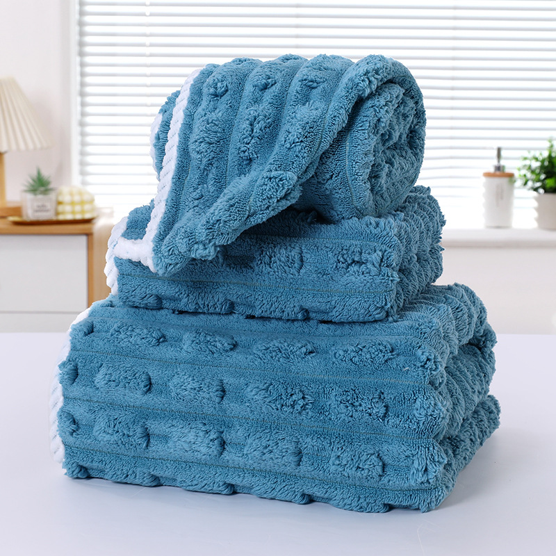 별도의 포장 캔디 스트립 수건 목욕 수건 코랄 벨벳 비치 타월보다 빠른 건조 흡수성 드라이 헤어 캡 3 피스 세트스토어 가기