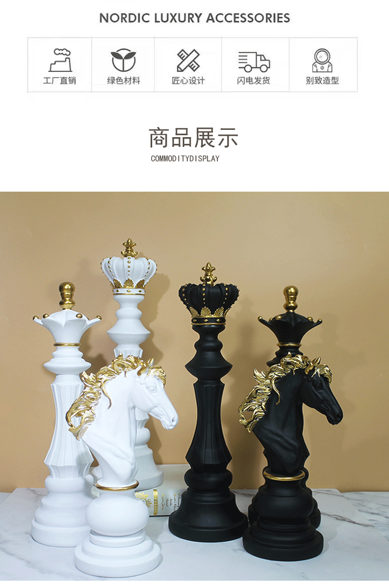 국경 간 신제품 노르딕 체스 장식품 체스 도구 킹 전쟁 말 여왕 소프트 아트 수지 공예