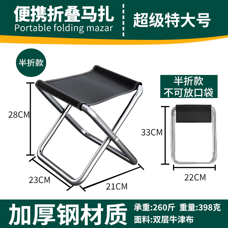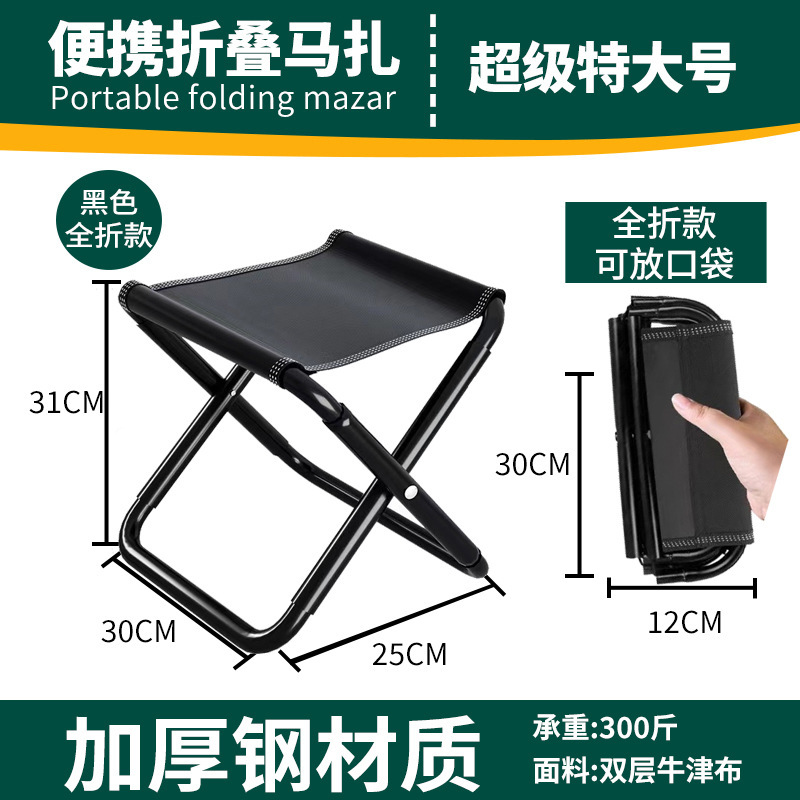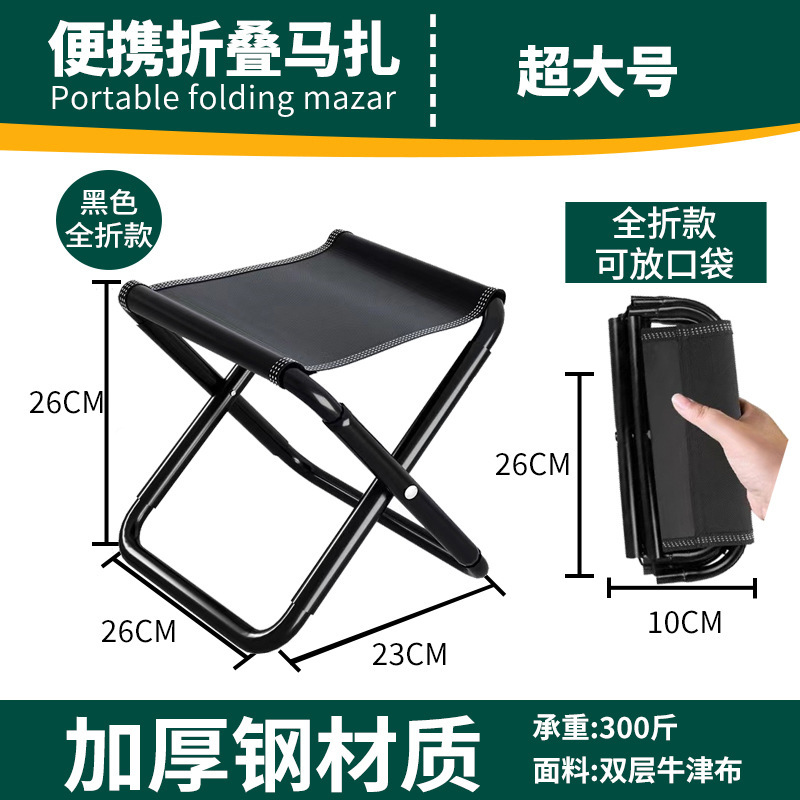 • [완전 접이식 포켓 스타일⭐두꺼운 탄소강 파이프⭐두꺼운 의자 표면] 검정색 특대형(수납 가방 포함)♜