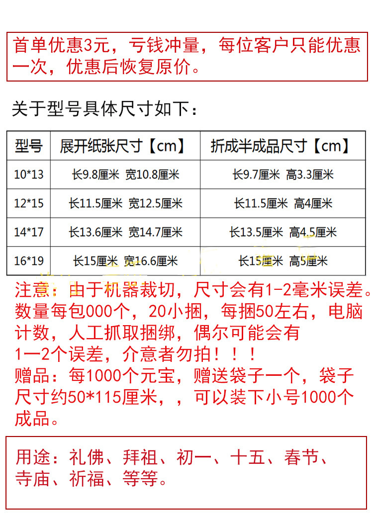 • 【10*13】친환경 약간 연기가 나는 노란색 종이 주괴 1000개, 무료 가방