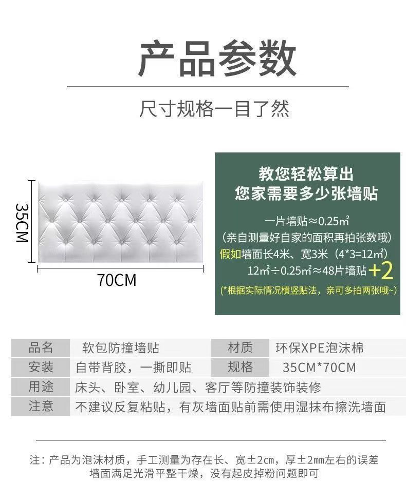 충돌 방지 벽 스티커 자체 접착 침대 옆 스티커 다다미 부드러운 가방 벽 벽 어린이 3d 벽 스티커 유치원 벽 스티커스토어 가기