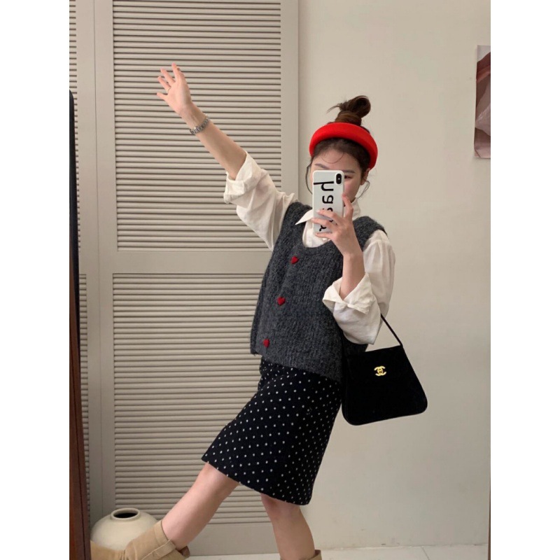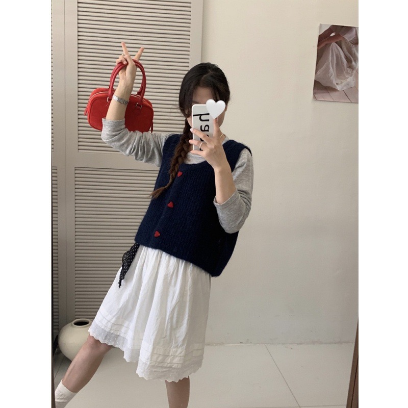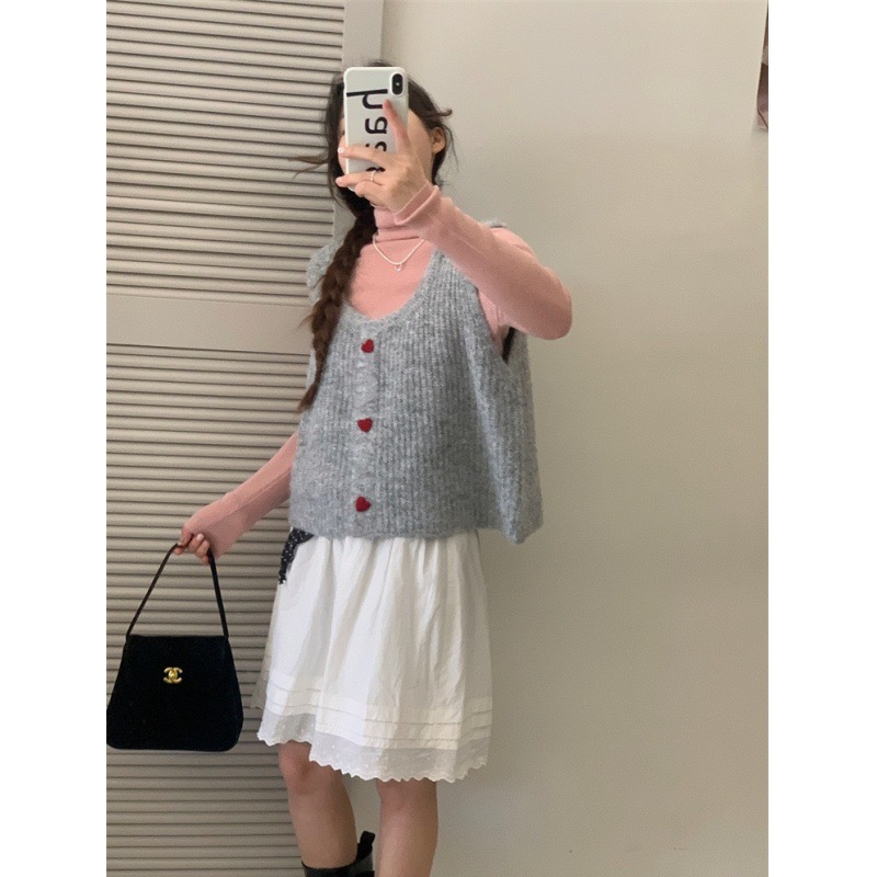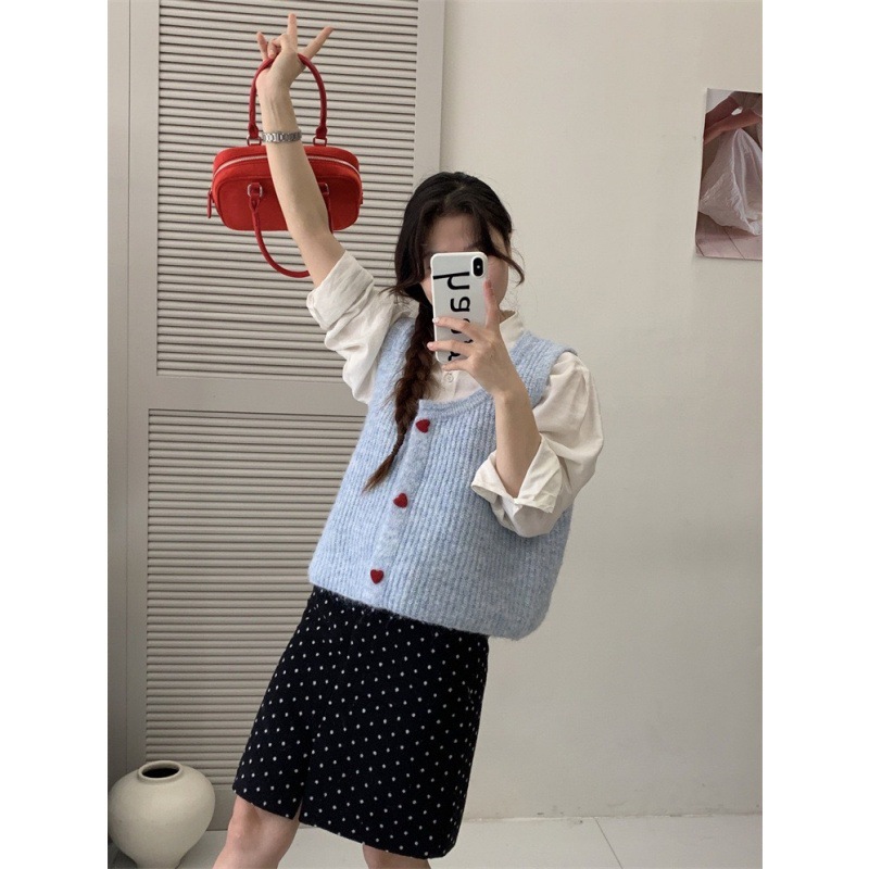 한국 스타일 부드러운 왁스 달콤한 낮은 둥근 목 사랑 버튼 카디건 조끼 여성 민소매 짧은 스태킹 스웨터스토어 가기