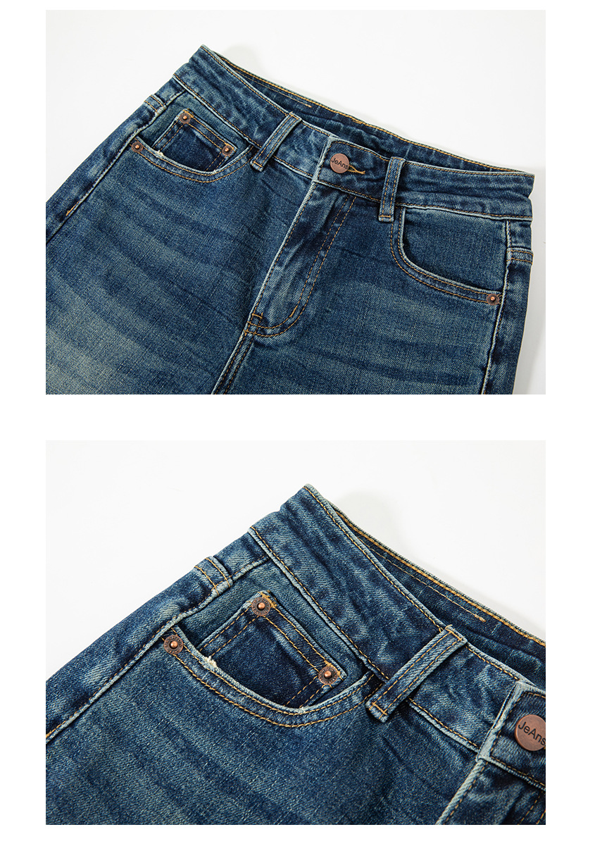 난유 하이 엔드 청바지 여자 2025 년 여름 하이 허리 4 면 레트로 블루 혼 바지스토어 가기