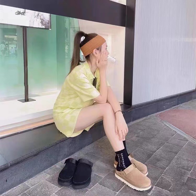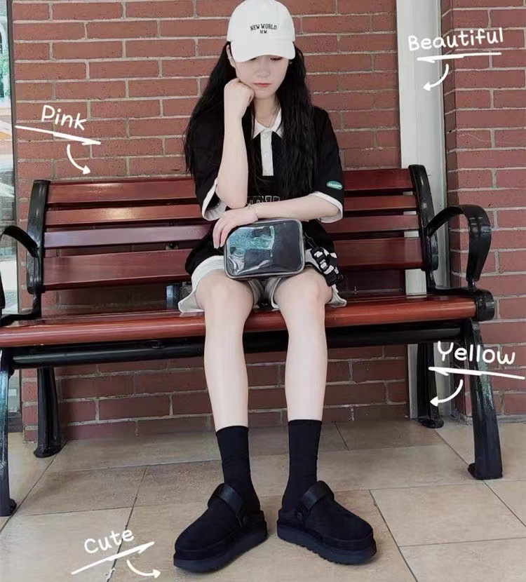 재고 국경 간 가을과 겨울 새로운 스타일 Baotou 하프 드래그 여성용 보켄 신발 캐주얼 플랫폼 높이 올리는 울 기모 슬리퍼 야외스토어 가기