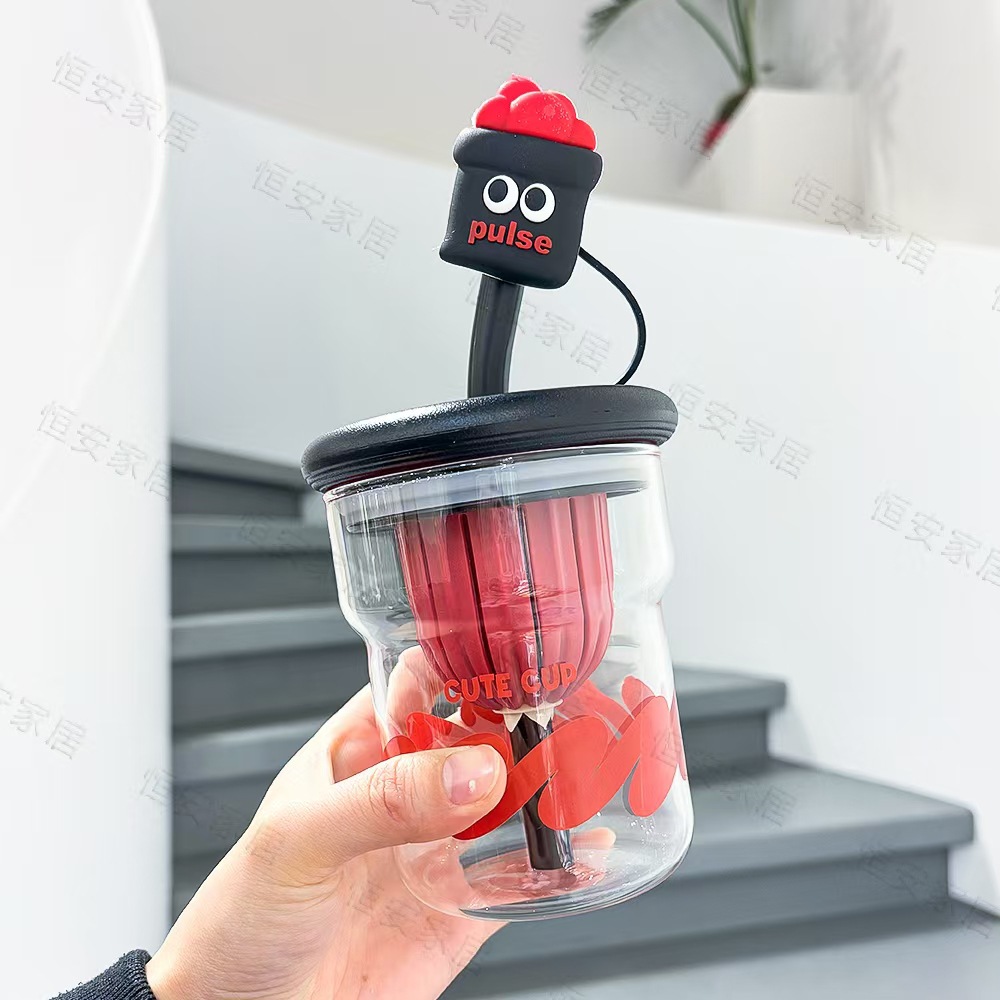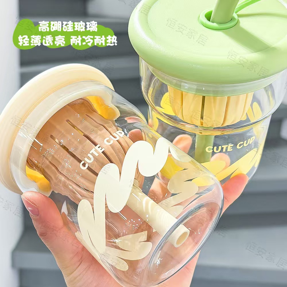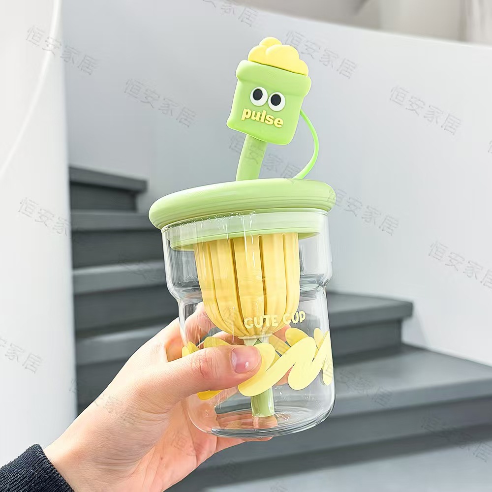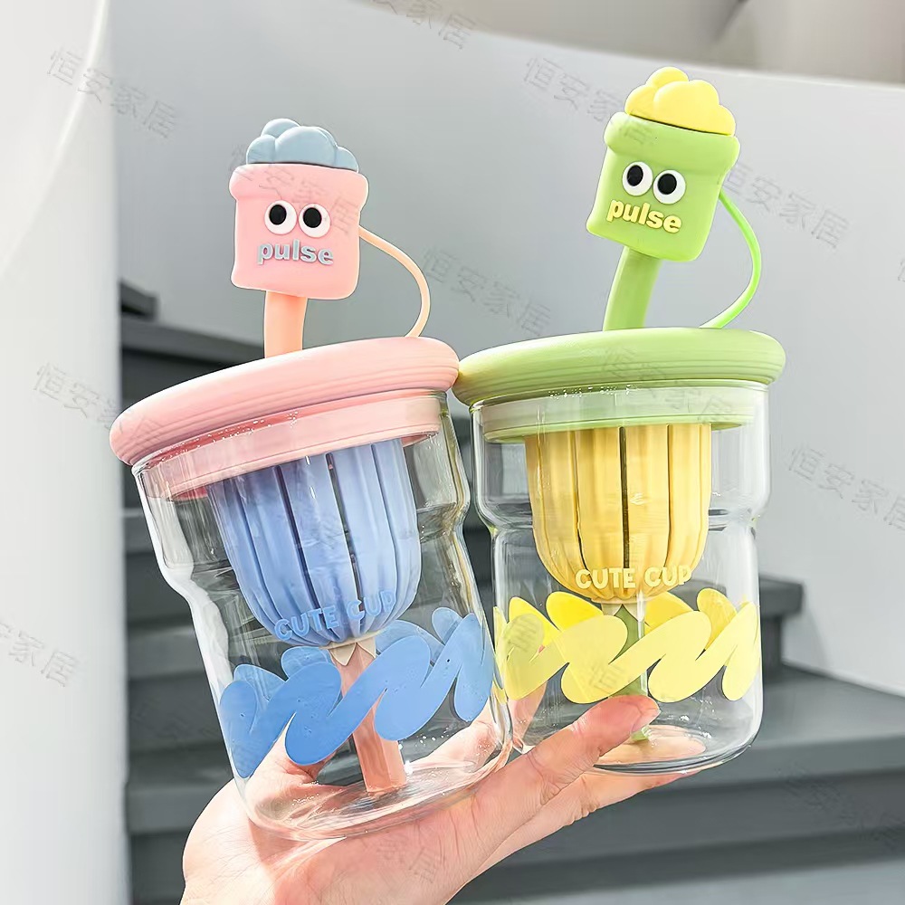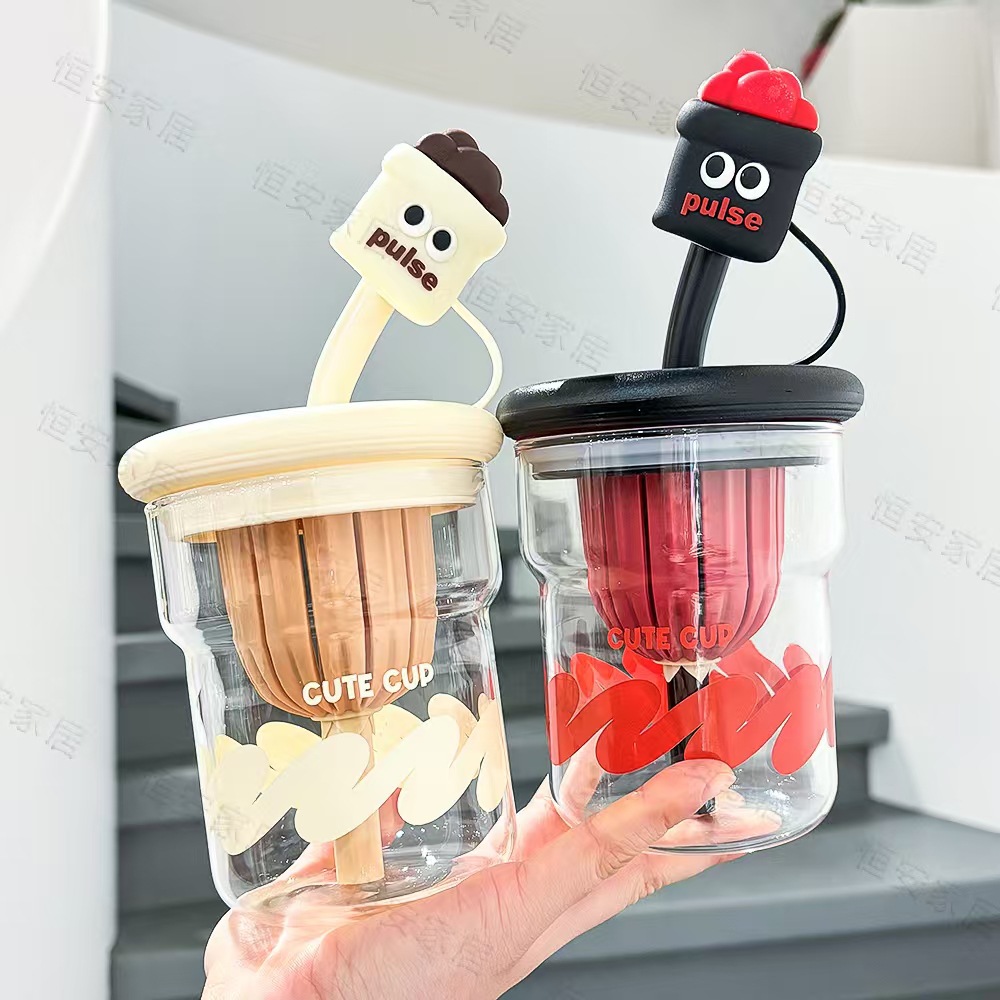 승리 커피 붕규산 유리 만화 물 컵 우유 컵 높은 색 가치 커피 핸드 헬드 컵을 즐기십시오