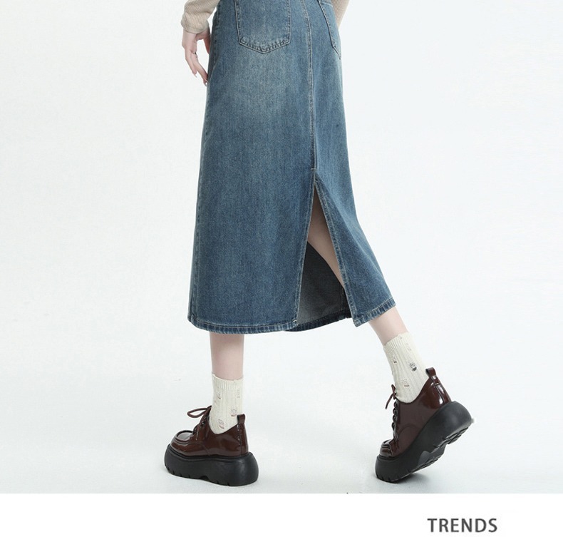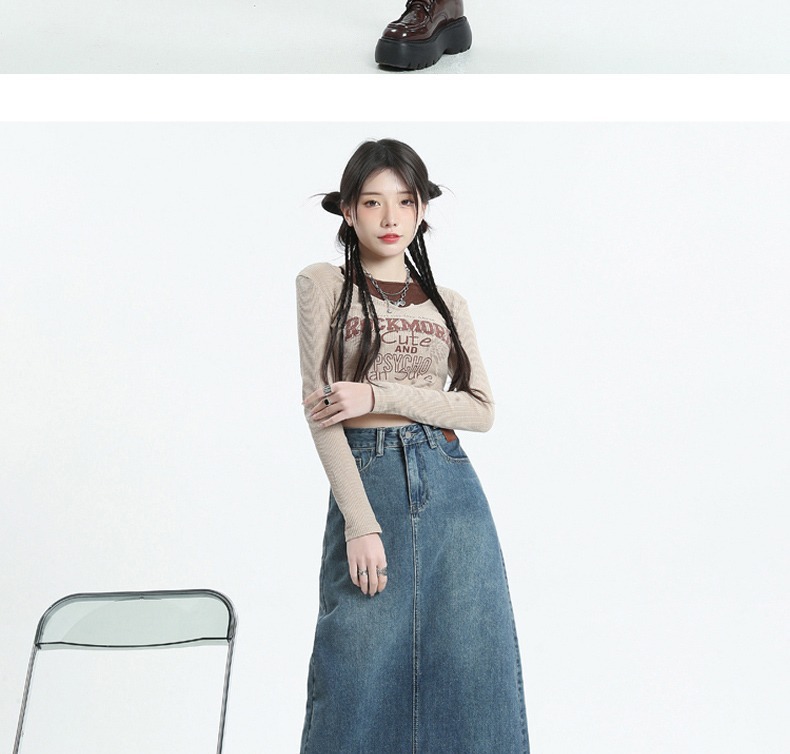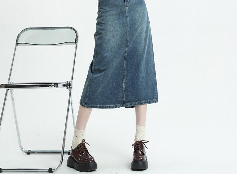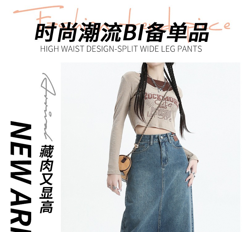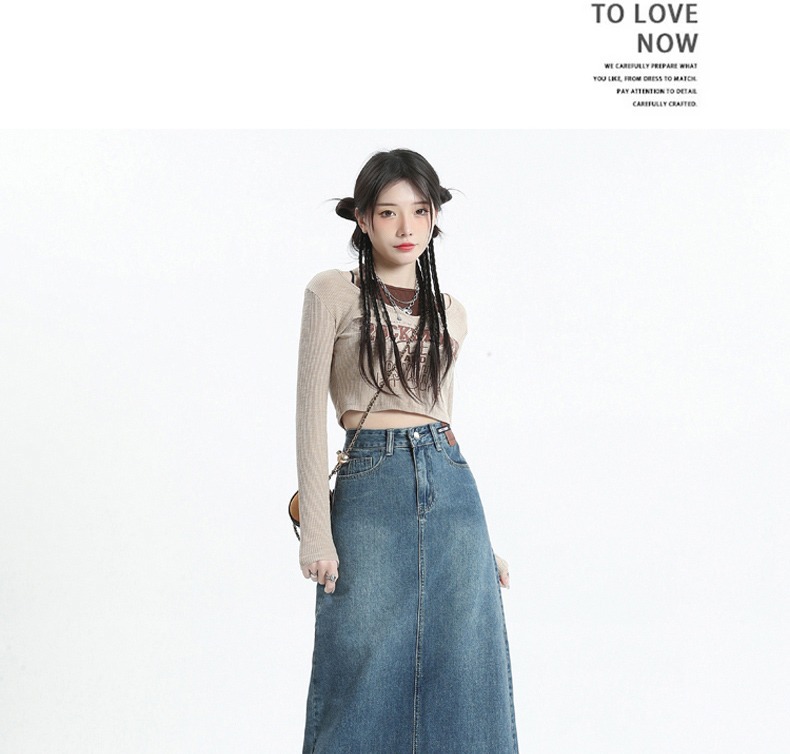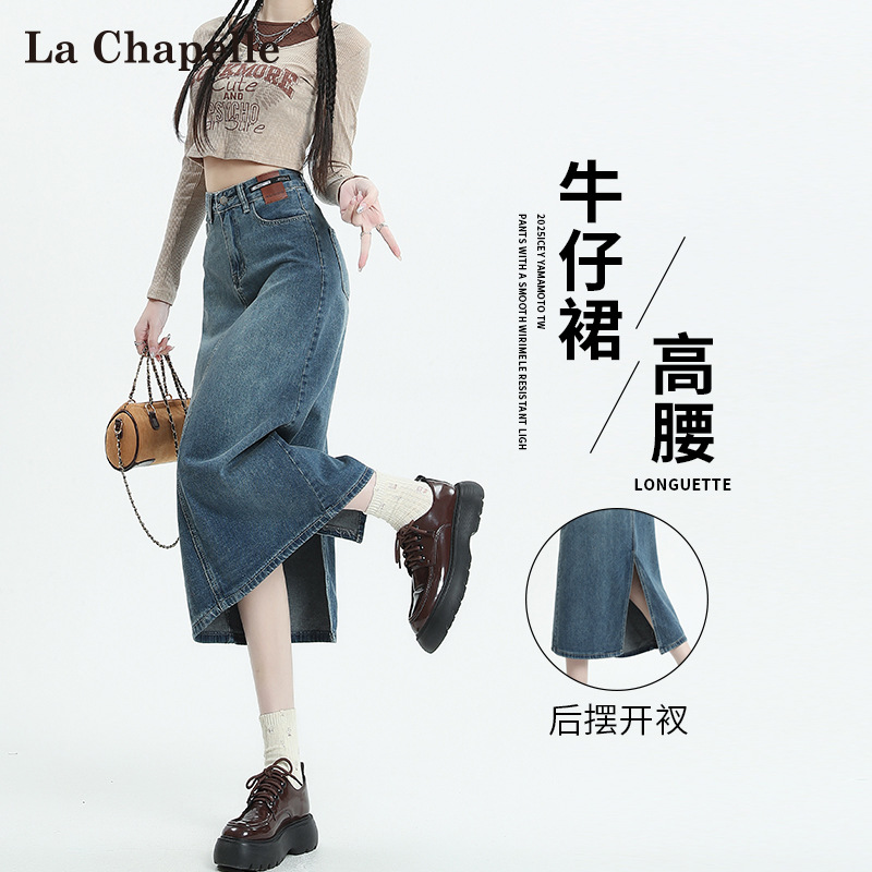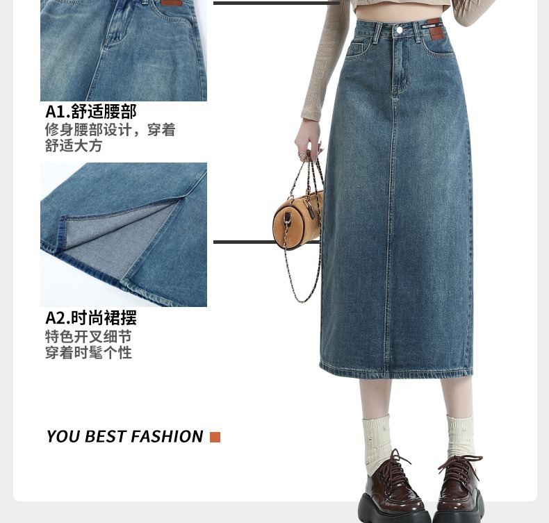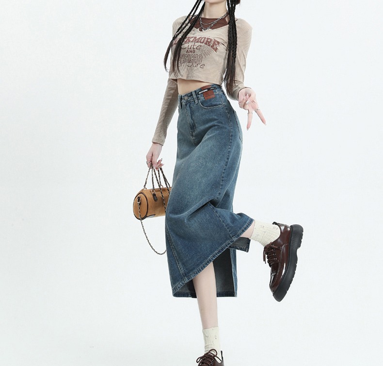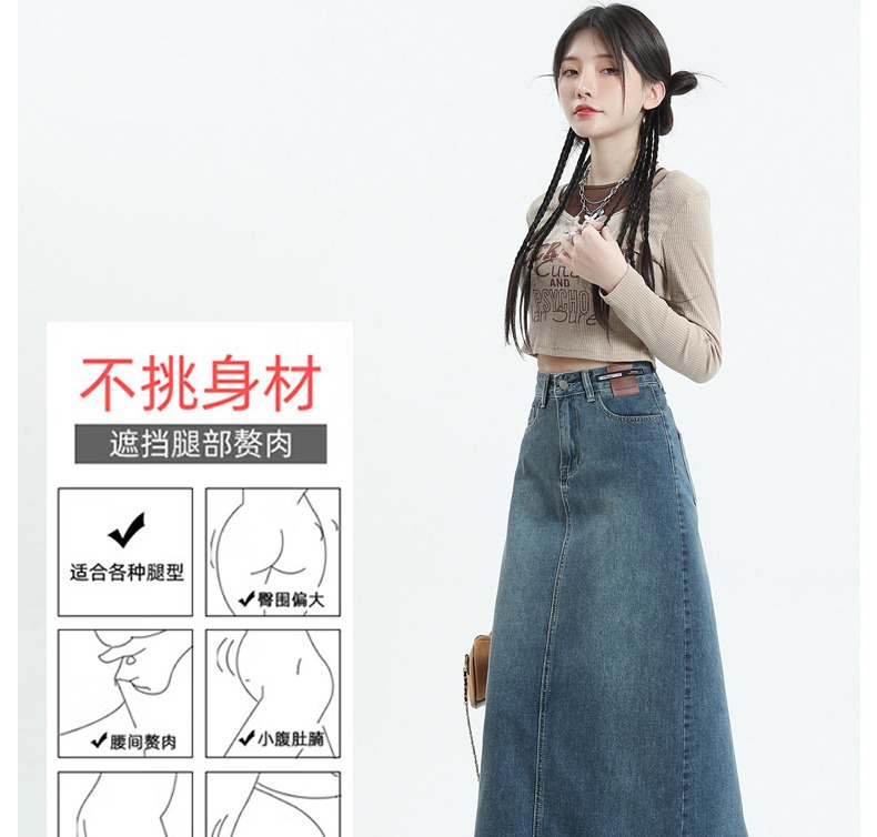 빈티지 데님 치마 여자 2025 년 이른 봄 유행 새로운 높은 허리 엉덩이 커버 슬리밍 A-모양의 엉덩이 스커트스토어 가기