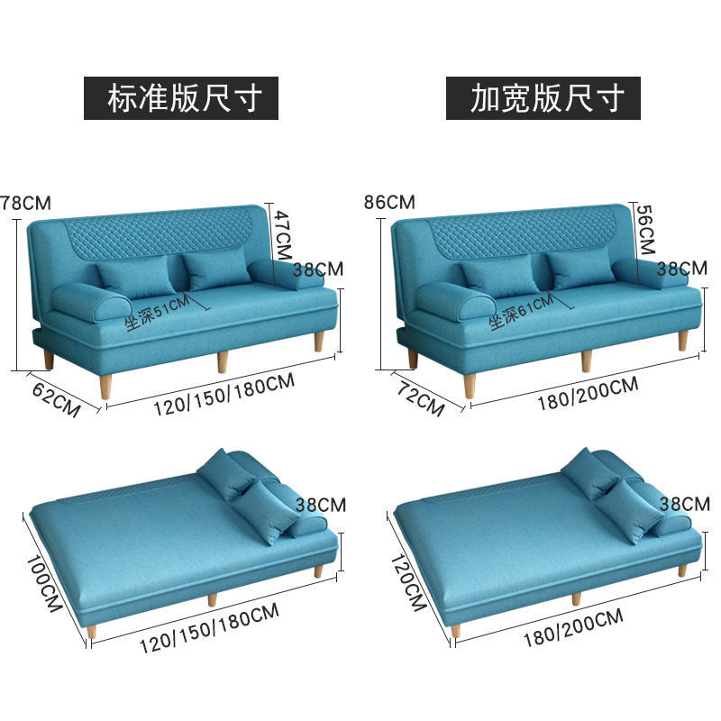 다기능 접이식 소파 침대 듀얼 사용 패브릭 소파 더블 3 인 거실 임대 작은 가정용 간단한 게으른 소파스토어 가기