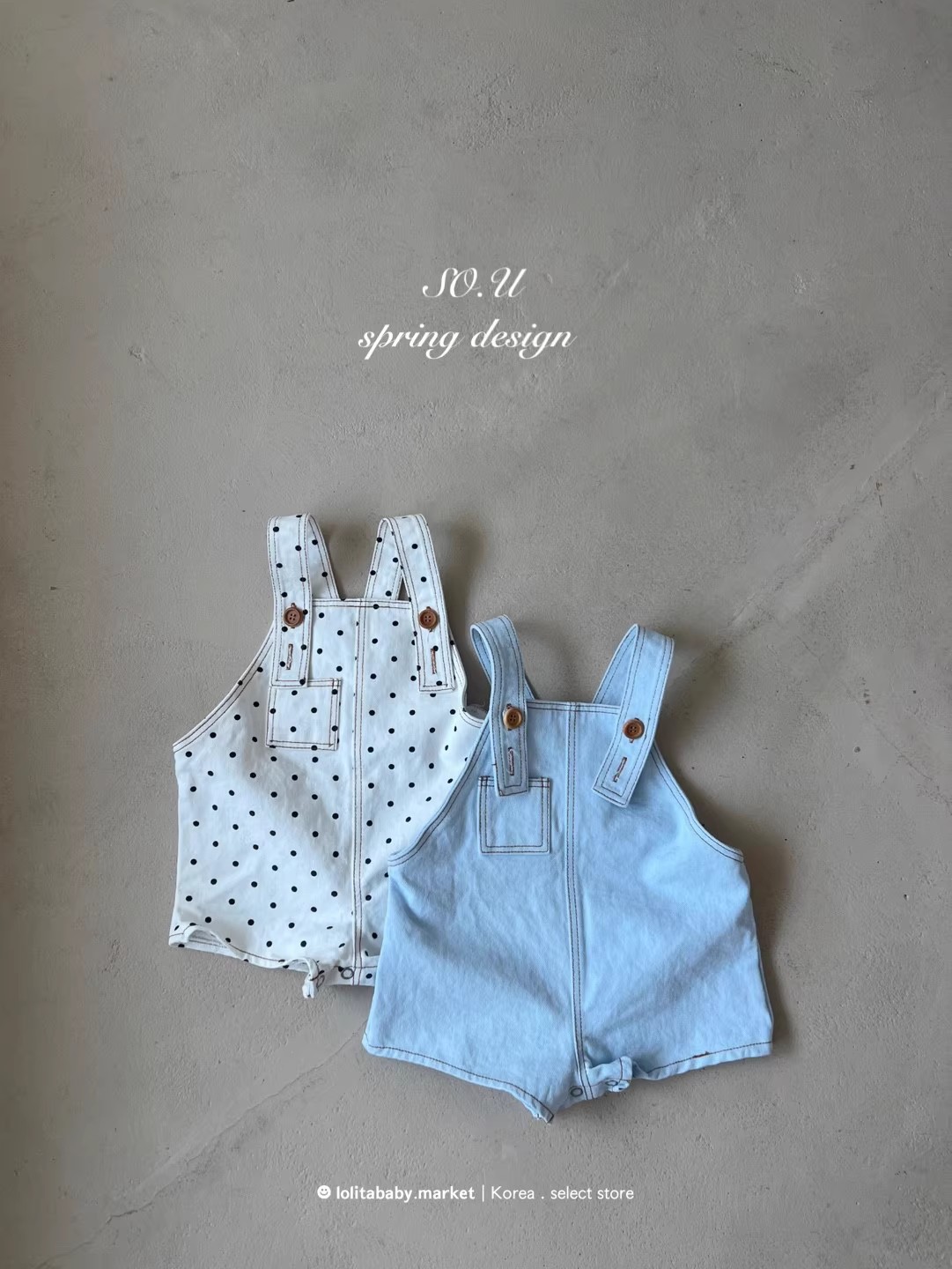 25 여름 스타일 유아 폴카 도트 서스펜더 반바지 한국 스타일 아동 의류 소년 소녀 유아 면화 부드러운 조절 청바지스토어 가기