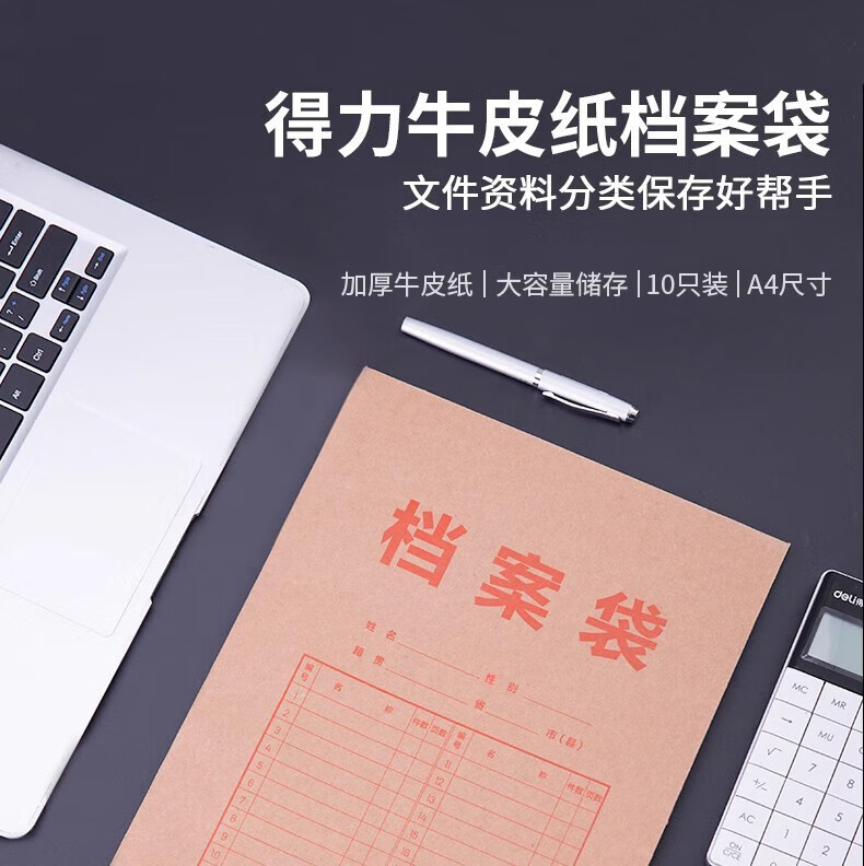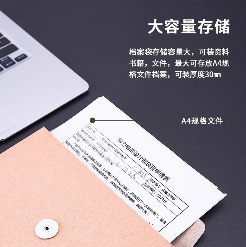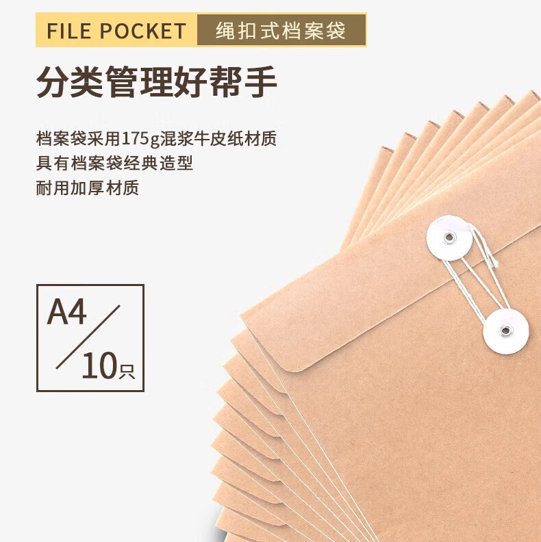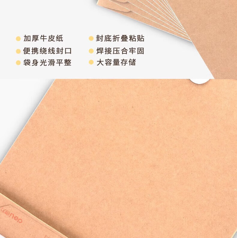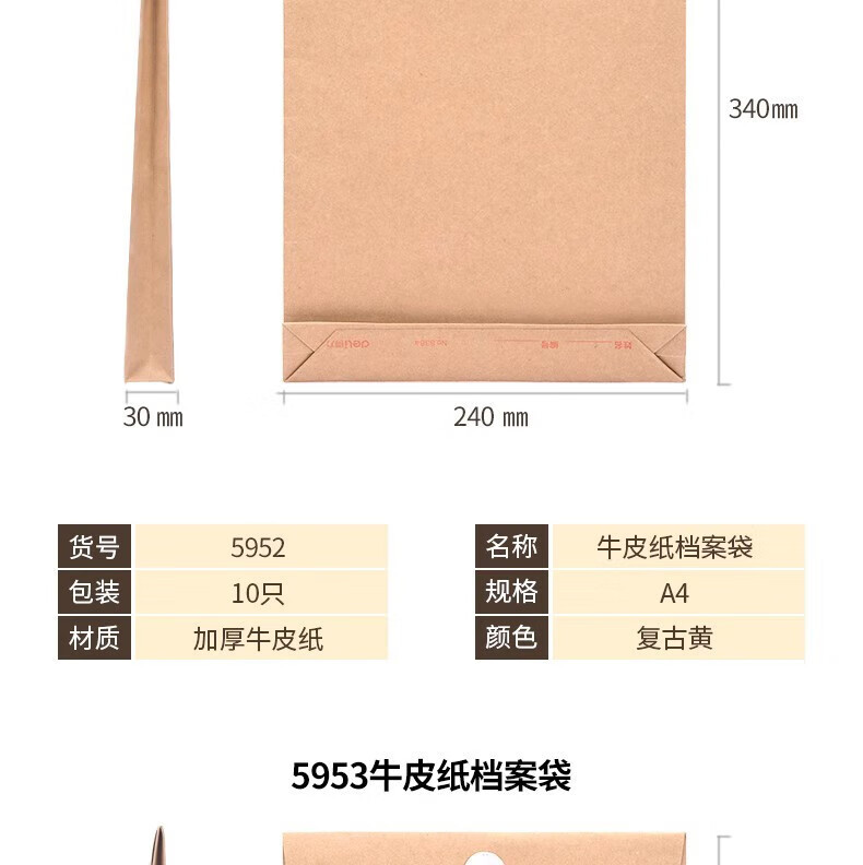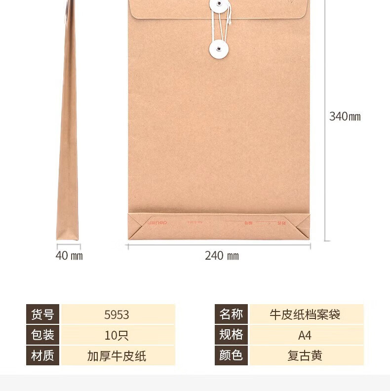 델리 크라프트지 파일백 5952/5953 노란색 로프 버클식 A4 두꺼운 뒷면 폭 4cm 파일백