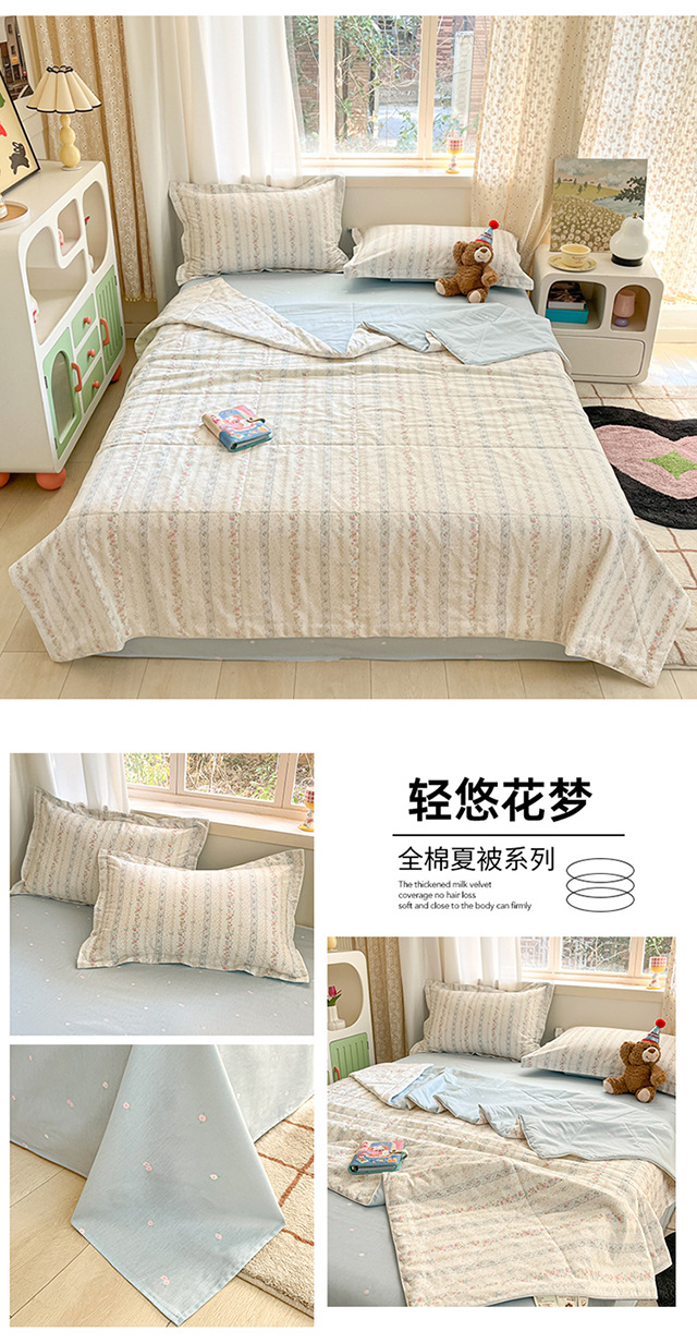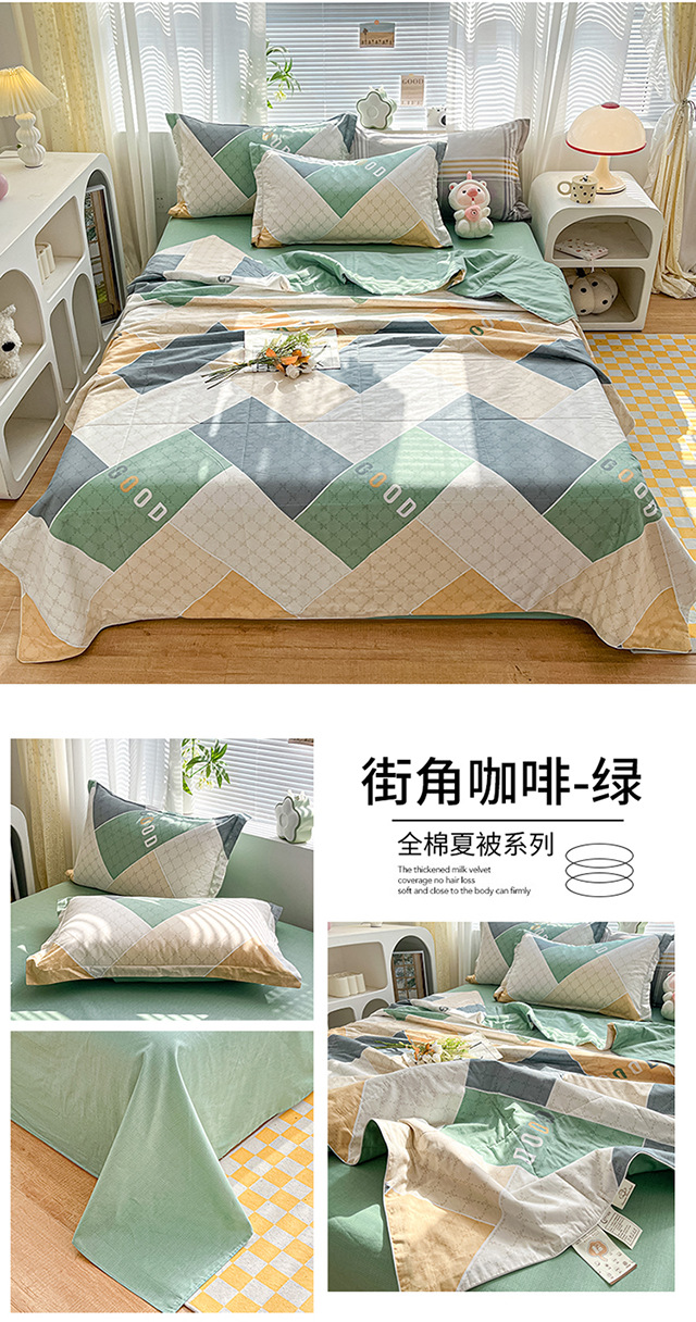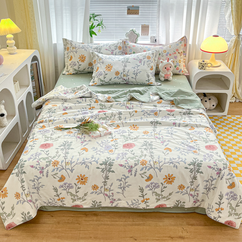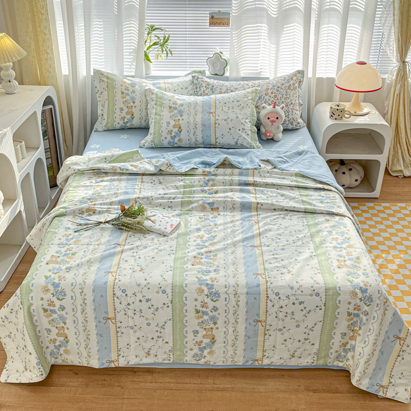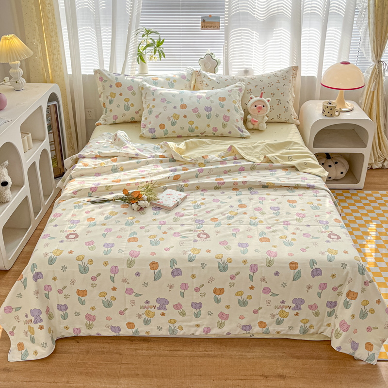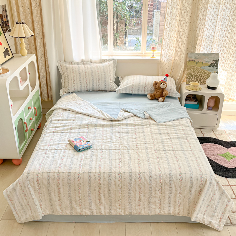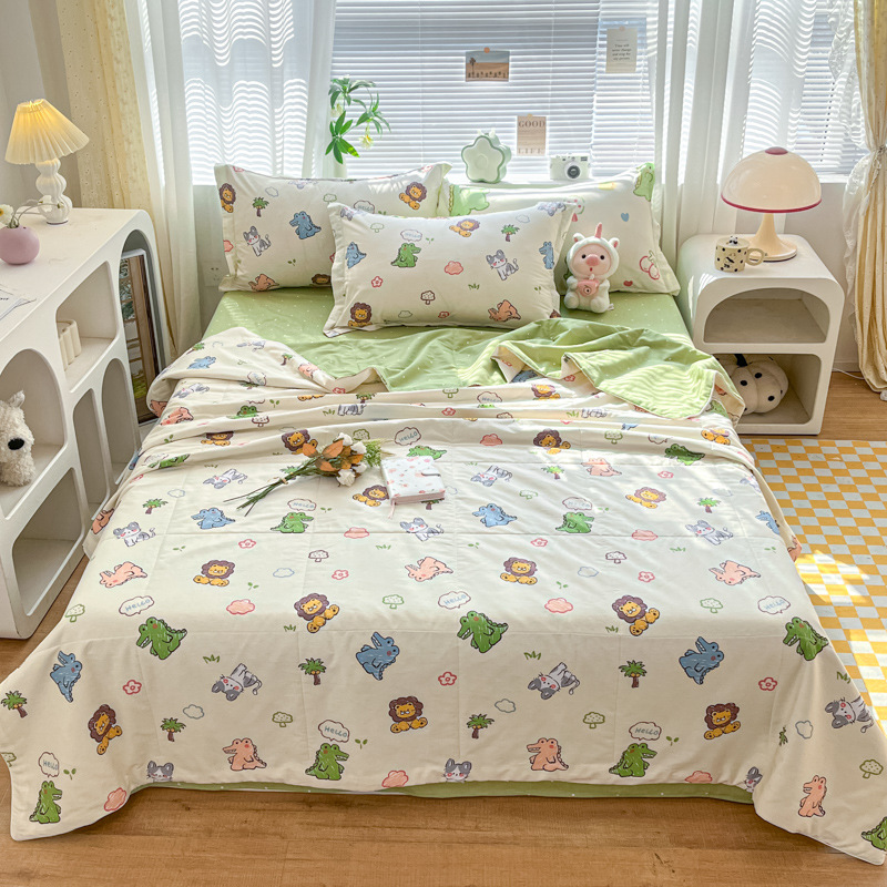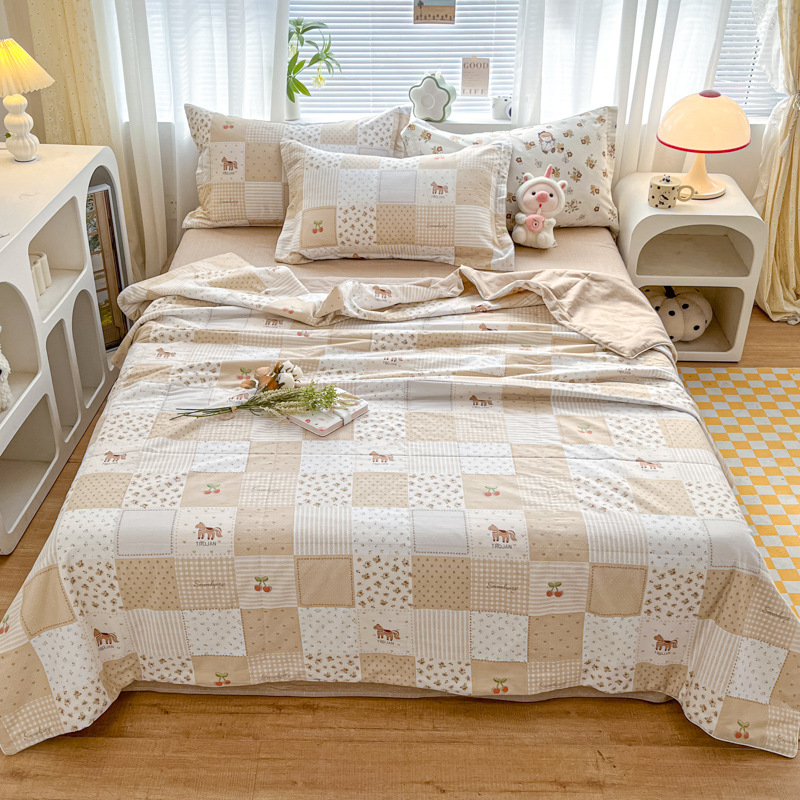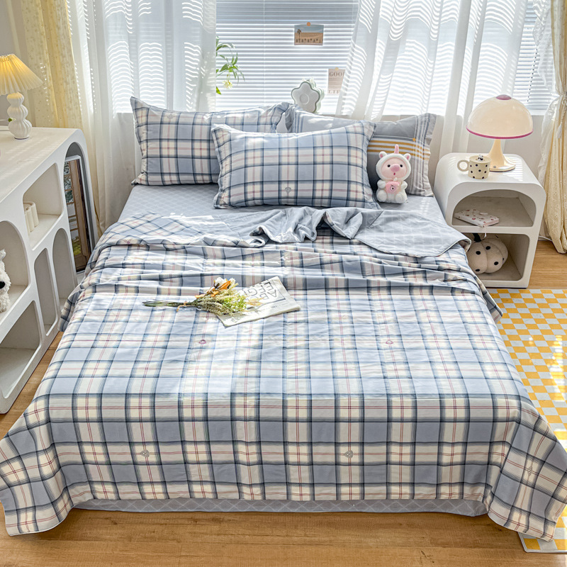 100% 면 신장 면 여름 시원한 이불 순수 면 클래스 에어컨 이불 기계 세탁기 세탁기 세척 가능한 얇은 이불 학생 및 어린이스토어 가기