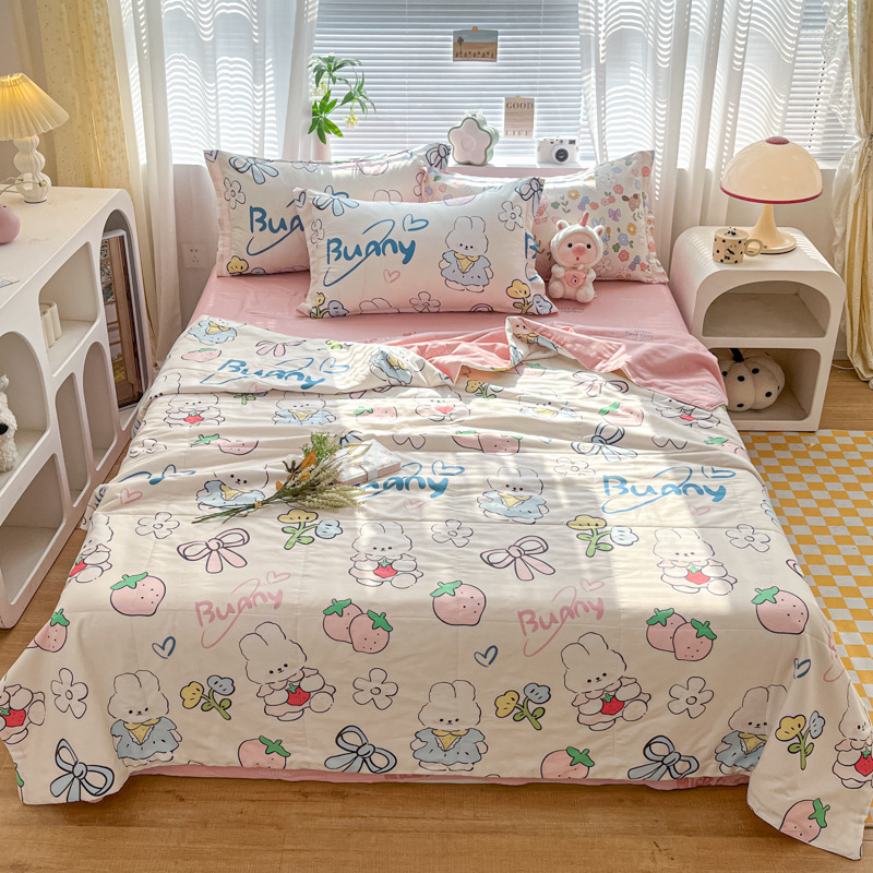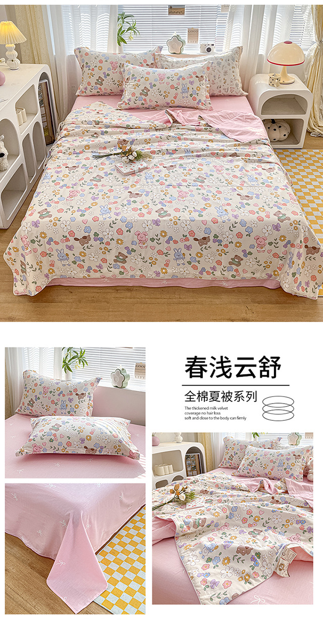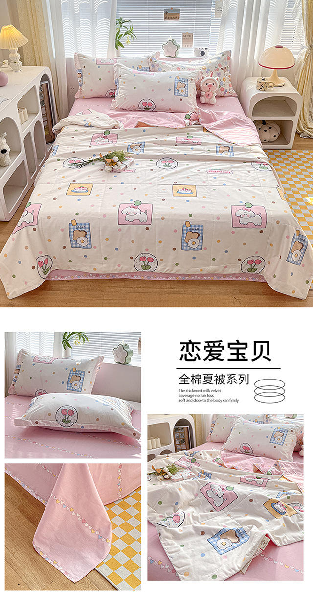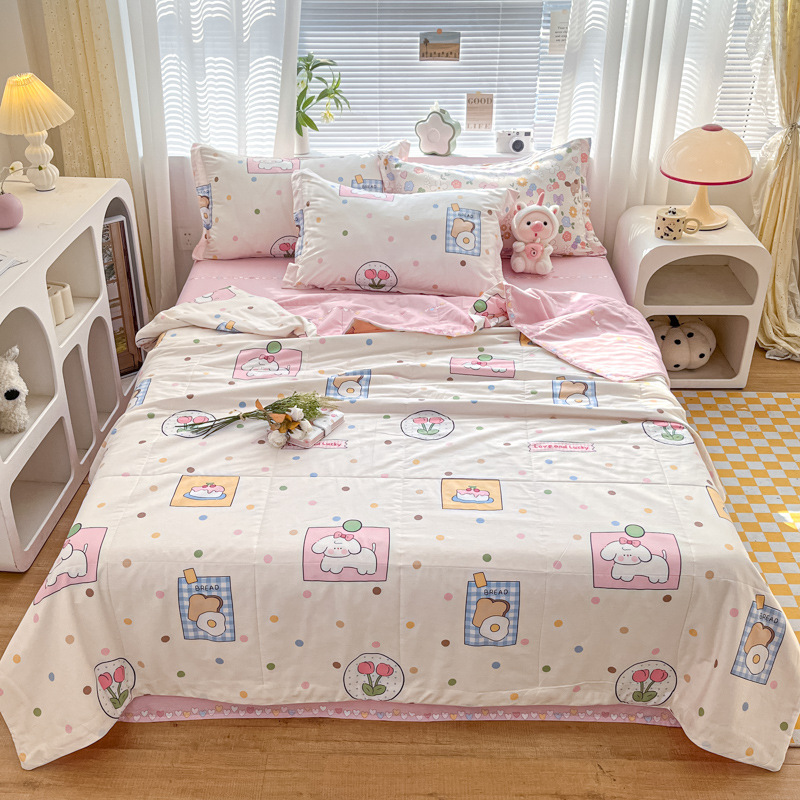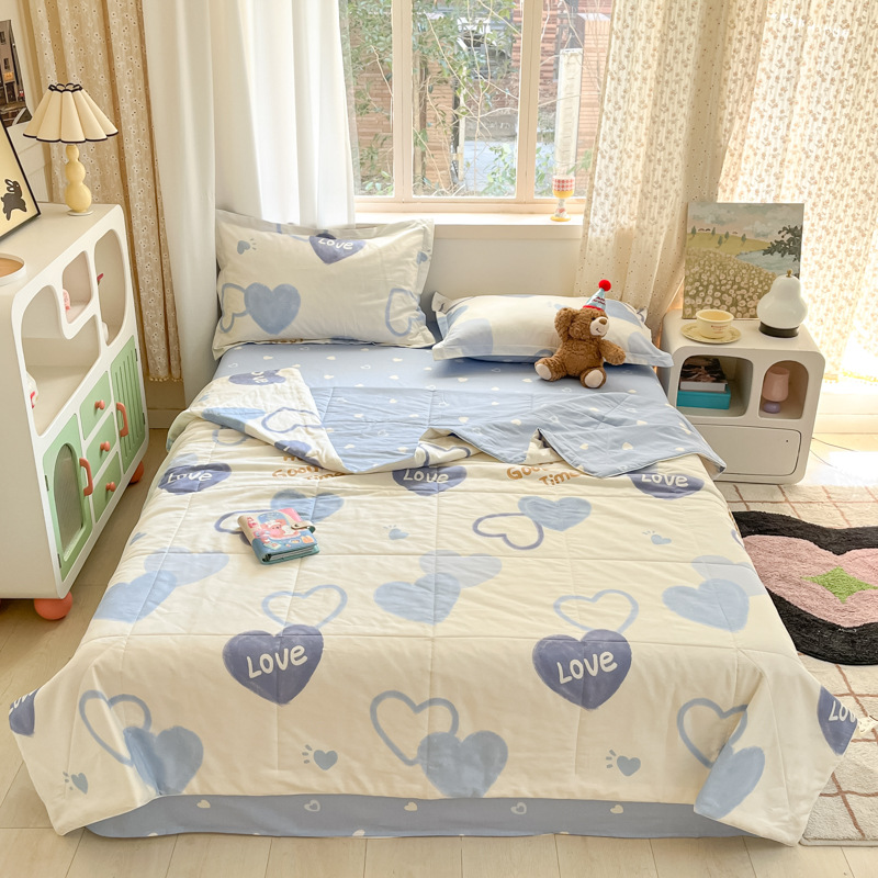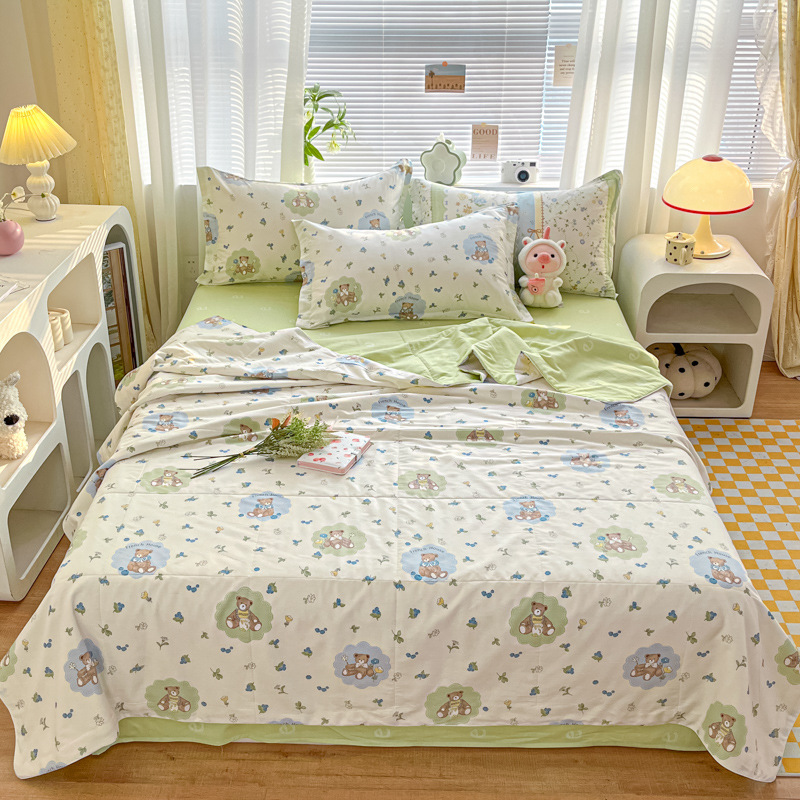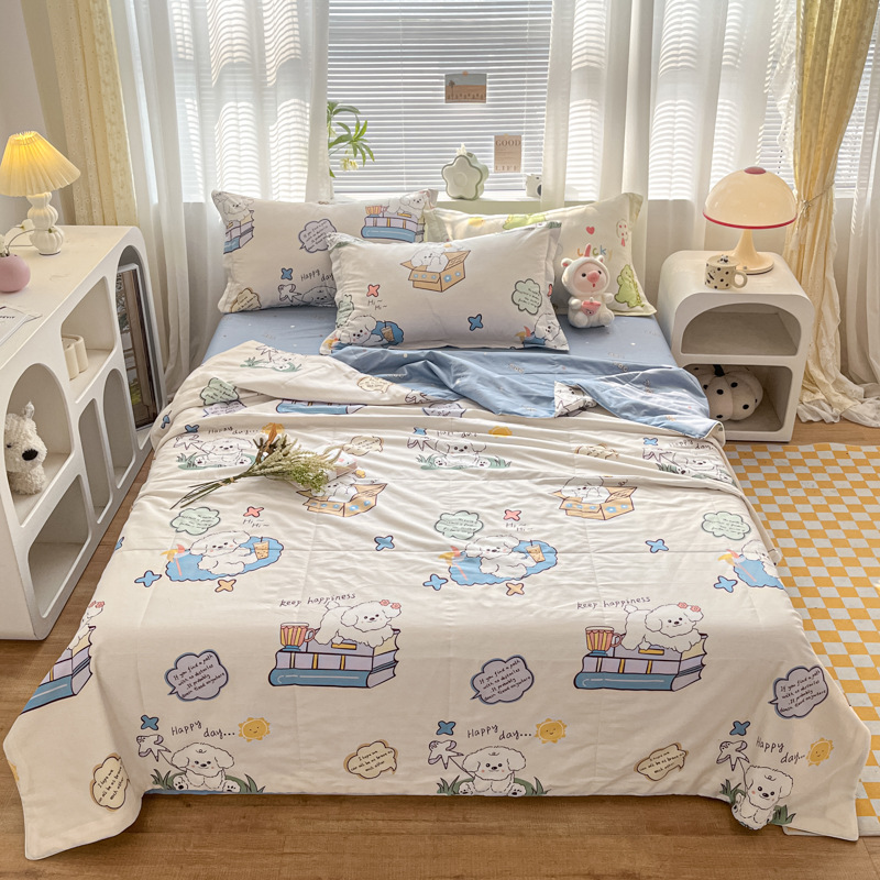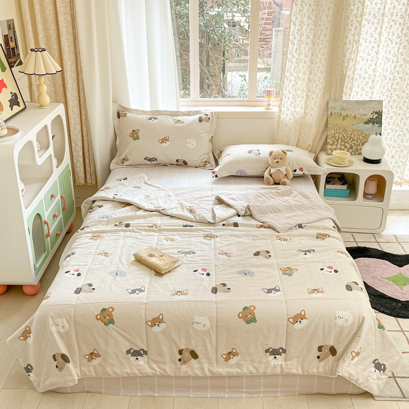 100% 면 신장 면 여름 시원한 이불 순수 면 클래스 에어컨 이불 기계 세탁기 세탁기 세척 가능한 얇은 이불 학생 및 어린이스토어 가기