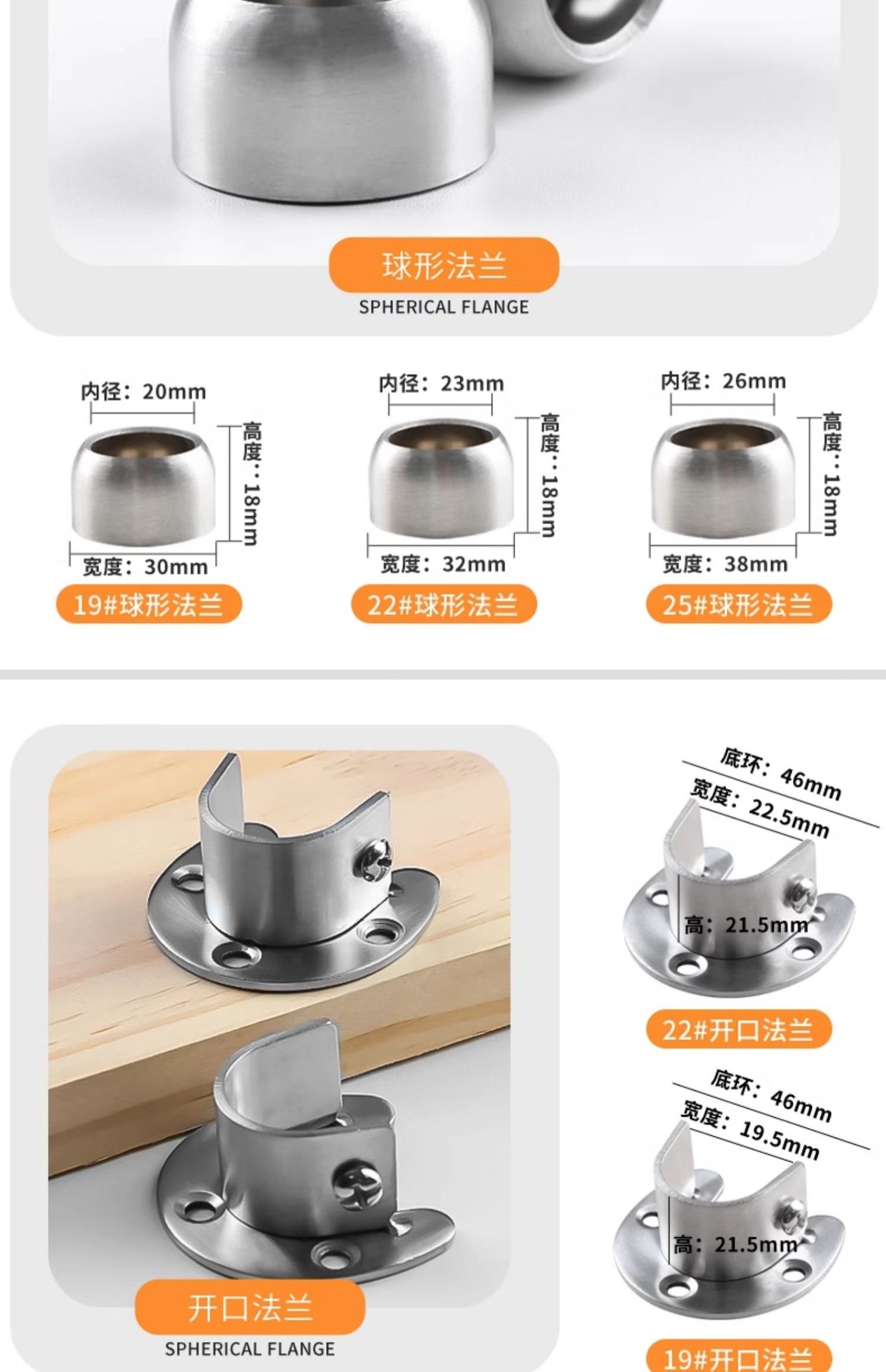• 【304】커버가 있는 높은 플랜지 22MM(2개 팩) 나사 포함