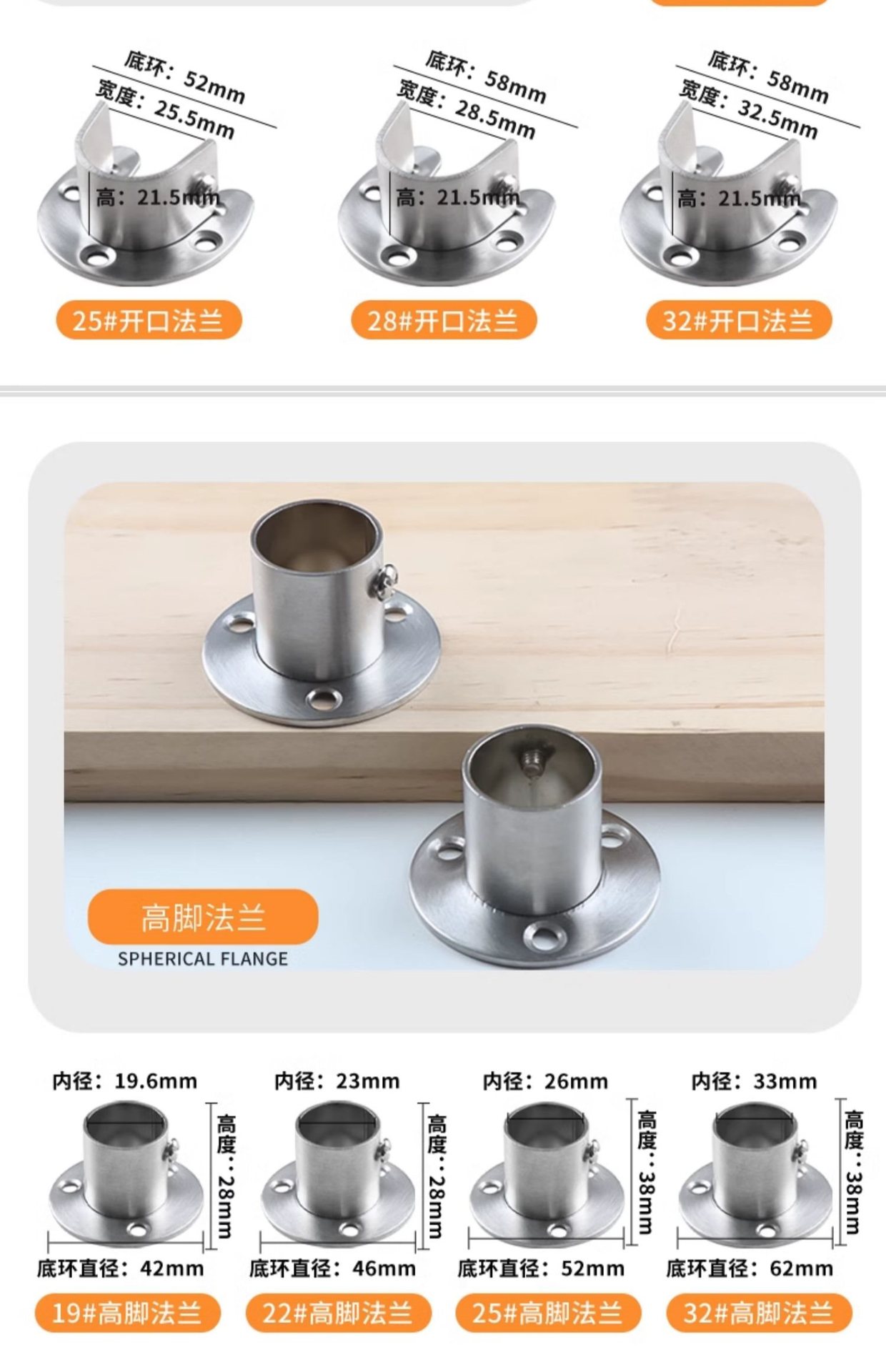 • 【304】커버가 있는 하이플랜지 32MM(2개 팩) 나사 포함