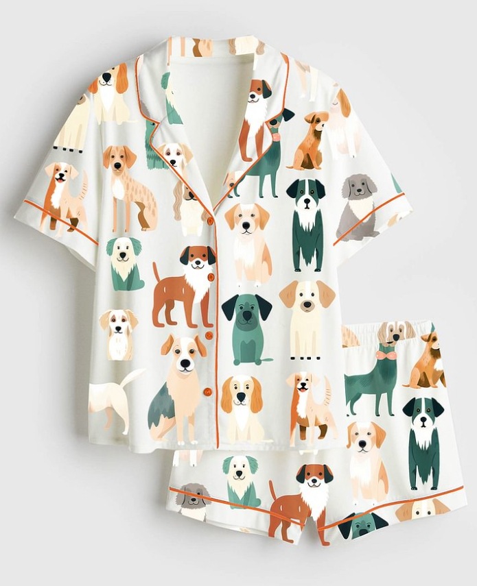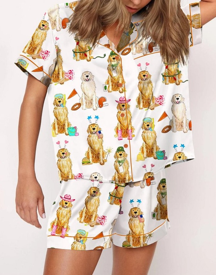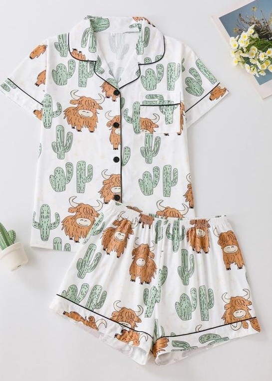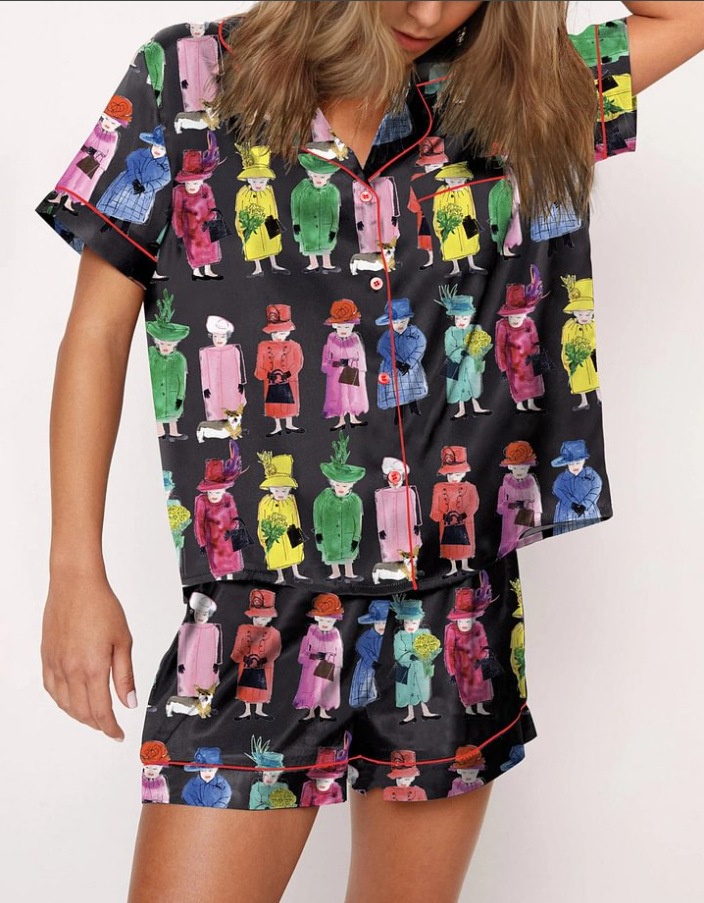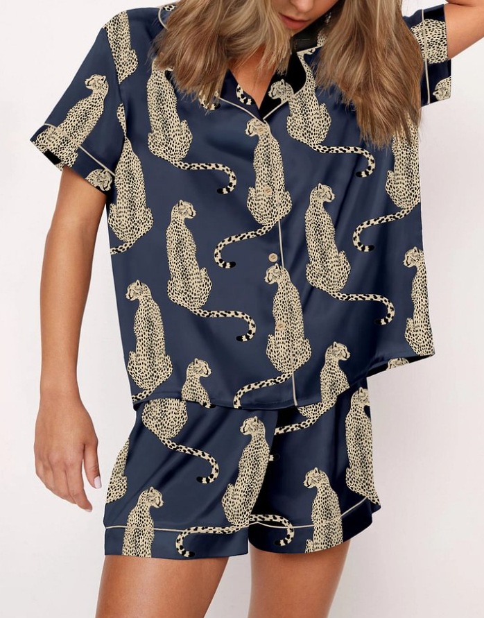 欧美新款夏季翻领睡衣两件套装睡衣女纺棉印花短袖短裤套装两件套