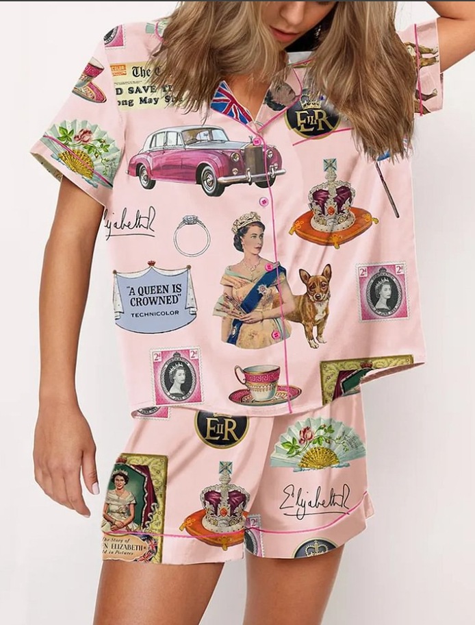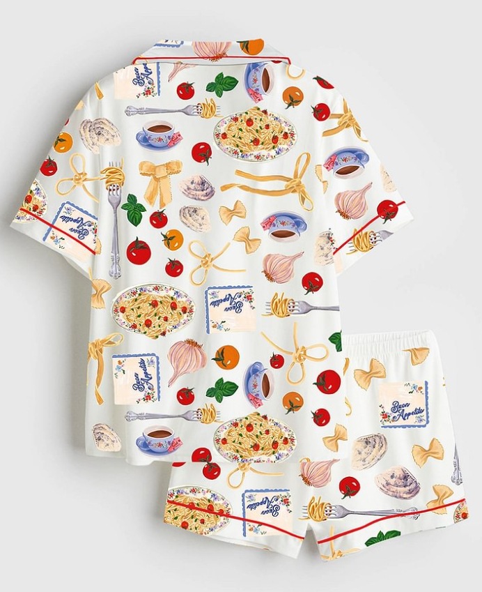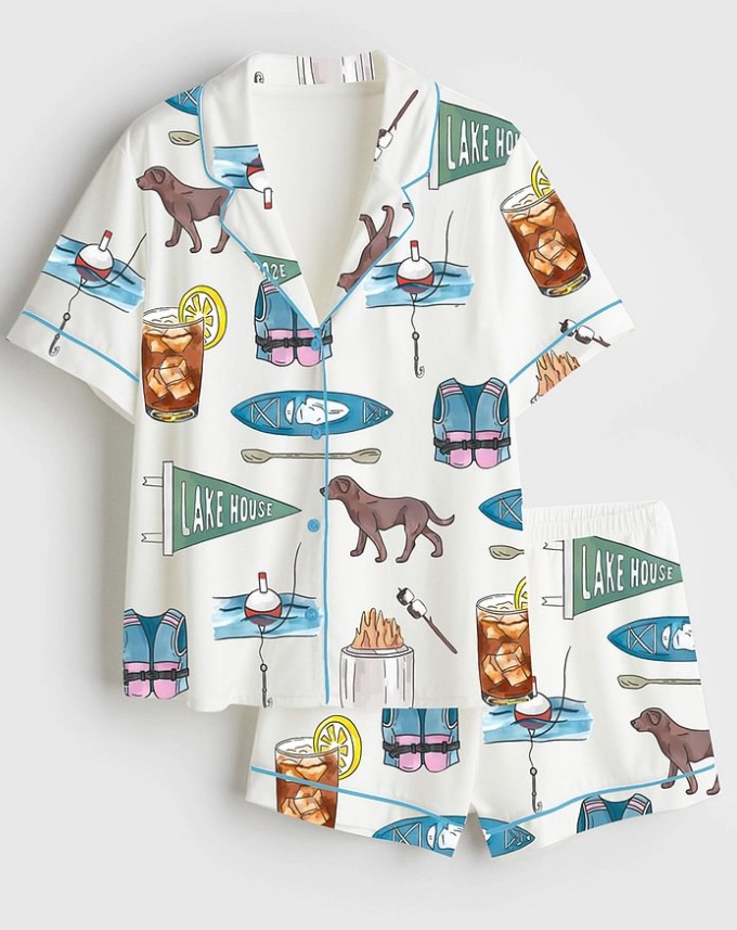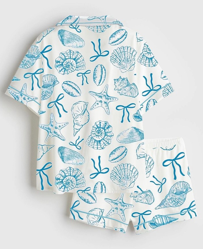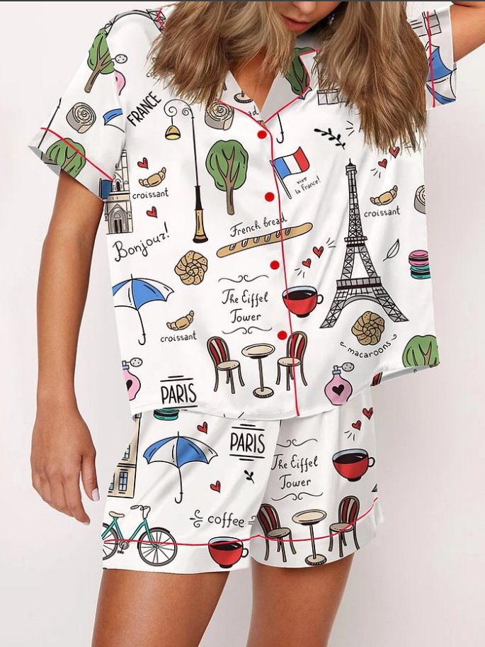 유럽과 미국의 새로운 여름 옷깃 파자마 투피스 세트 파자마 여성용 회전 면 프린트 반바지 세트 투피스 세트스토어 가기