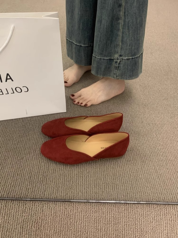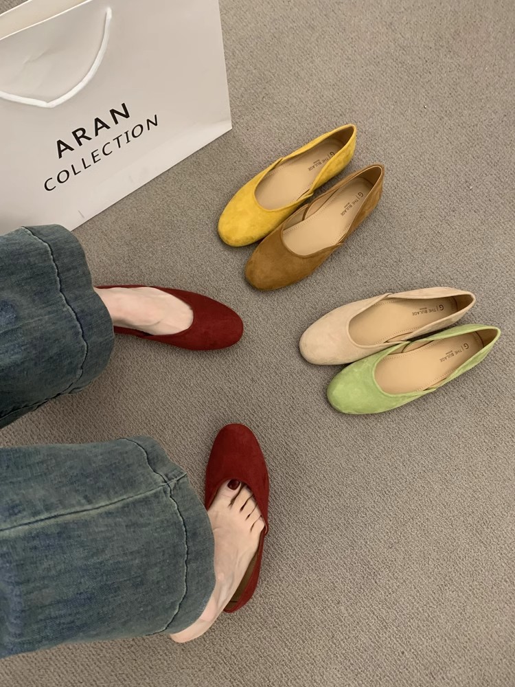 스웨이드 레트로 부드러운 바닥 메리 제인 신발 여성 2025 봄 새 화이트 얕은 입 레드 신발 올 매치 스커트 신발스토어 가기