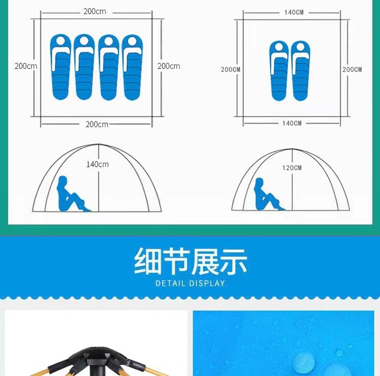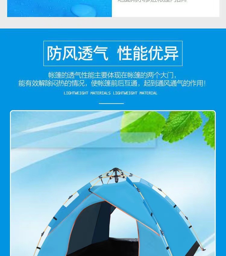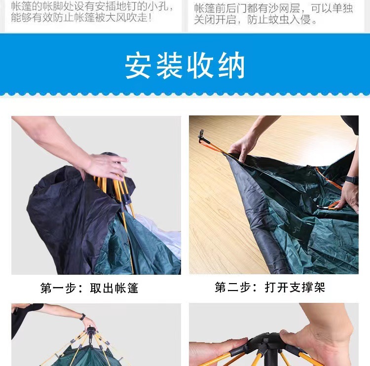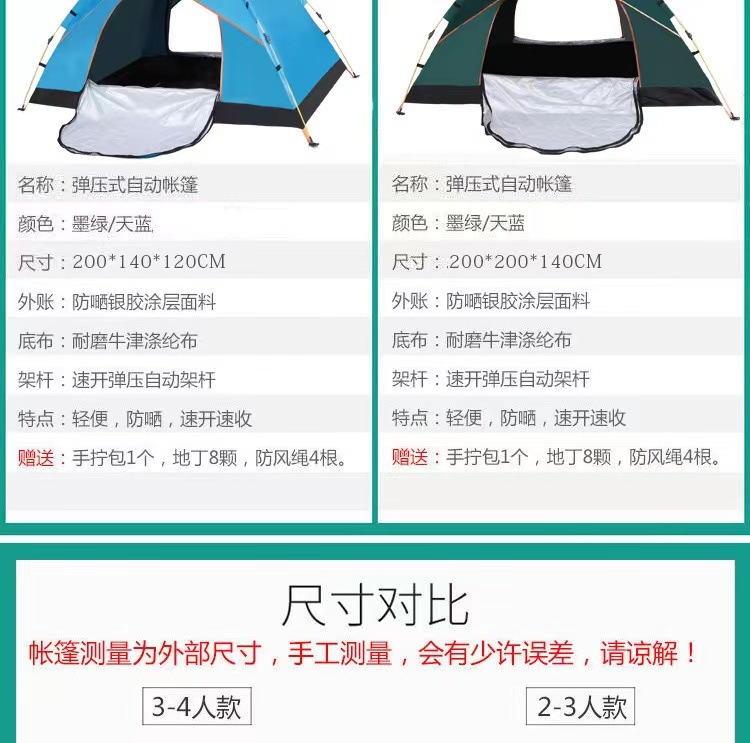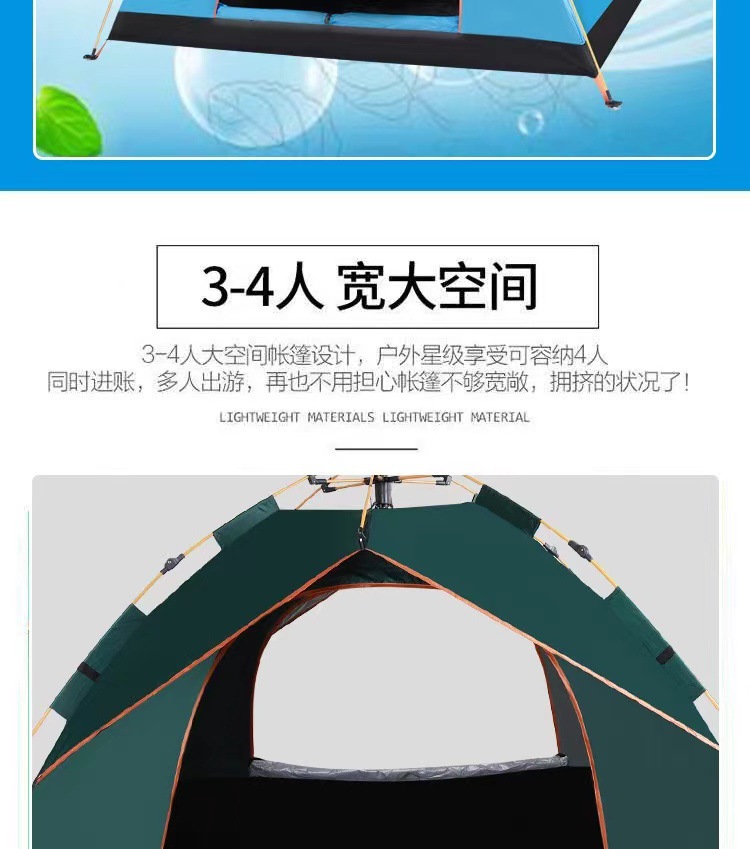 해변 3-4인용 여행용 이중층 자동 텐트 캠핑 풀세트 장비 야외 2인용 캠핑 빠른 설치스토어 가기