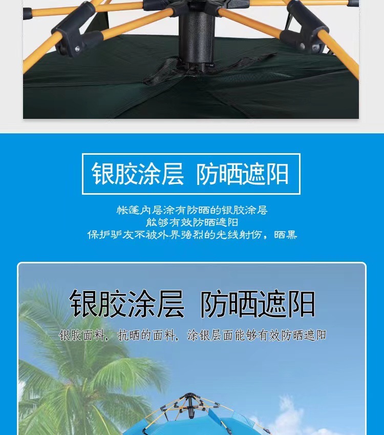 해변 3-4인용 여행용 이중층 자동 텐트 캠핑 풀세트 장비 야외 2인용 캠핑 빠른 설치