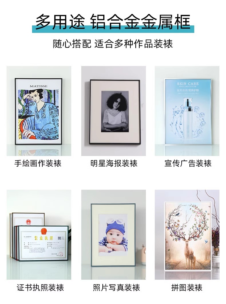 알루미늄 합금 포토 프레임 벽 매달려 간단한 액자 광고 비즈니스 라이센스 퍼즐 프레임 장착 포스터 A3 금속 프레임
