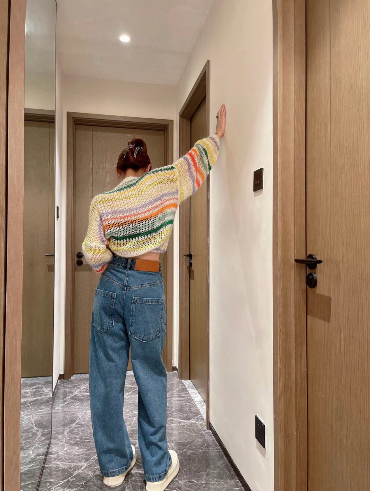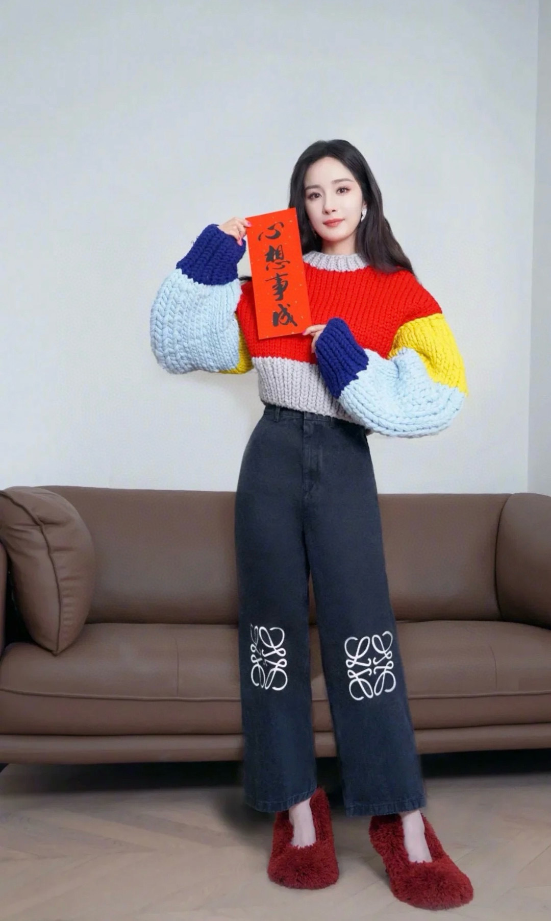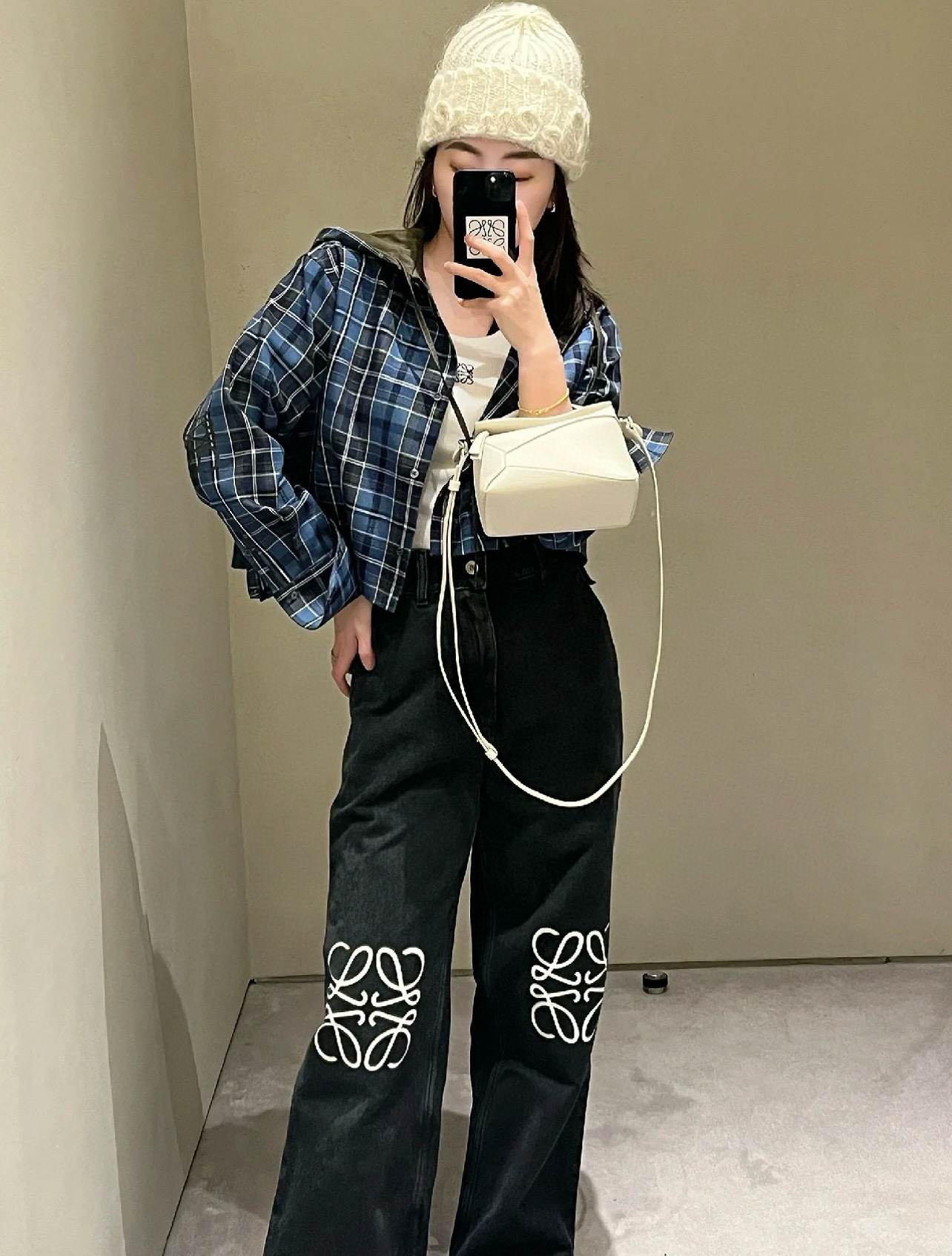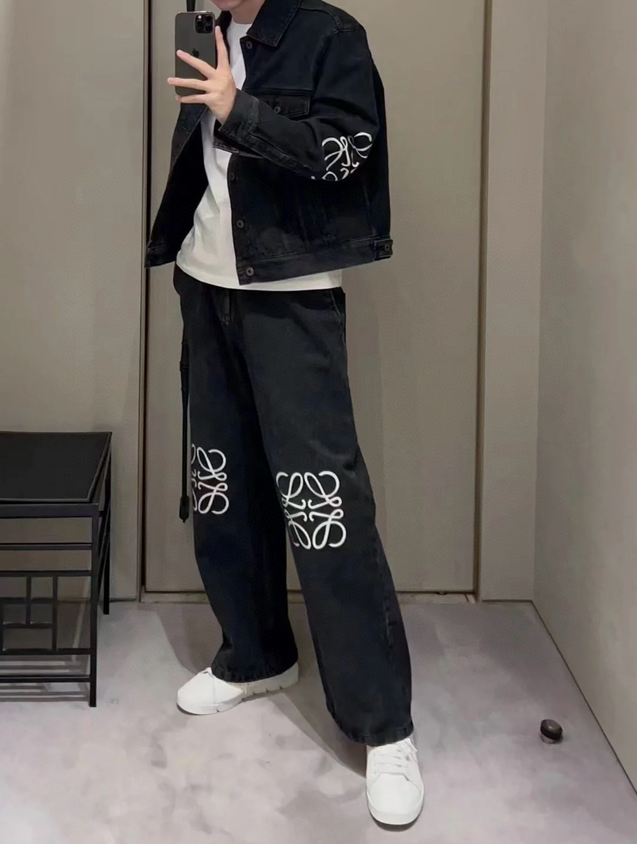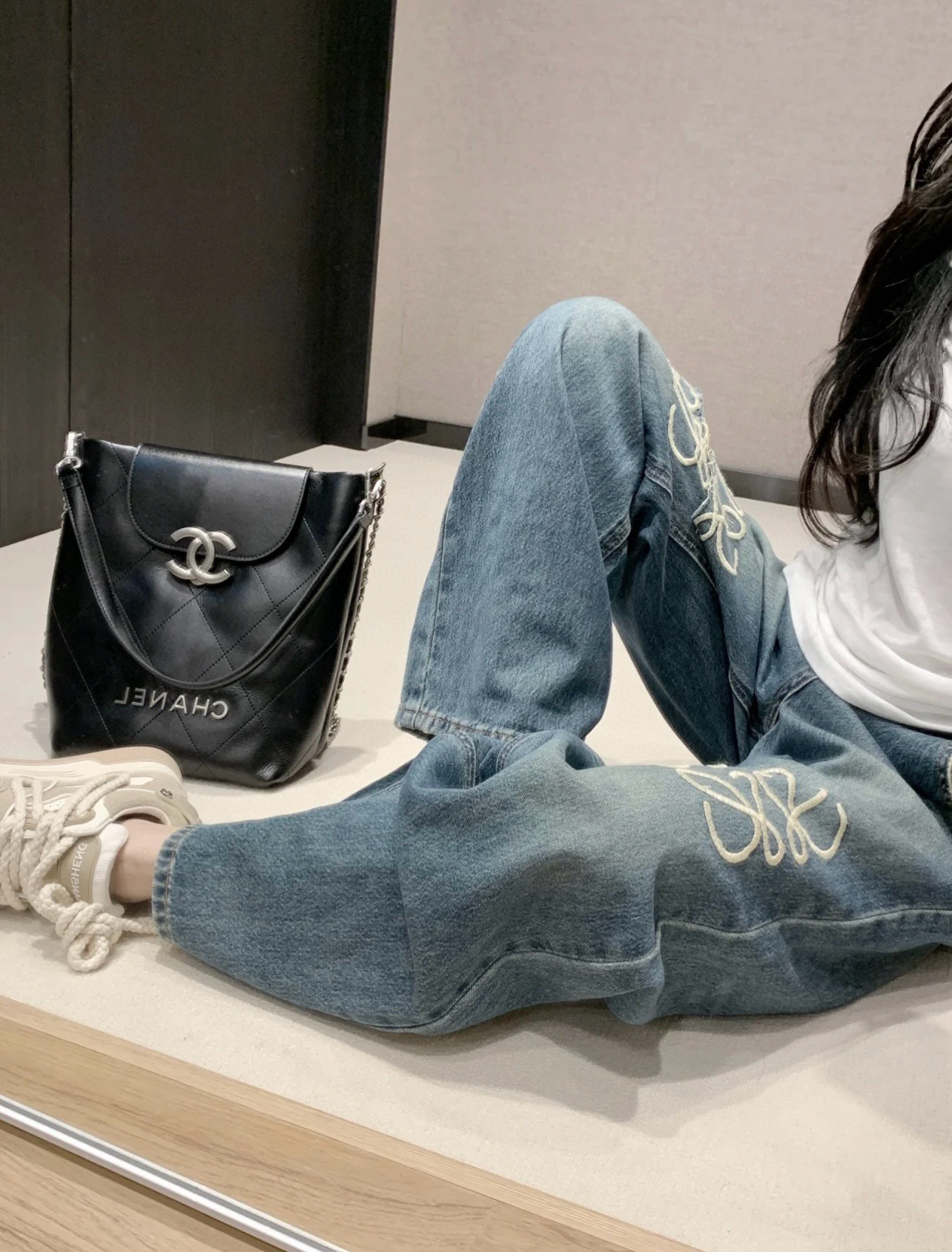 유행 브랜드 LOWE 클래식 자수 청바지 여성용 높은 허리 스트레이트 와이드 레그 팬츠 캐주얼 패션 슬리밍 스타 바지스토어 가기