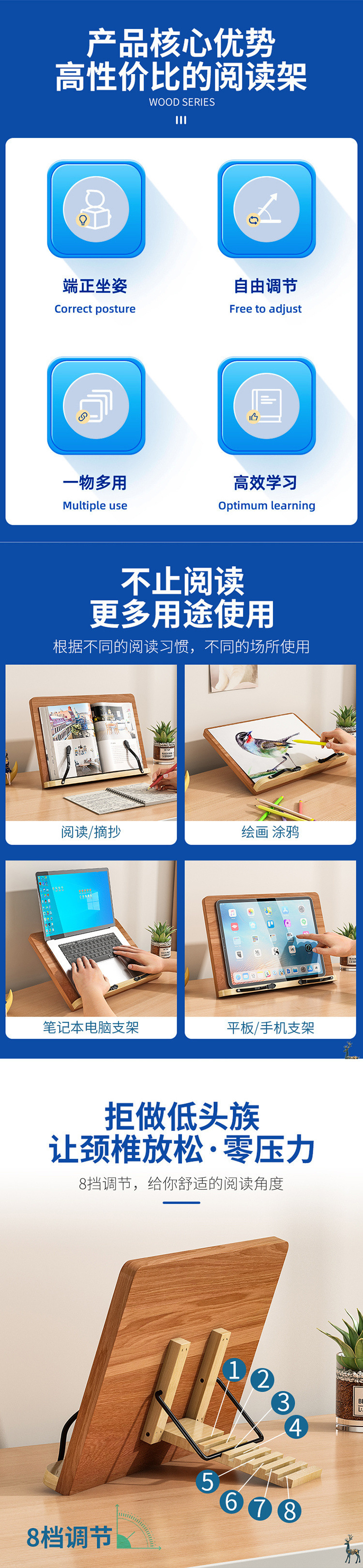 독서 스탠드 랙 독서 책장 나무 성인 독서 아티팩트 북 스탠드 학생 어린이 책 클립 포스트 랙