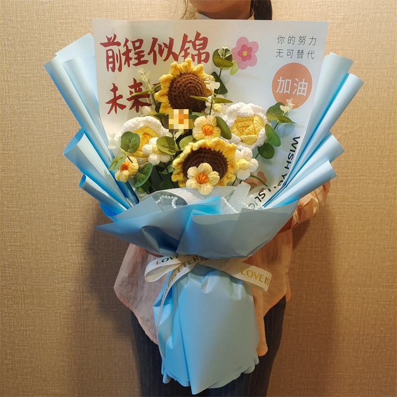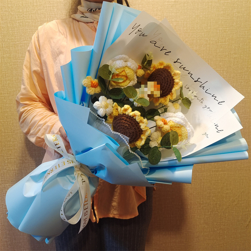 양모 손으로 짠 꽃다발 완성 해바라기 생일 소녀 회사 직원 활동 용품