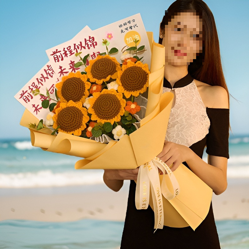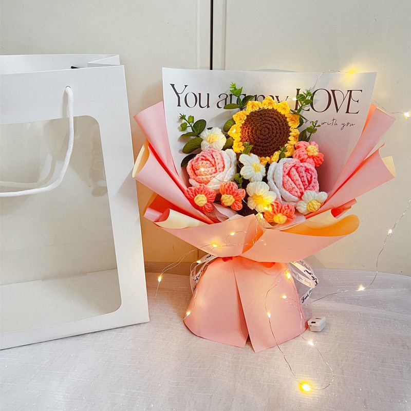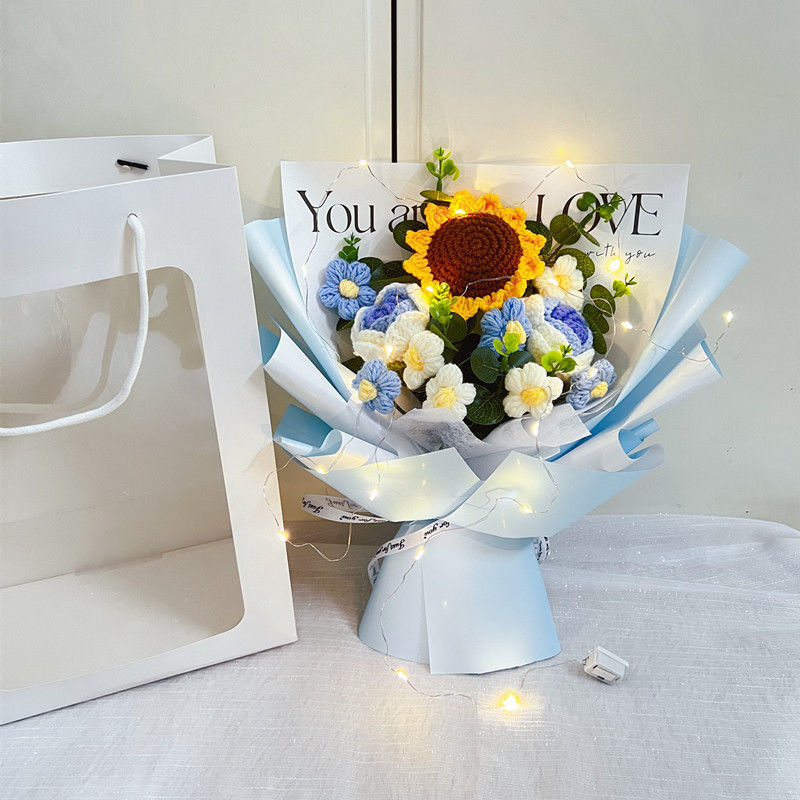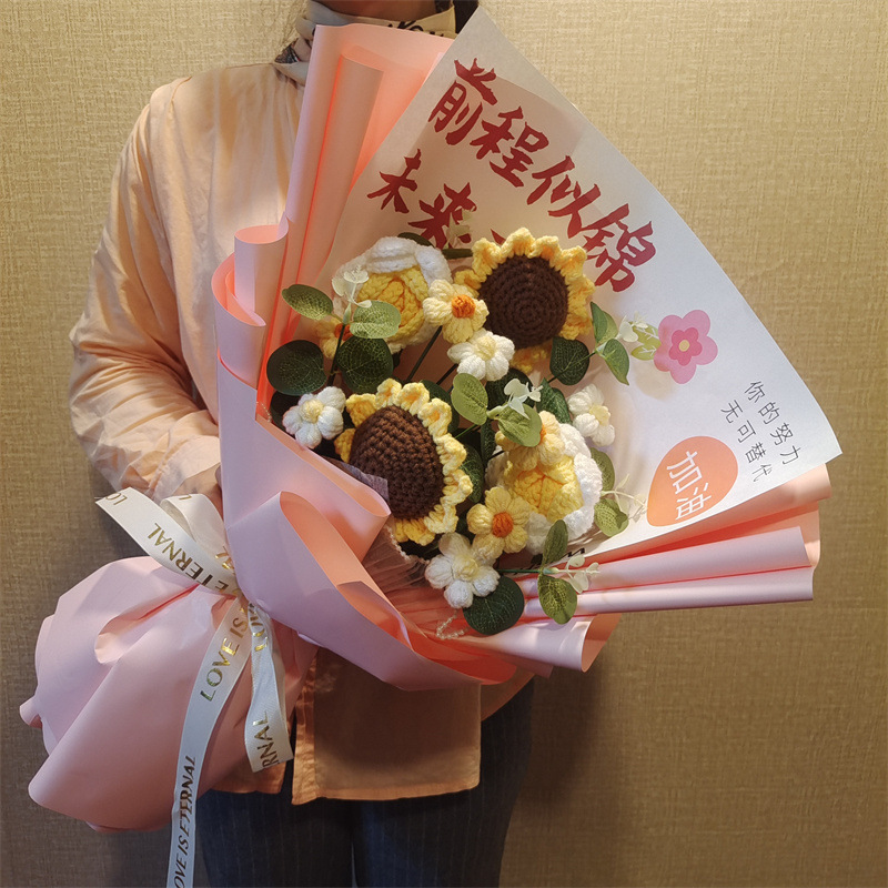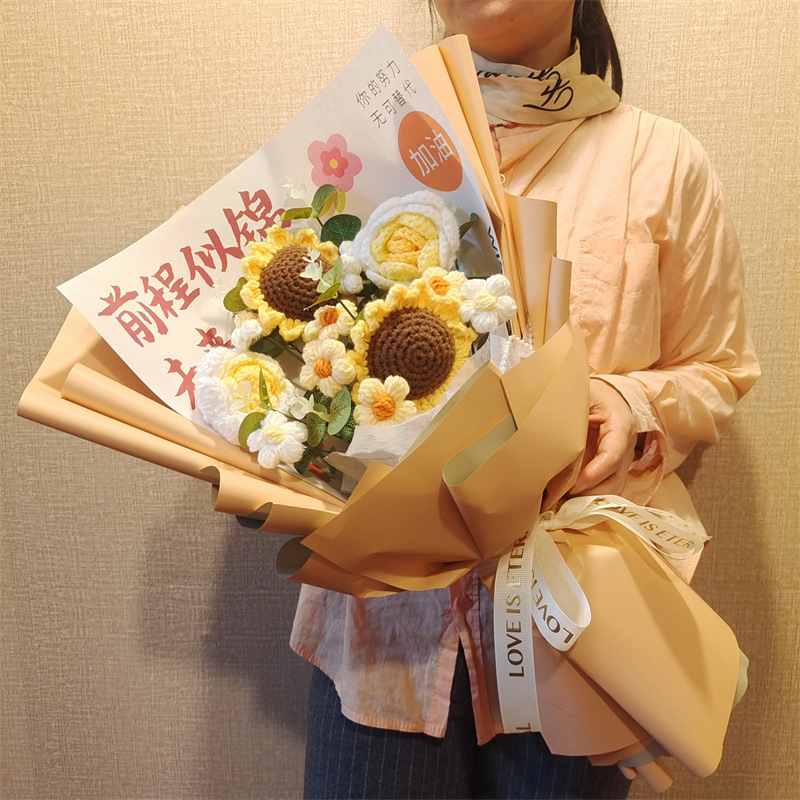 양모 손으로 짠 꽃다발 완성 해바라기 생일 소녀 회사 직원 활동 용품스토어 가기