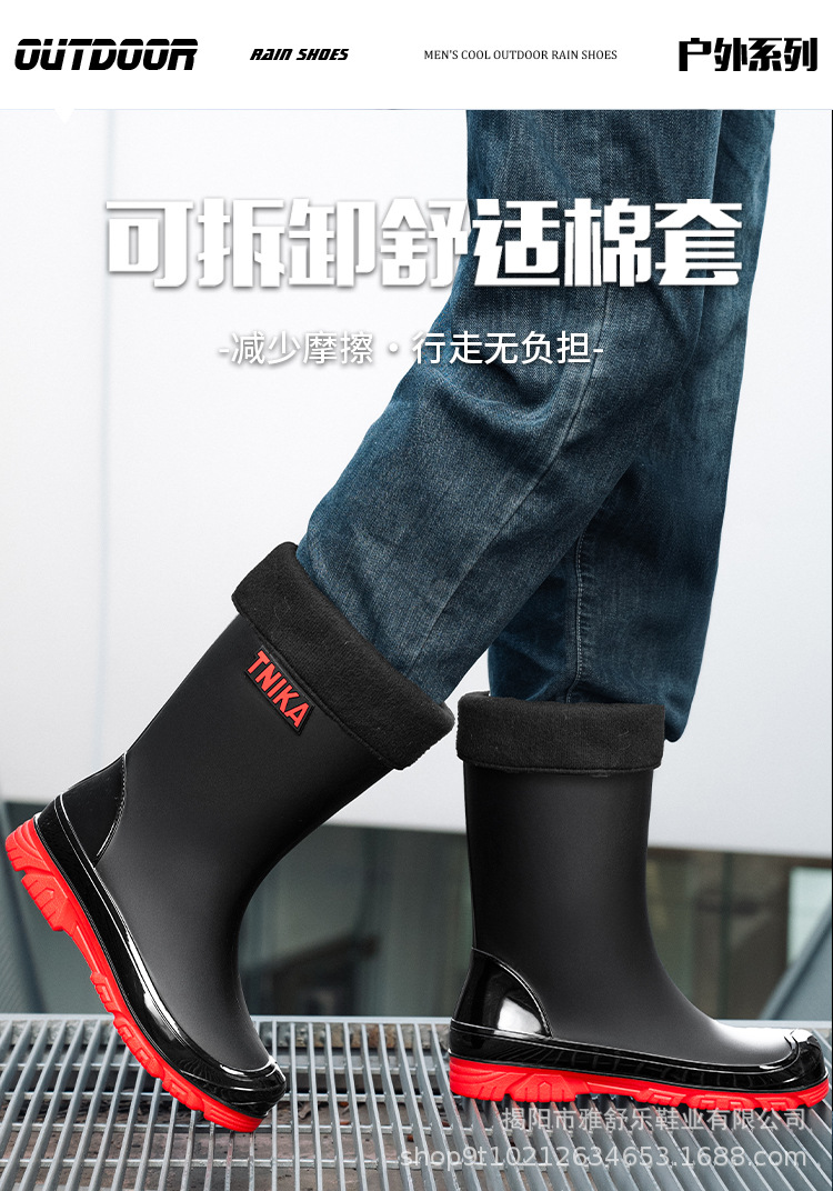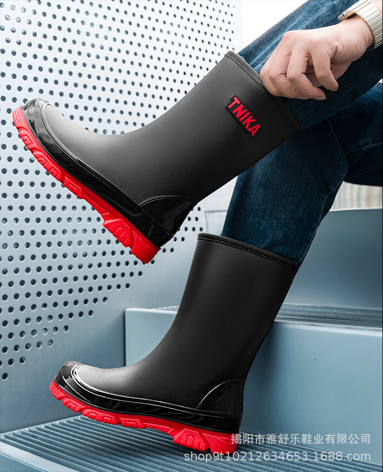 레인 부츠 남성용 미드 배럴 방수 신발 미끄럼 방지 장화 두꺼운 워터 부츠 야외 낚시 탈취 신발 내마모성 고무 신발