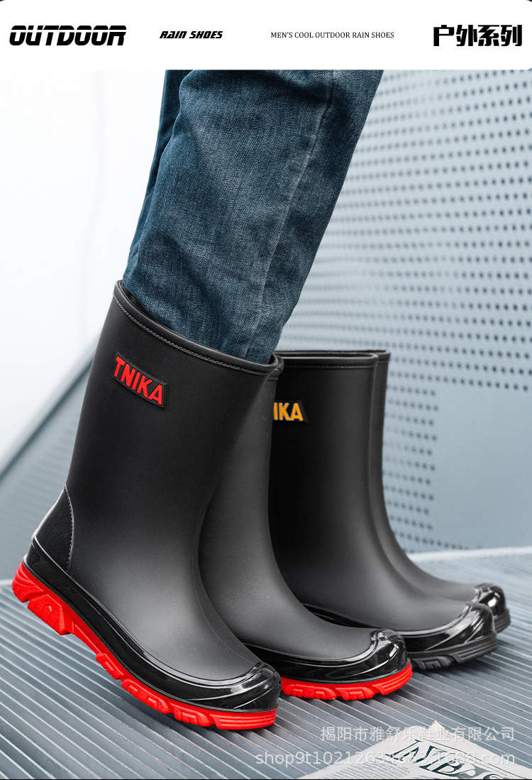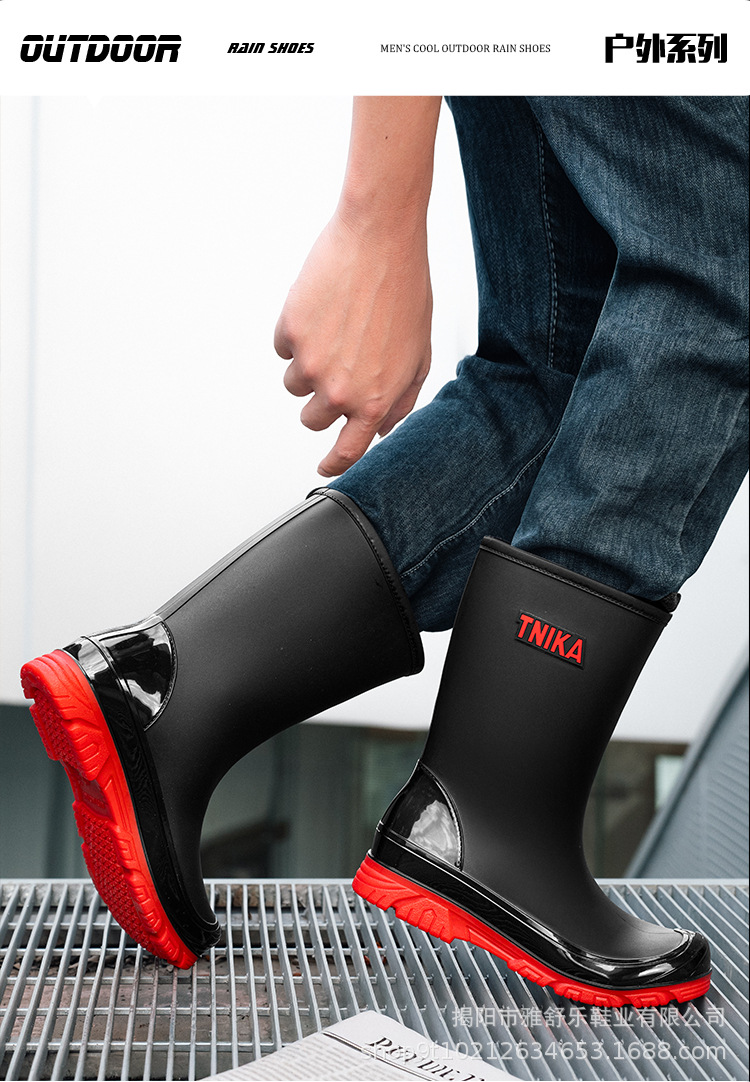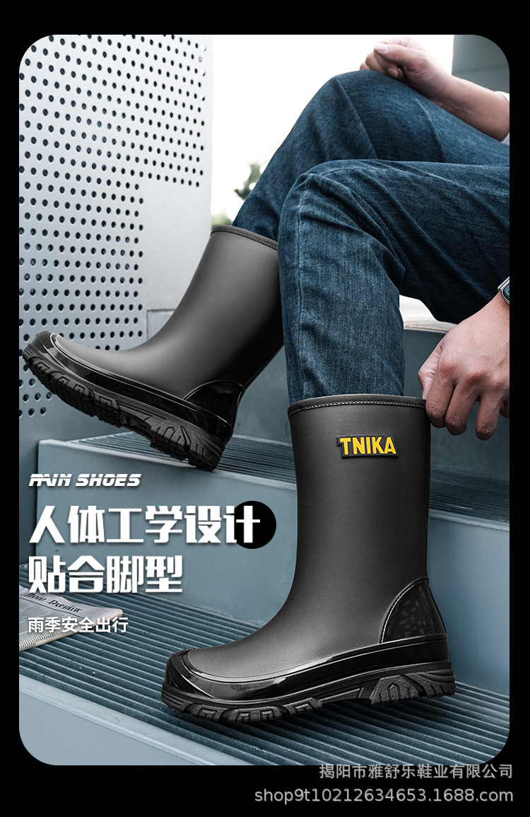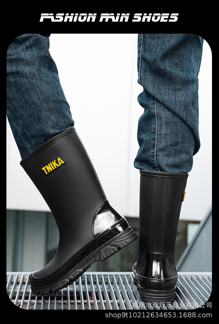 레인 부츠 남성용 미드 배럴 방수 신발 미끄럼 방지 장화 두꺼운 워터 부츠 야외 낚시 탈취 신발 내마모성 고무 신발스토어 가기