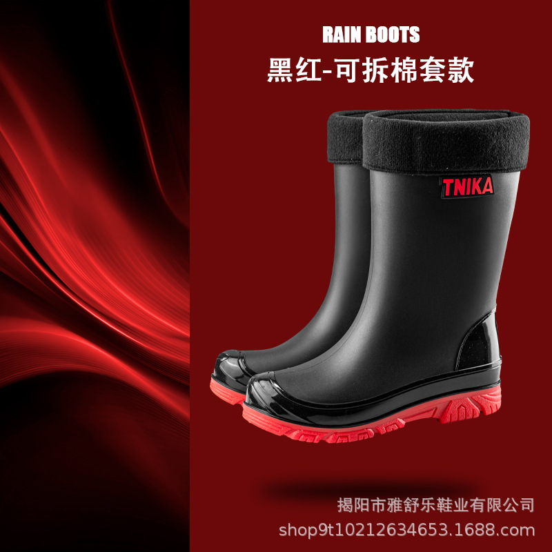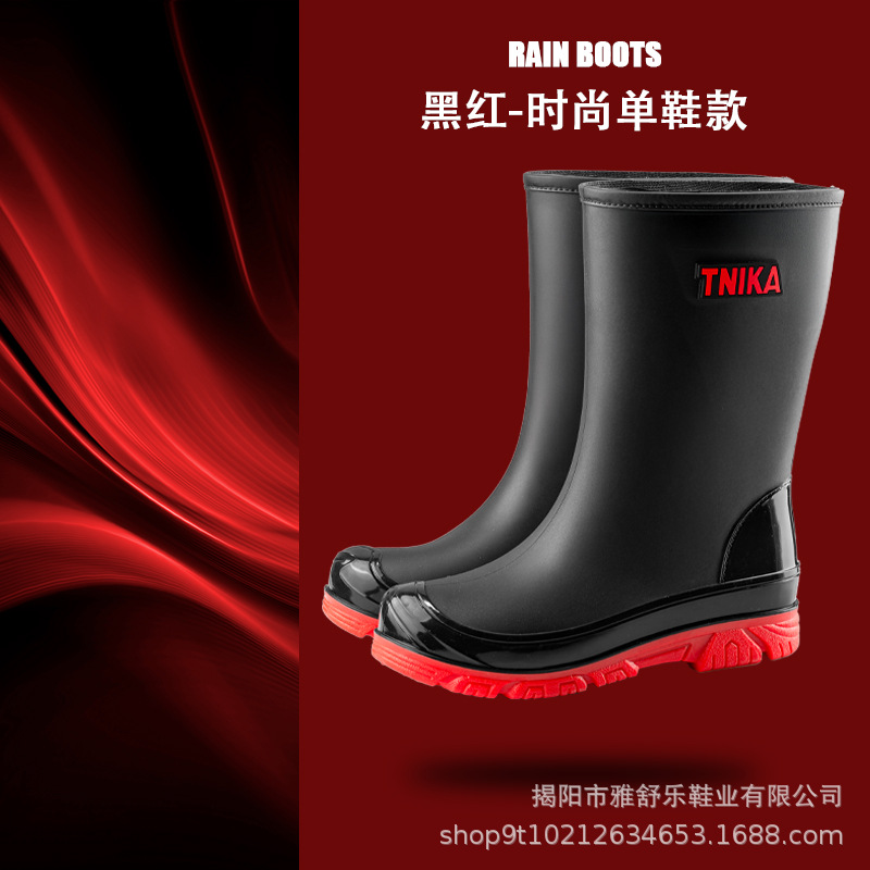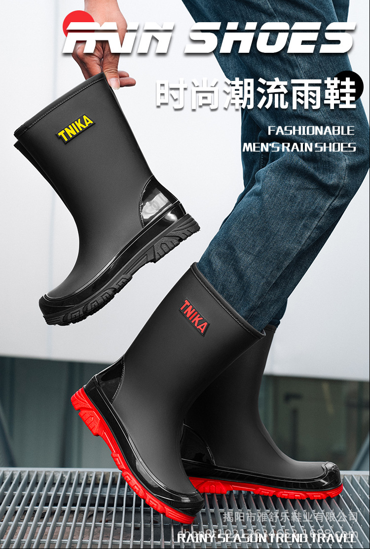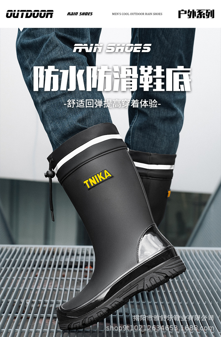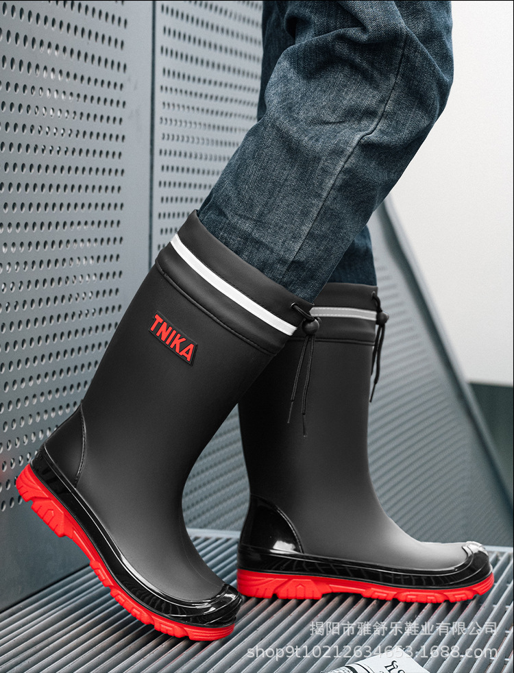 레인 부츠 남성용 미드 배럴 방수 신발 미끄럼 방지 장화 두꺼운 워터 부츠 야외 낚시 탈취 신발 내마모성 고무 신발스토어 가기