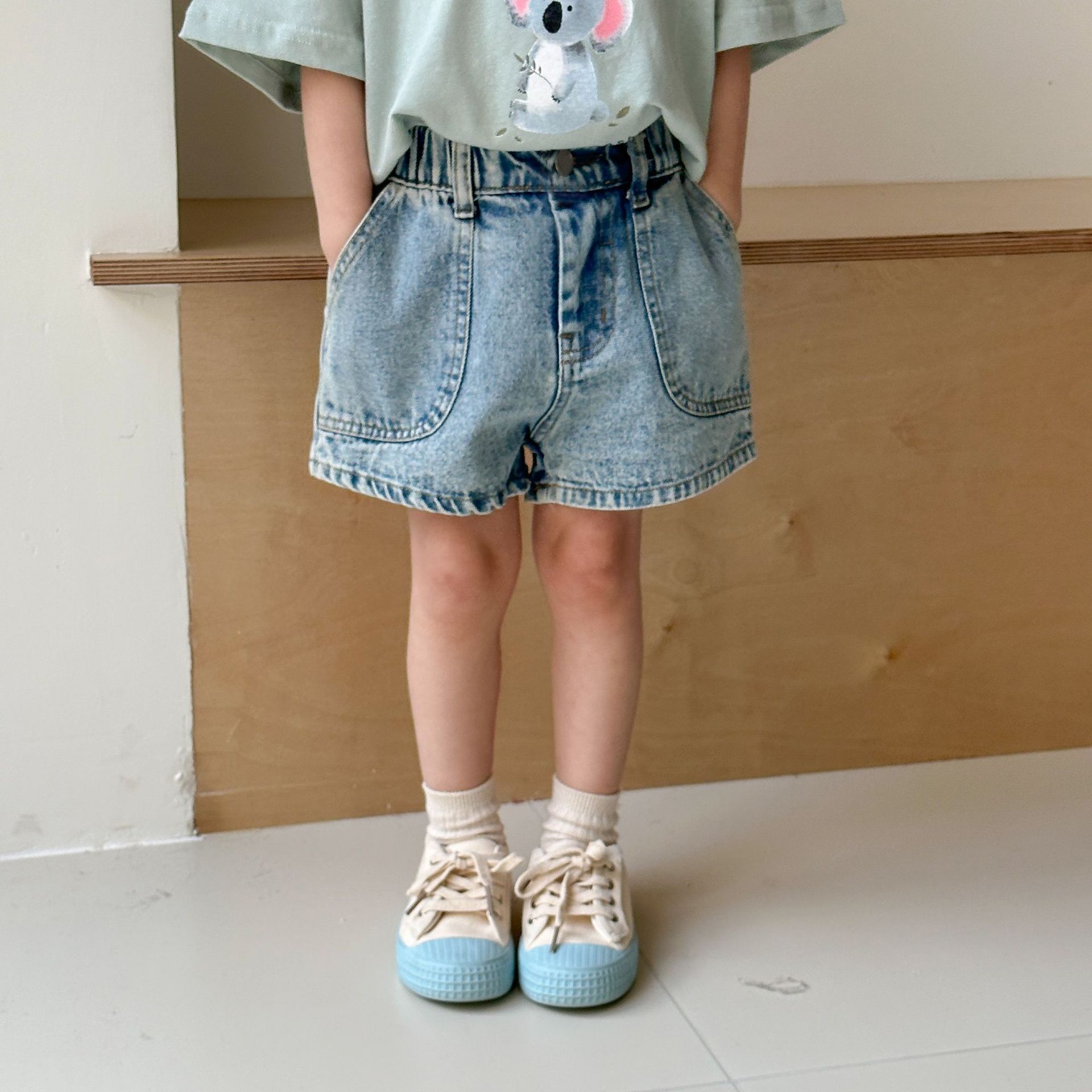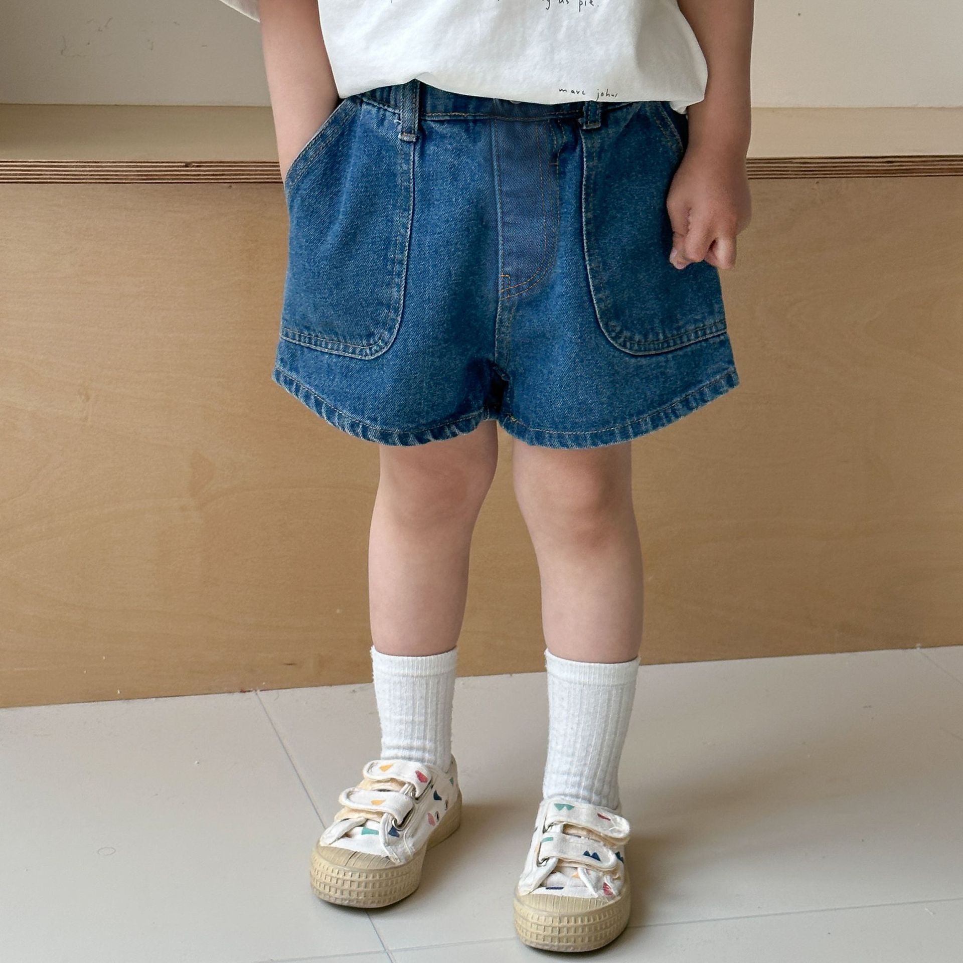어린이 데님 반바지 여자 외신 한국 스타일 여름 2025 새로운 아기 캐주얼 바지 소년 여름 착용스토어 가기