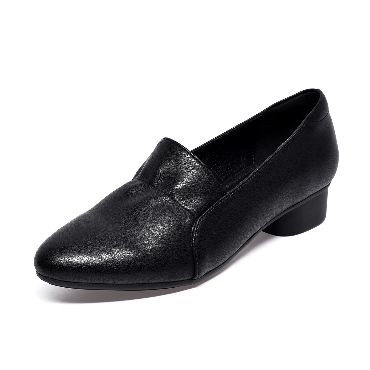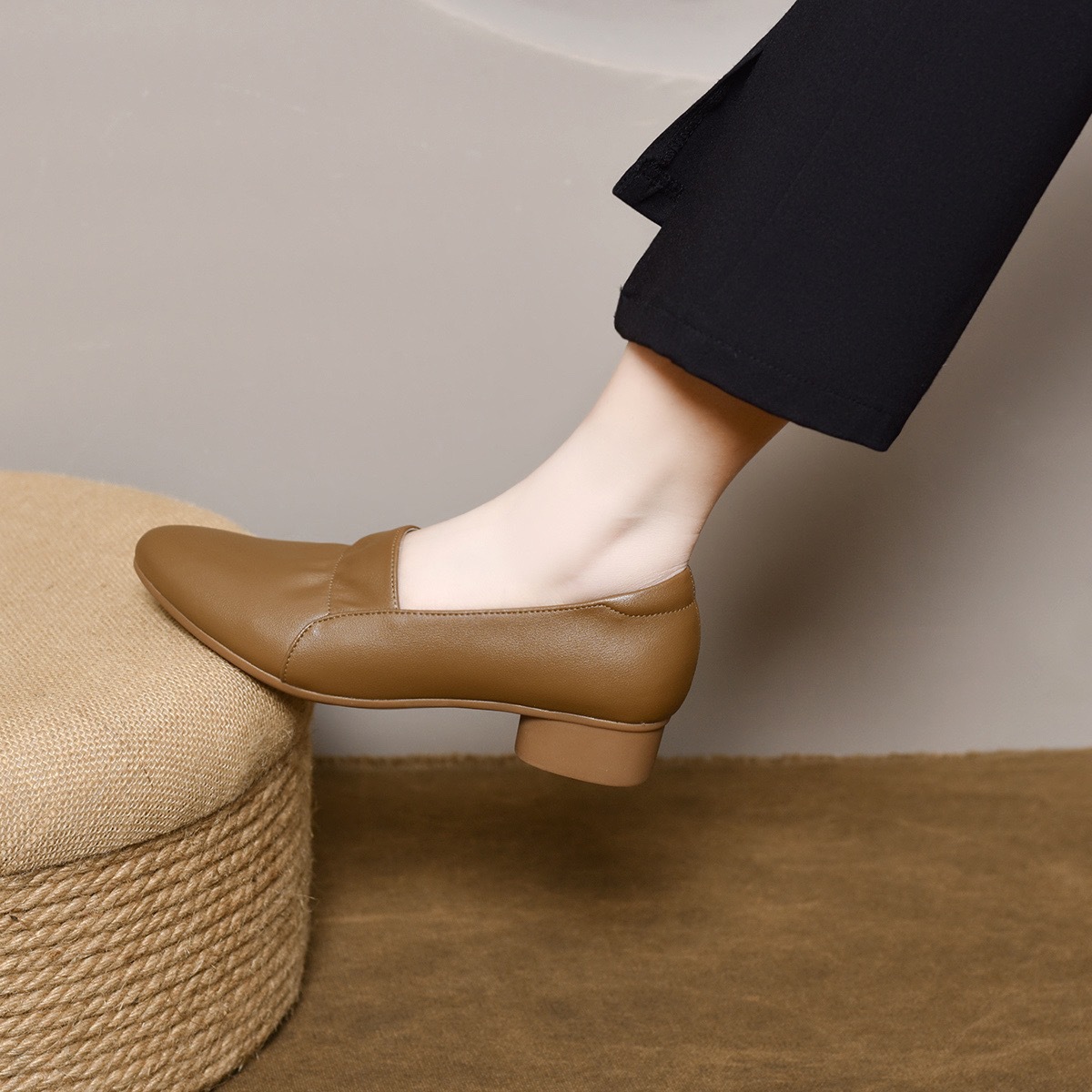 정품 가죽 싱글 레이어 신발 여성의 2025 봄 새로운 얕은 입 포인팅 가죽 신발 소프트 가죽 소프트 가죽 소프트 솔 여성 신발 두꺼운 힐 미드 힐 어머니 신발스토어 가기