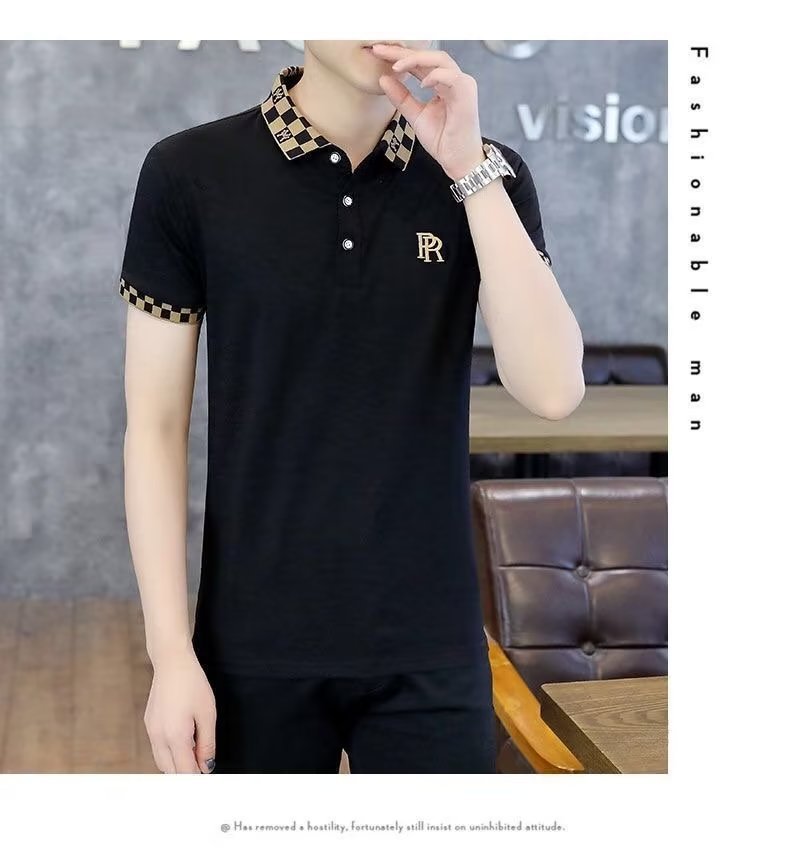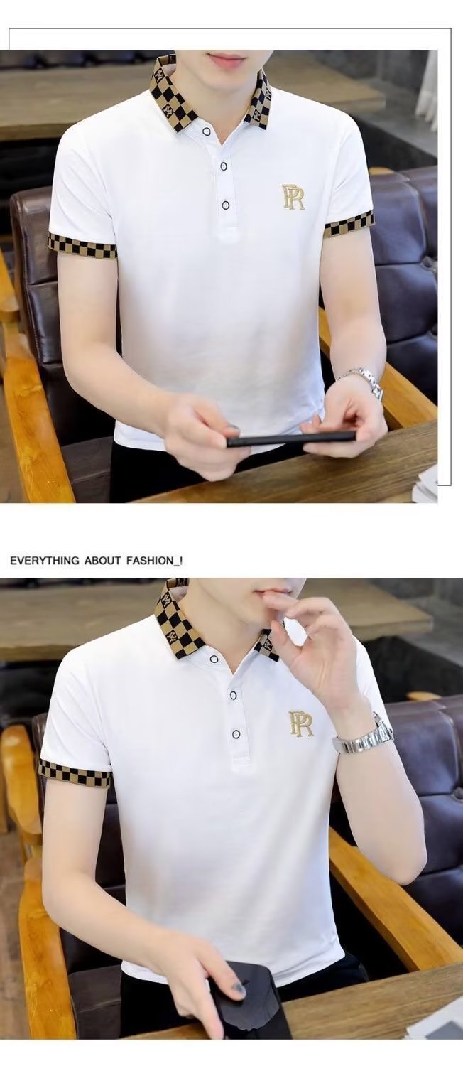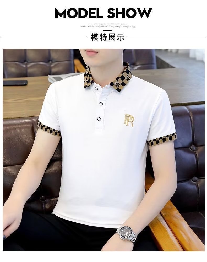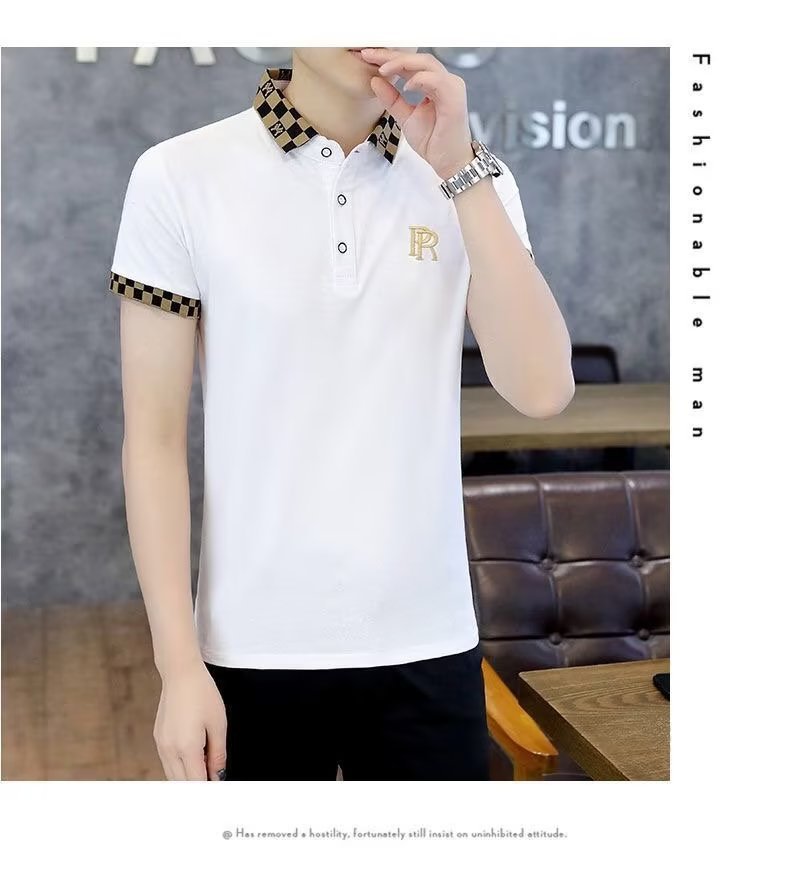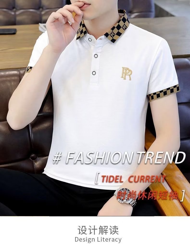 빈티지 폴로 셔츠 남자 2025 년 여름 새로운 솔리드 컬러 터틀넥 트렌디 반소매 셔츠 탑 트렌디 한 반팔 티셔츠