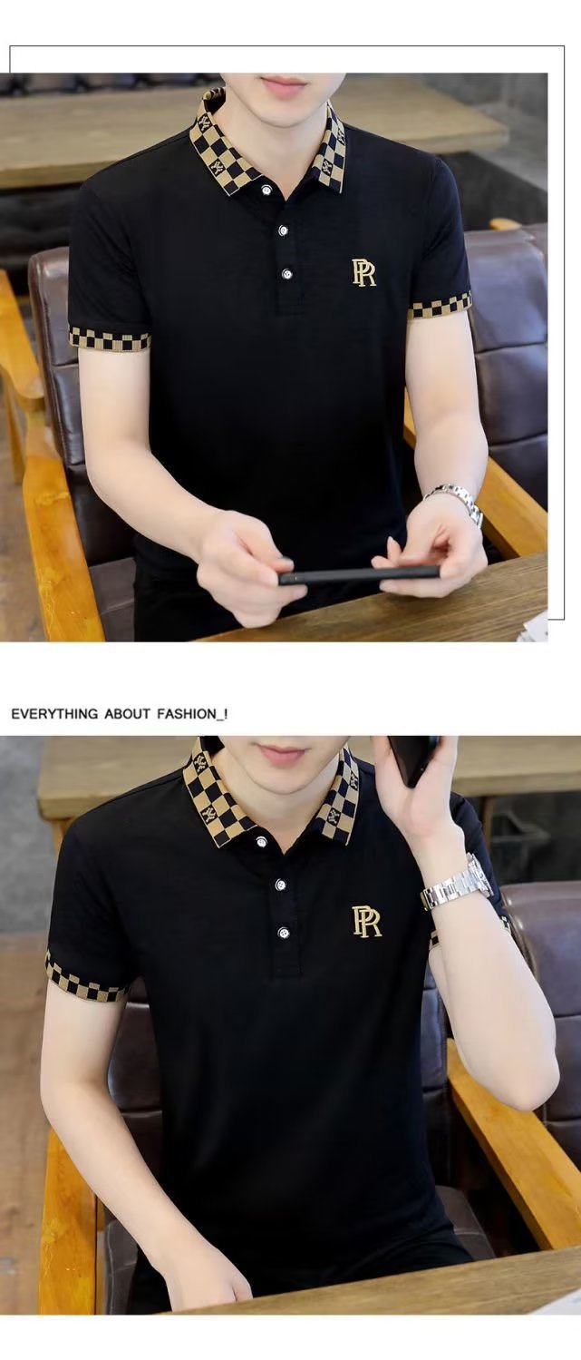 빈티지 폴로 셔츠 남자 2025 년 여름 새로운 솔리드 컬러 터틀넥 트렌디 반소매 셔츠 탑 트렌디 한 반팔 티셔츠스토어 가기