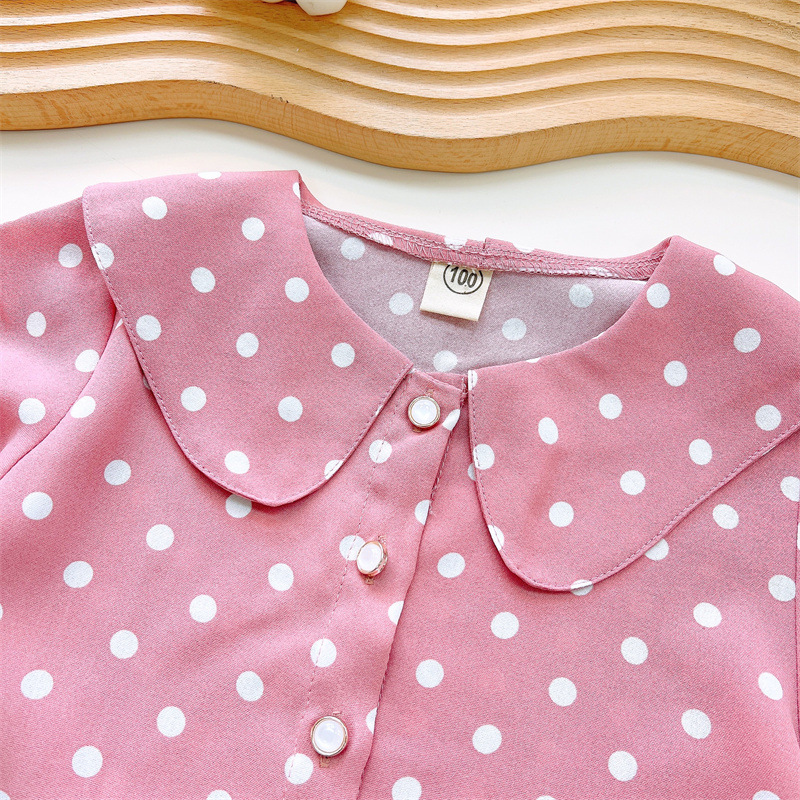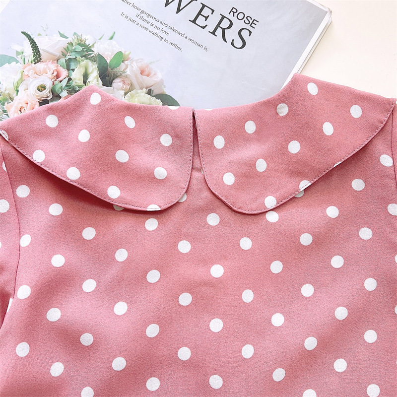 여자 여름 반팔 티셔츠 2025 여름 새 쉬폰 폴도트 인형 칼라 스타일 아기 반팔 셔츠